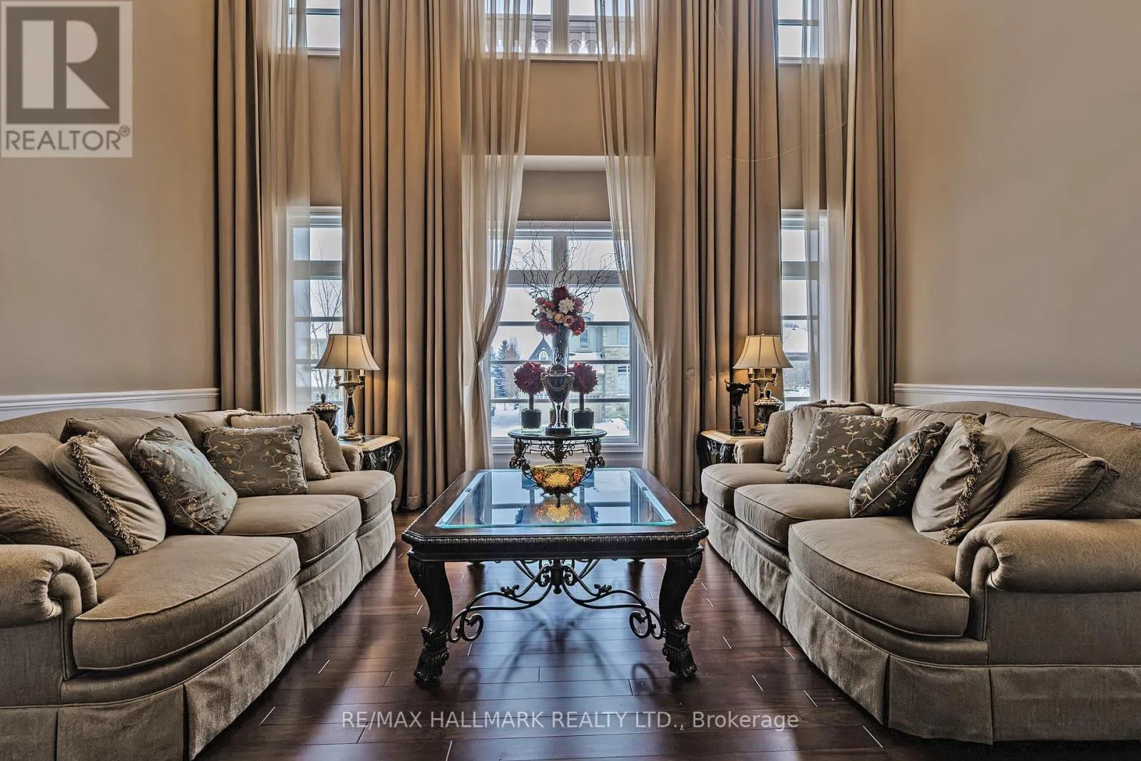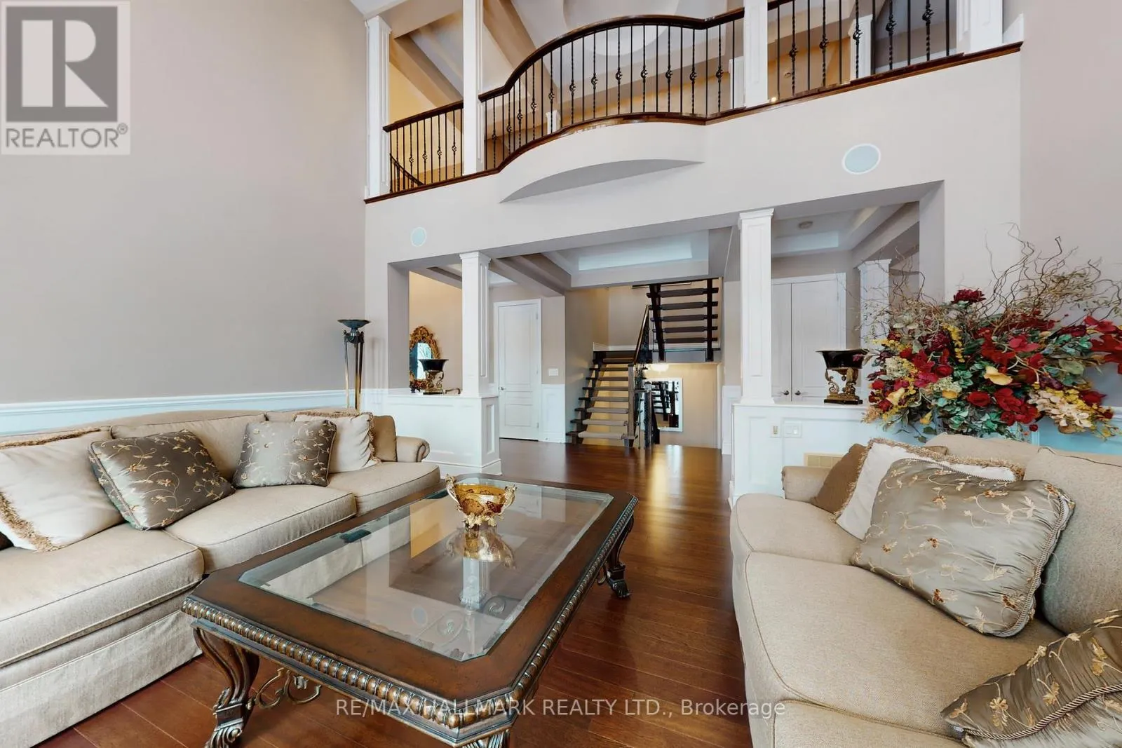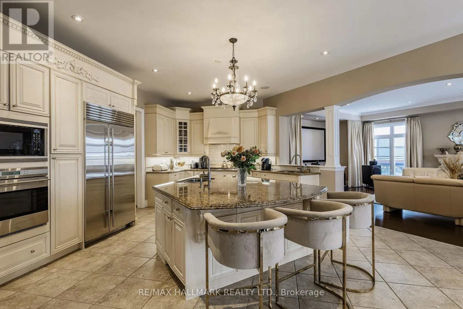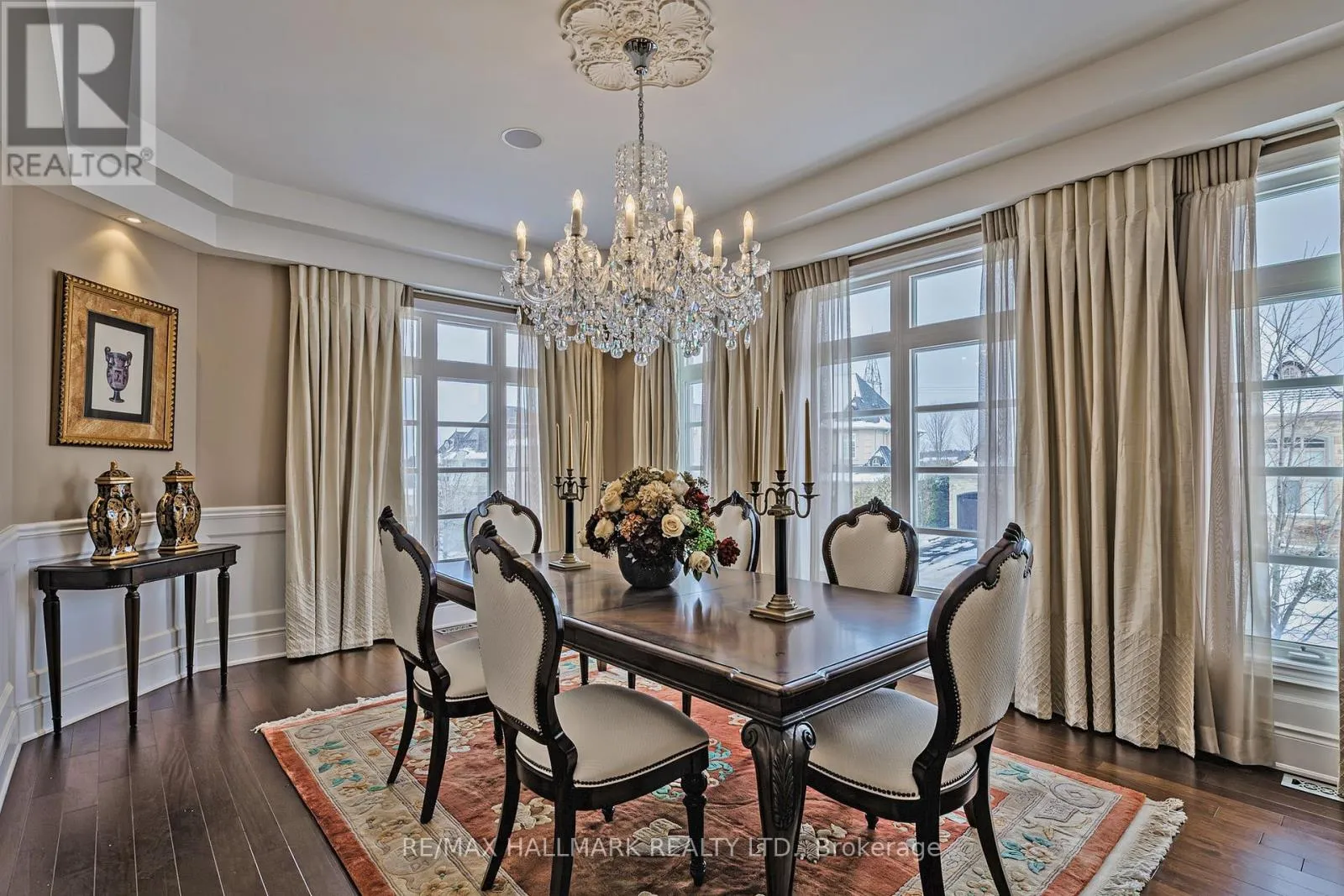 Cross Streets: Bayview Ave/Vandorf Sdrd. ** Directions: East Of Bayview Ave/ South of Vandorf Sdrd. Exquisite detached residence offering approx. 6,000 sqft (5,990 sqft as per Builders floorplan) of refined living space, meticulously maintained by the original owners & set on a premium corner lot in the prestigious Belfountain community. This elegant 4-bdrm home offers ensuites for every bedroom, a walk-out basement, & exceptional curb appeal. The impressive main level showcases 10' ceilings, a grand double-door entrance, rich hardwood flooring, pot lights, blt-in speakes, & detailed wainscoting in the formal living and dining rooms. The thoughtfully designed layout is ideal for both everyday living & entertaining. The gourmet kitchen is appointed with granite countertops, blt-in appliances, oversized centre island, premium custom cabinetry & opens seamlessly to the family rm. A private library with vaulted ceiling & French doors offers a quiet workspace or retreat. Iron picket railings & an oak staircase lead to the upper & lower levels, highlighting the home's craftsmanship throughout. The primary suite is not to be missed w/fireplace, sep sitting area & spa-like ensuite. Additional features incl a rare 4-car tandem garage with interior access, extended driveway parking for up to 8 vehicles, plywood subfloors, 2 cold rooms, rough-in for a 3-piece bath in bsmnt, and a separate bsmt entrance offering excellent future potential. Ideally located minutes from shopping, golf courses, Highway 404, and top-tier schools including St. Andrew's College. An exceptional property combining luxury, space, & lifestyle in a sought-after setting. (id:27476)