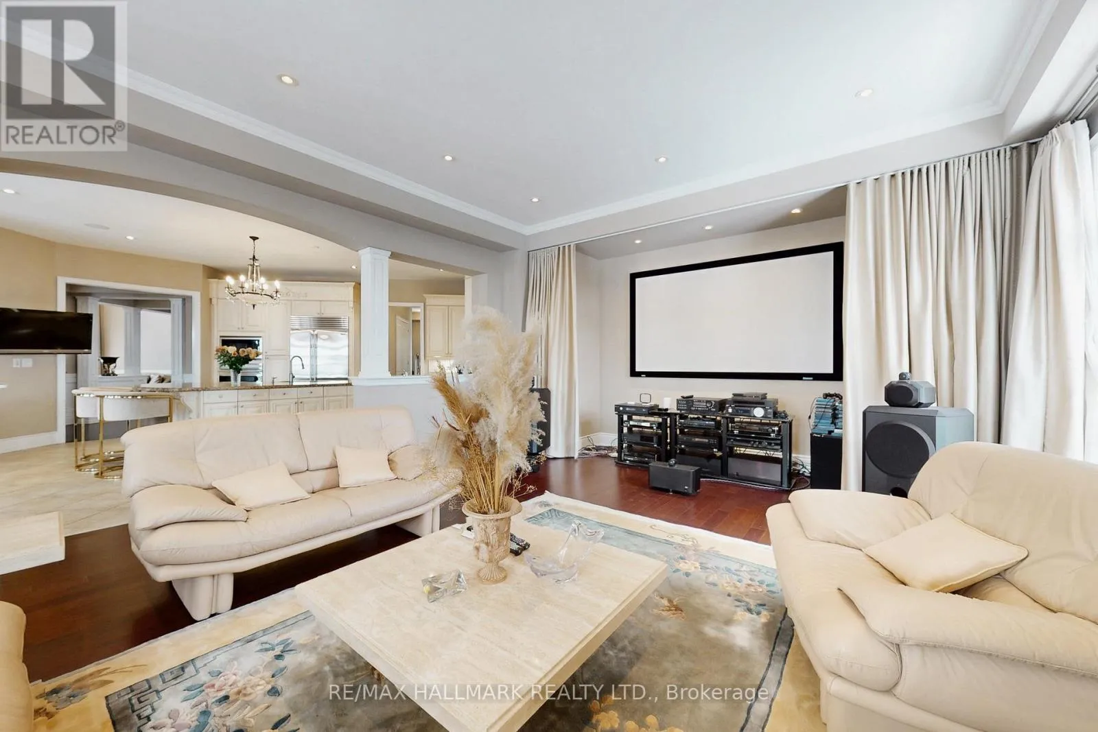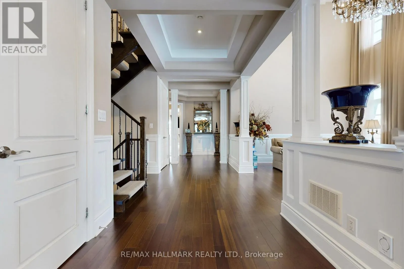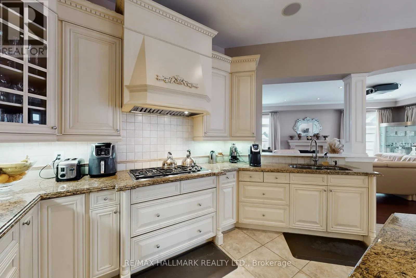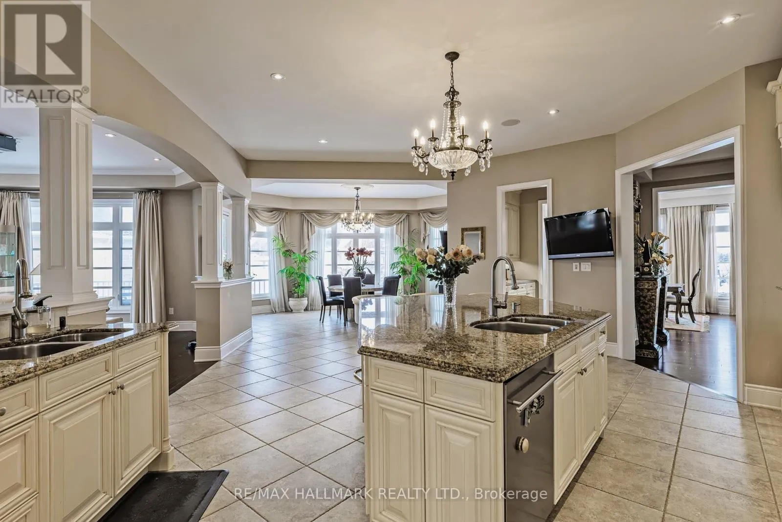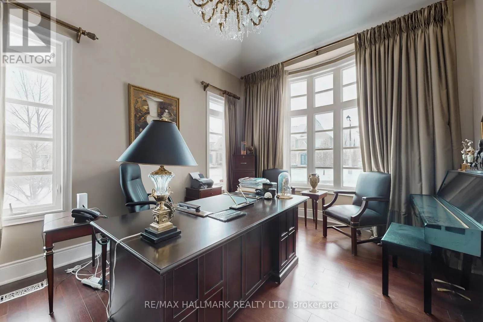Cross Streets: Bayview Ave/Vandorf Sdrd. ** Directions: East Of Bayview Ave/ South of Vandorf Sdrd. Exquisite detached residence offering approx. 6,000 sqft (5,990 sqft as per Builders floorplan) of refined living space, meticulously maintained by the original owners & set on a premium corner lot in the prestigious Belfountain community. This elegant 4-bdrm home offers ensuites for every bedroom, a walk-out basement, & exceptional curb appeal. The impressive main level showcases 10' ceilings, a grand double-door entrance, rich hardwood flooring, pot lights, blt-in speakes, & detailed wainscoting in the formal living and dining rooms. The thoughtfully designed layout is ideal for both everyday living & entertaining. The gourmet kitchen is appointed with granite countertops, blt-in appliances, oversized centre island, premium custom cabinetry & opens seamlessly to the family rm. A private library with vaulted ceiling & French doors offers a quiet workspace or retreat. Iron picket railings & an oak staircase lead to the upper & lower levels, highlighting the home's craftsmanship throughout. The primary suite is not to be missed w/fireplace, sep sitting area & spa-like ensuite. Additional features incl a rare 4-car tandem garage with interior access, extended driveway parking for up to 8 vehicles, plywood subfloors, 2 cold rooms, rough-in for a 3-piece bath in bsmnt, and a separate bsmt entrance offering excellent future potential. Ideally located minutes from shopping, golf courses, Highway 404, and top-tier schools including St. Andrew's College. An exceptional property combining luxury, space, & lifestyle in a sought-after setting. (id:27476)