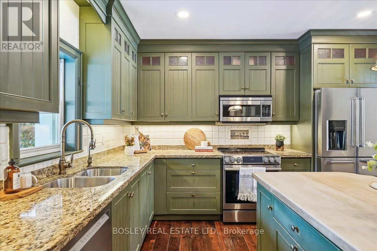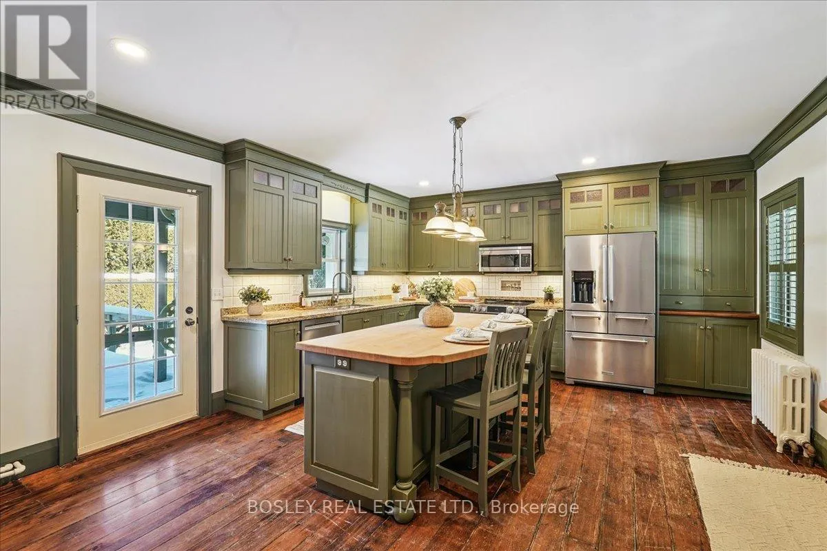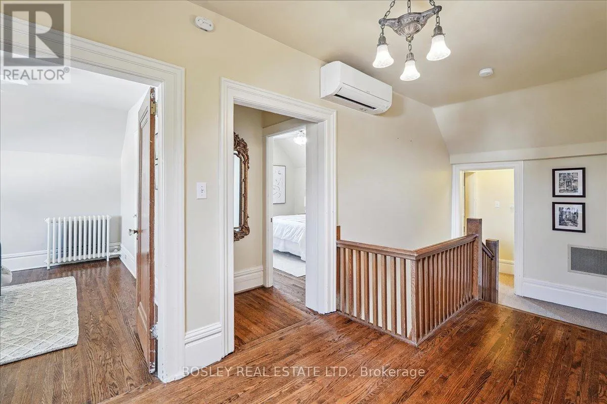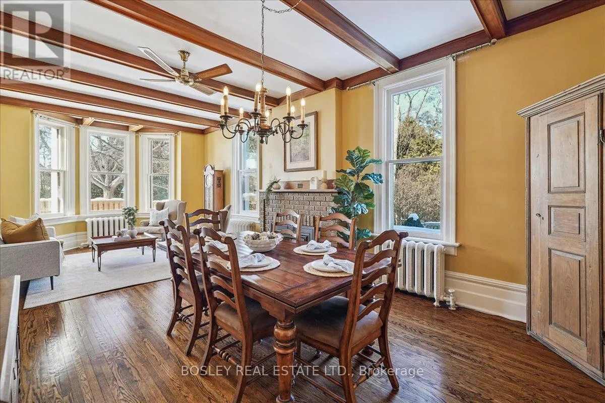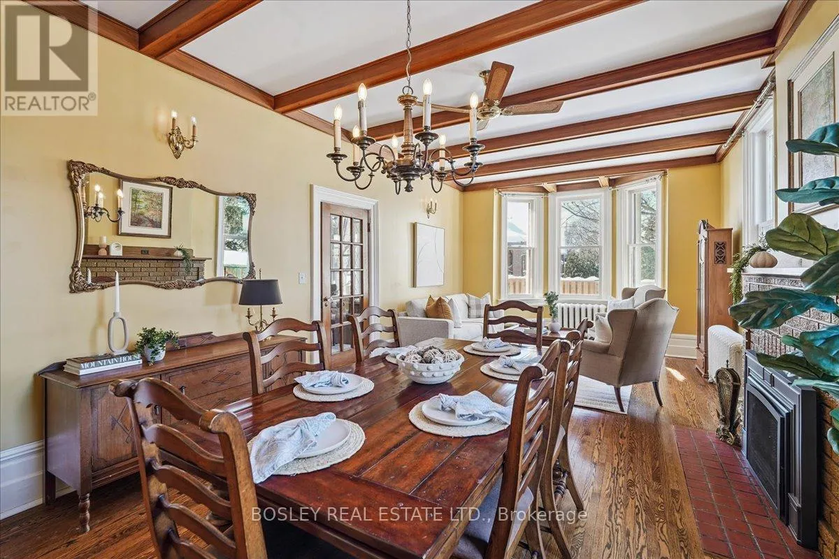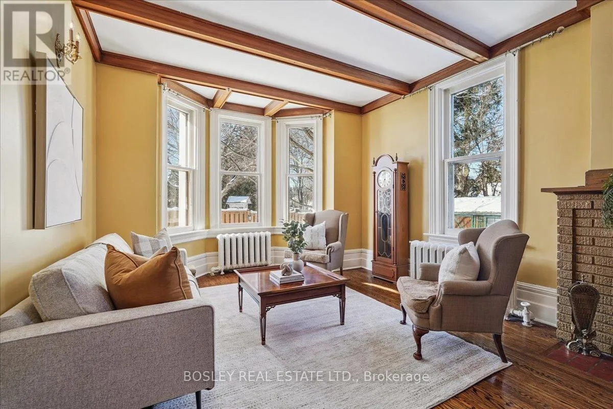 Yonge Street and Wellington Avenue Provenance meets modern versatility! Historically known as the original "Cousins Farm House," this residence is situated on a rare, double wide 100 ft lot, offering presence and privacy. Spanning approximately 3,000 square feet, this 4 bdrm 3 bath home preserves its architectural integrity with original pine flooring in the farm style kitchen, high ceilings, intricate wood mouldings, expansive living and dining areas and a family room with coffered ceilings. The first of 3 bathrooms is centrally located, serving the main floor rooms with ease. The main floor boasts grand principal rooms, the second level features 4 bedrooms. The principal suite includes a renovated ensuite, while two generous secondary bedrooms are served by a central hall. A standout feature is the use of the second floor over the kitchen and garage; separated by a large hallway ideal for a home office or library this wing includes a 4th bedroom, full 3 piece bath, and laundry. This configuration offers exceptional privacy, making it perfect for a secluded primary retreat, nanny suite, or multi generational living. The exterior has meticulously manicured landscaping maintained by a local favourite garden centre. The backyard features an in-ground pool framed by mature trees and hedging, a side yard for pets or play, and a sauna accessed via the back path. Mature trees canopy the yard for a perfect balance of sun and shade, so those days in the pool with family and friends are idyllic. Practical needs are met with a double car garage, additional carport, and ample parking. The location offers a perfect balance of quiet residential life and urban convenience. Easy access to the GO Train makes for a seamless commute. Only steps away are premier parks, local boutique shops and terrific dining. Extensive green space & community amendments are just a short stroll from your front door. An opportunity to own a piece of local history in a prime, walkable location. (id:27476)