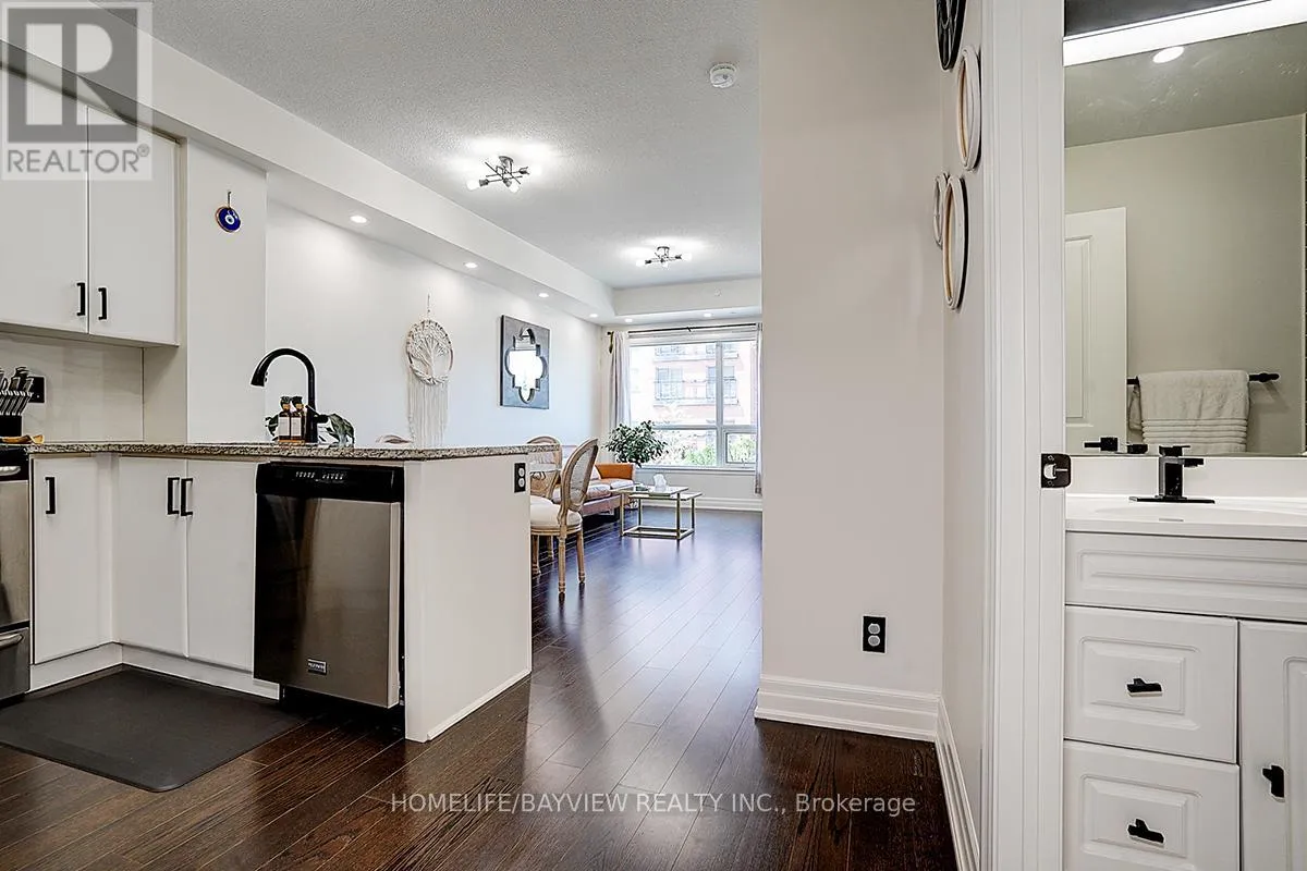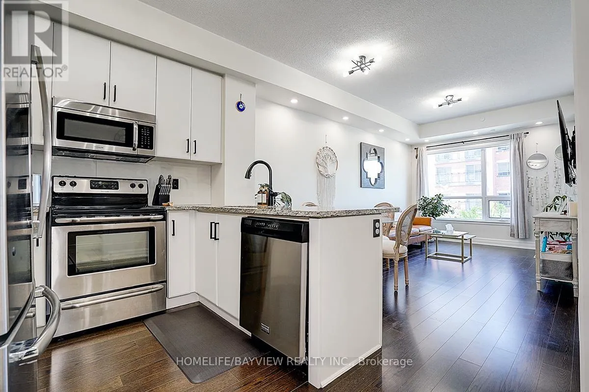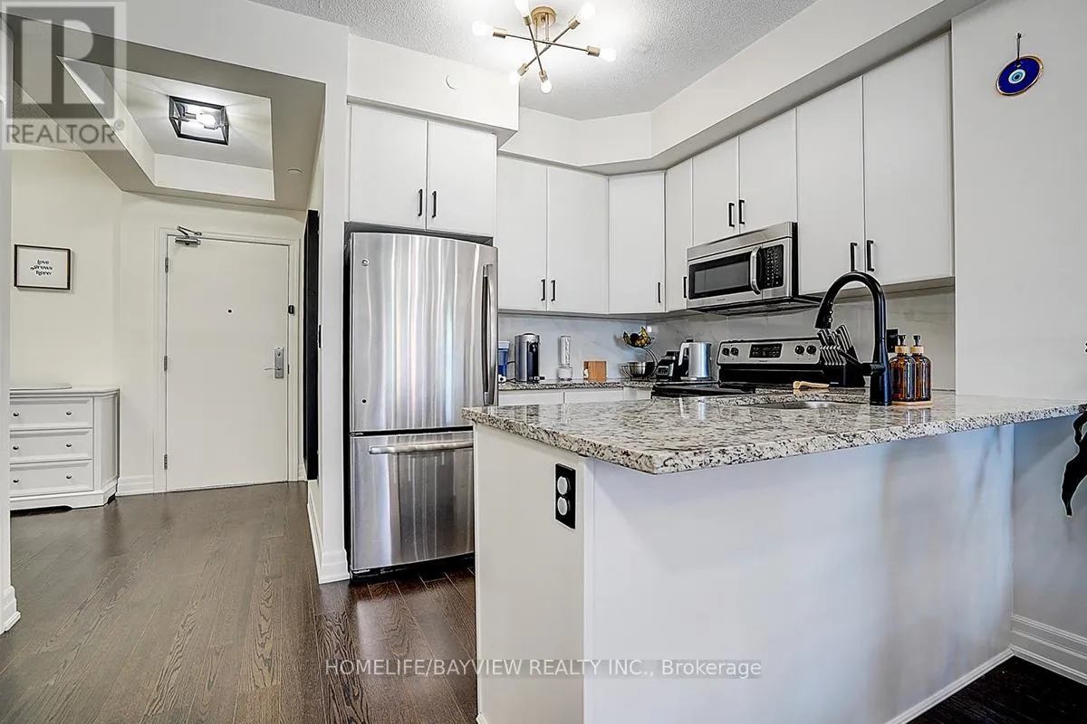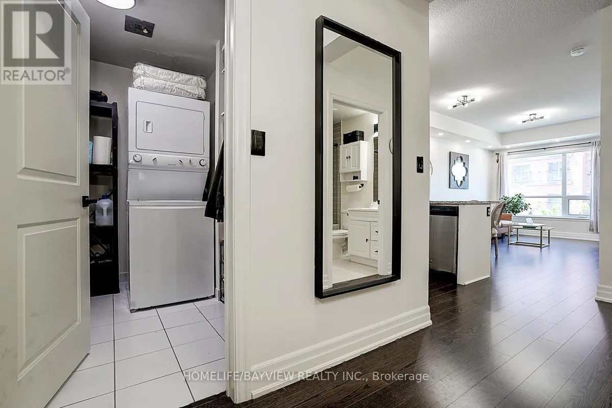 Cross Streets: Bayview & Wellington. ** Directions: John West Way (North of Wellington St. & West of Bayview). "BEST VALUE FOR THE PRICE". Welcome To The Ridgewood 2 Residence, One Of The Newest Luxury Condo Buildings In The Hearth Of Aurora. This Newly Upgraded And Freshly Painted 1+1 Bedroom Unit Has A Beautiful Layout With Large Den & Separate Laundry Room. The Den Has Versatile Functional Usage As Baby Room, Dinning Room As Well As Office Area. The Laundry Room Has Upper Cabinets & Built In Shelves With Brand New Washer & Dryer. Kitchen Comes With Stainless Steel Appliances, Fridge, Stove, Brand New B/I Dishwasher & Over The Range Microwave Oven, Granite Counter Tops & Breakfast Bar. Pot Lights Along With Beautiful Light Fixtures Give A Warmth Vibes & Ambience To The Place. Primary Bedroom Has A Double Closet With Organizers & Has Direct Access To The Large West View Balcony. The Bright Living/Dinning Room Are Combined, Overlooking The Kitchen With Floor To Ceiling Windows & Separate French Door Access To The Balcony. The Bathroom Is Equipped With Frameless Sliding Glass Shower/Tub, Built In Vanity & All New Fixtures. The Amazing Amenities Of The Building Include : Concierge/Security, Party Room, Media/Meeting Room, Game Room, Guest Suite, Fitness/Exercise/Gym Room With Hot Tub, Dog Spa, Outdoor Salt Water Pool, Cabana, BBQ Area, Gardening Area, Visitor Parking, Beautiful Landscaping, Etc. The Location Is Steps to Parks, Conservation, Trails, GO Station, Shopping Centres, Restaurants, Movie Theatre, Community Centre, Library, Schools and close to Hwy 404 & All Major Routs. (id:27476)