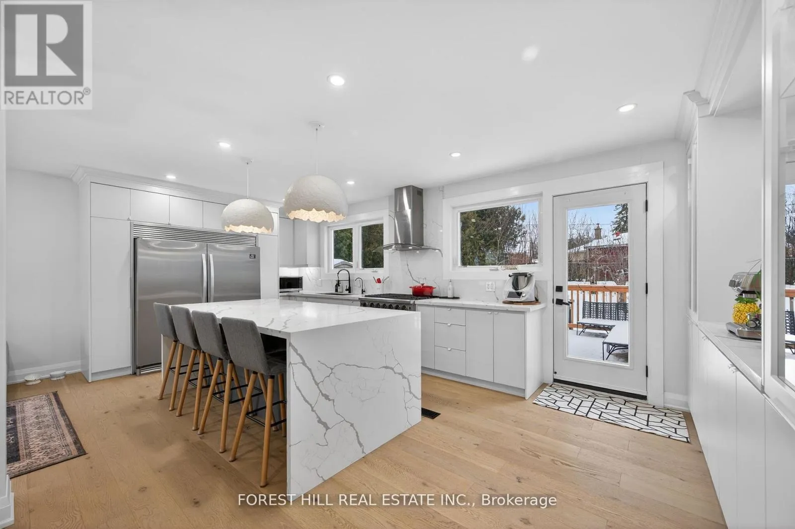 Bathurst St & Henderson Dr Beautifully renovated bungalow in prestigious Aurora. Extensively updated in 2022 with new windows, doors, roof shingles, HVAC, hardwood flooring, and modern glass railings. New deck added in 2023 and new bathtub installed in 2025.Spectacular open-concept gourmet kitchen featuring a quartz waterfall breakfast bar, oversized refrigerator, and gas stove/oven-perfect for entertaining. Finished basement offers a huge recreation room and an oversized bedroom, providing excellent additional living space. Tankless water heater and water softener included, EV charger for the car in the garage. No sidewalk allows parking for up to 3 cars on the driveway plus1-car garage. Large backyard and a bright home filled with natural light throughout. Just a 3-minute walk to Regency Acres Public School and St. Joseph Catholic Elementary School, close to Aurora High School, kids' parks, and scenic forest trails-perfect for families. (id:27476)