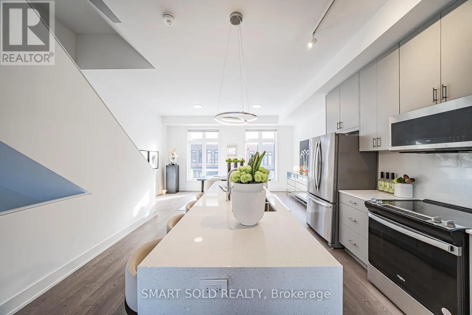 Leslie St / Wellington St E Bright & spacious upgraded t/h offering approx. 2,251+587 sq.ft. of living space, featuring 4 bdrms & 5 w/r. Well-designed layout w/ excellent natural light throughout & generous proportions on all levels. Impressive ceiling heights incl. 10 ft ceilings on 2nd flr, 9 ft on 3rd flr, & approx. 8.6 ft ceilings in fin. W/O bsmt, creating an open & airy feel. Features eng. hdwd flr t/o, private rooftop terrace (627 sq.ft.), & main flr balcony. Rooftop terrace w/ upgraded outdoor faucet for easy maintenance. Approx. $25,000 spent on builder upgrades, plus numerous post-builder improvements. Upgraded kit. w/ waterfall island c/top, ext. backsplash, under-cab. lighting, S/S appl. pkg., built-in garbage & recycle cabinet system, & water filtration system. All appl. incl. All bdrms w/ custom closet organizer systems, incl. upgraded drawers in ground flr closet & prim. W/I closet. Baths & pdr rm upgraded w/ accessories, LED mirrors (exc. bsmt bath), & enhanced shower systems feat. handheld + waterfall shower heads on upper flrs. Add'l highlights incl. fin. W/O bsmt w/ full bath, EV charger (builder-installed), water softener, water purification system, humidifier, zebra blinds t/o, new washer & dryer, new microwave w/ exhaust fan, & 7-yr Tarion new home warranty. A luxurious, comfortable & move-in ready home, thoughtfully designed for family living. (id:27476)
