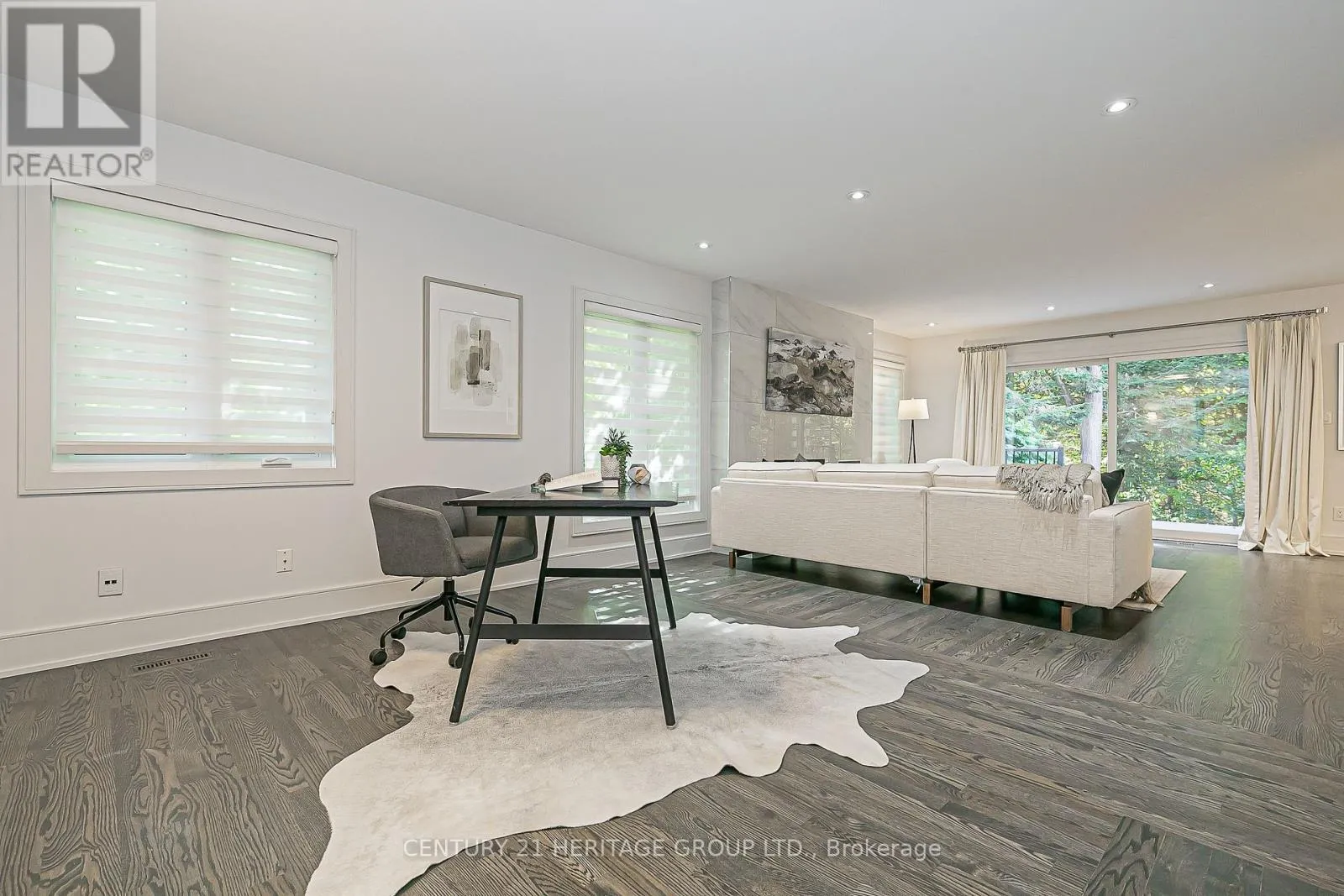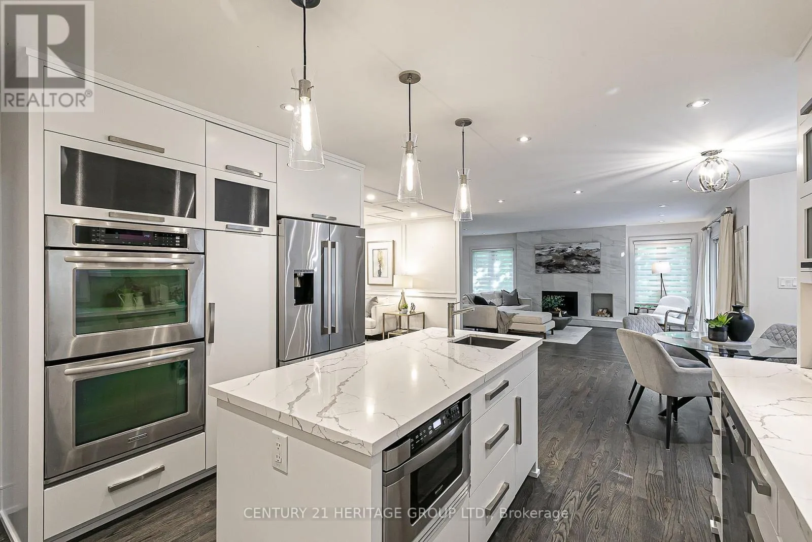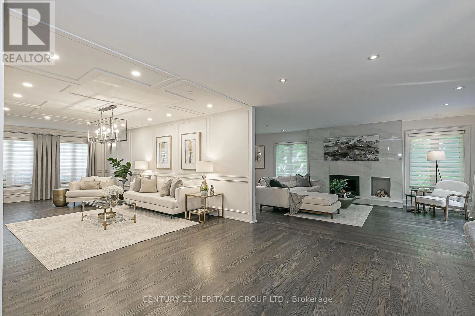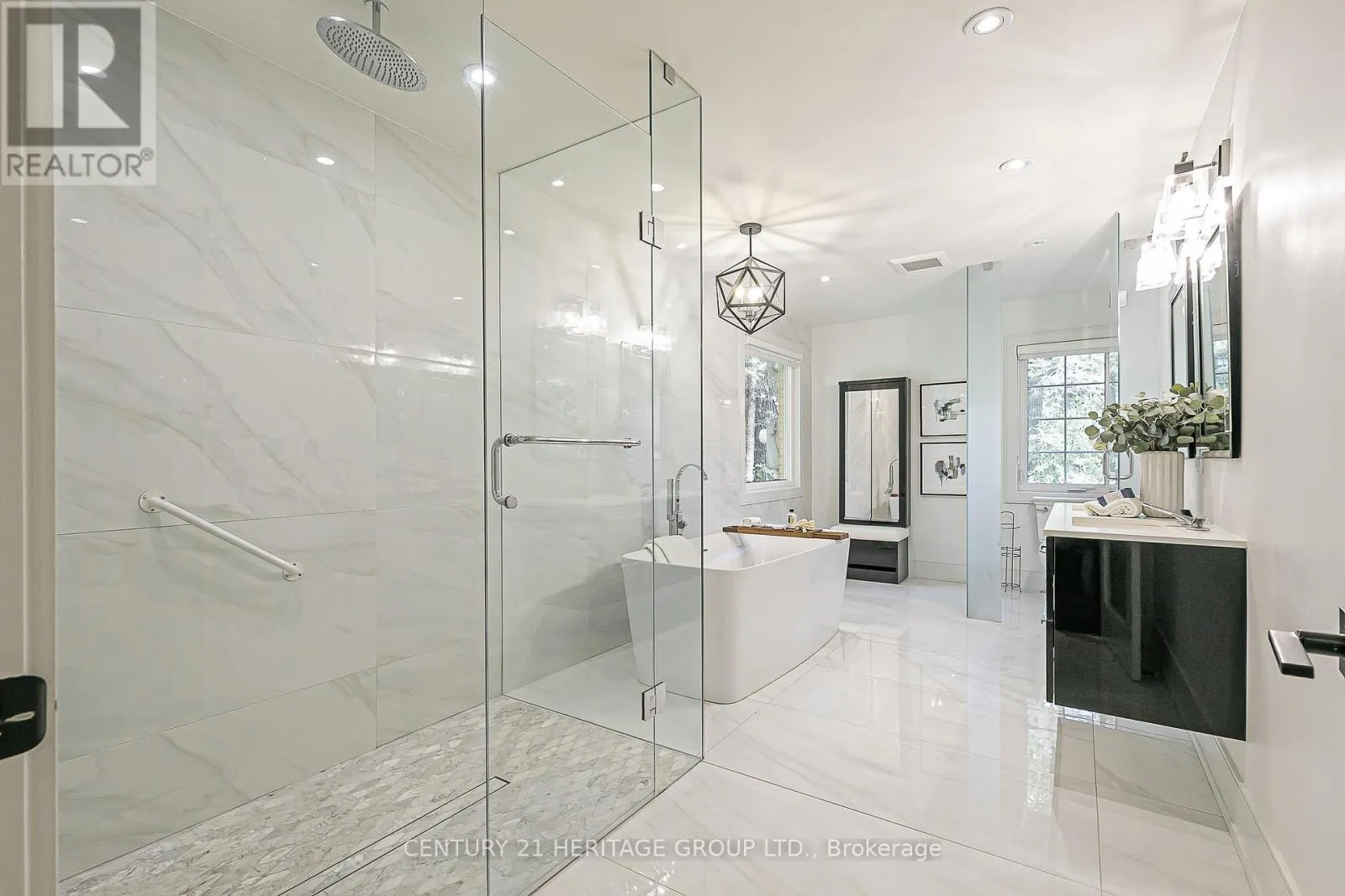 Bathurst St. / Wellington St. Welcome to 46 Pineneedle Dr. An absolute dream home. This sprawling bungalow offers over 5,400 interior square feet and sits on a 0.676-acre lot backing onto a ravine in the prestigious Hills of St. Andrew, offering unmatched tranquility and privacy with no neighbours behind. Completely renovated from top to bottom, this residence blends luxury finishes with a highly functional layout. The main floor features 3 bedrooms and 4 bathrooms, including a formal dining room, office, and a living room with a striking floor-to-ceiling fireplace. The primary suite boasts double-door entry, a tray ceiling and heated floors in the spa style 7-piece ensuite bath for added comfort and luxury. Multiple walkouts to a huge raised composite deck from the living room, kitchen, and primary bedroom allow you to enjoy views of your own private forest right in town. The walk-out basement adds an additional 2 bedrooms and 2 full bathrooms, plus a full open-concept kitchen, generous living space, and a second laundry hook-up, creating an ideal layout for an in-law suite, multi-generational living or nanny suite. An oversized garage provides ample space for vehicles and storage. You'll feel like you're in the country while being just steps from local shopping, restaurants, top-rated public and private schools (St. Anne's, St. Andrew's and The Country Day school all under 10 minutes), walking trails and so much more. The virtual tour and walk-through video are a must-see. (id:27476)
