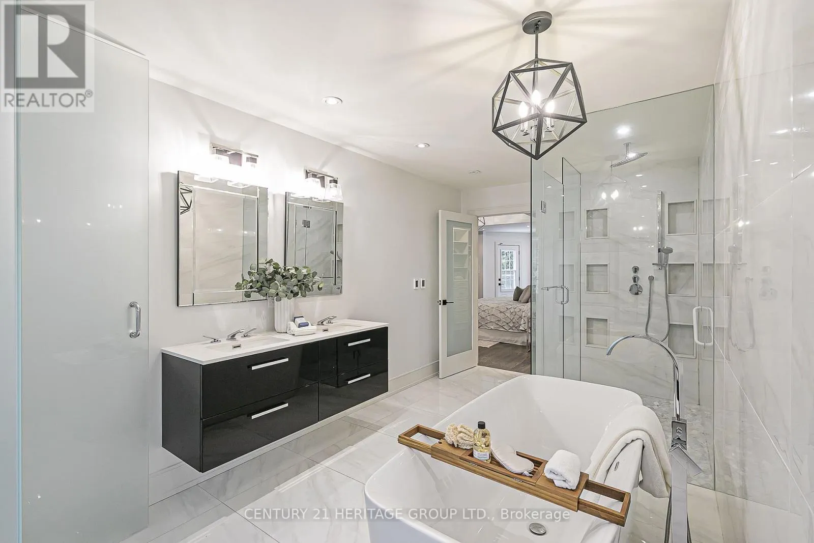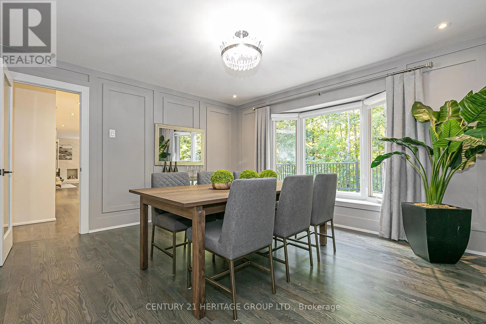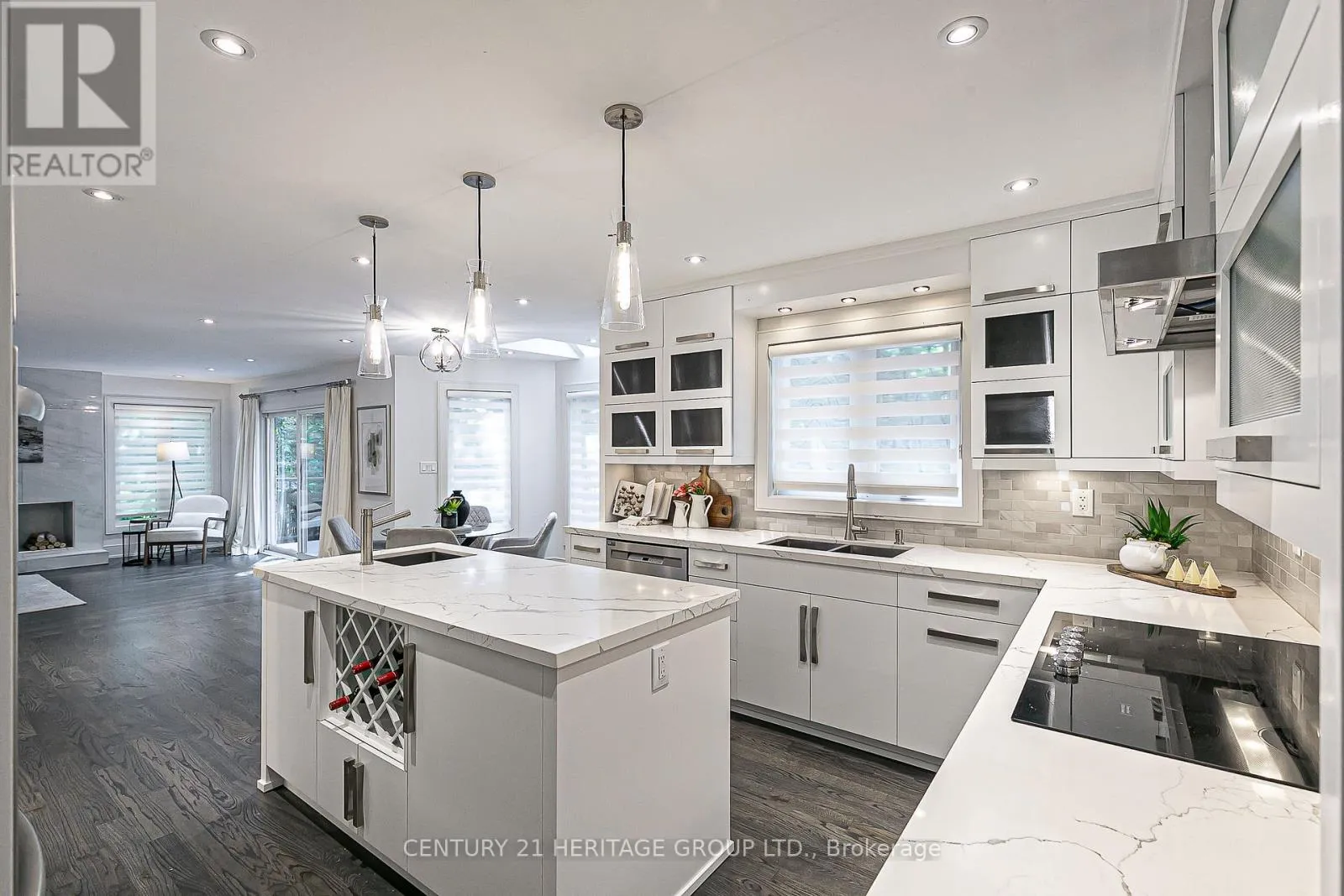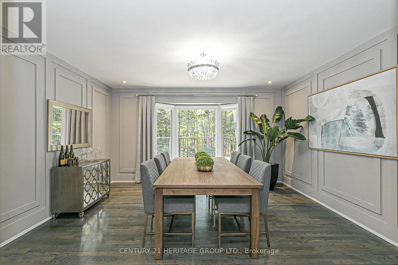 Bathurst St. / Wellington St. Welcome to 46 Pineneedle Dr. An absolute dream home. This sprawling bungalow offers over 5,400 interior square feet and sits on a 0.676-acre lot backing onto a ravine in the prestigious Hills of St. Andrew, offering unmatched tranquility and privacy with no neighbours behind. Completely renovated from top to bottom, this residence blends luxury finishes with a highly functional layout. The main floor features 3 bedrooms and 4 bathrooms, including a formal dining room, office, and a living room with a striking floor-to-ceiling fireplace. The primary suite boasts double-door entry, a tray ceiling and heated floors in the spa style 7-piece ensuite bath for added comfort and luxury. Multiple walkouts to a huge raised composite deck from the living room, kitchen, and primary bedroom allow you to enjoy views of your own private forest right in town. The walk-out basement adds an additional 2 bedrooms and 2 full bathrooms, plus a full open-concept kitchen, generous living space, and a second laundry hook-up, creating an ideal layout for an in-law suite, multi-generational living or nanny suite. An oversized garage provides ample space for vehicles and storage. You'll feel like you're in the country while being just steps from local shopping, restaurants, top-rated public and private schools (St. Anne's, St. Andrew's and The Country Day school all under 10 minutes), walking trails and so much more. The virtual tour and walk-through video are a must-see. (id:27476)