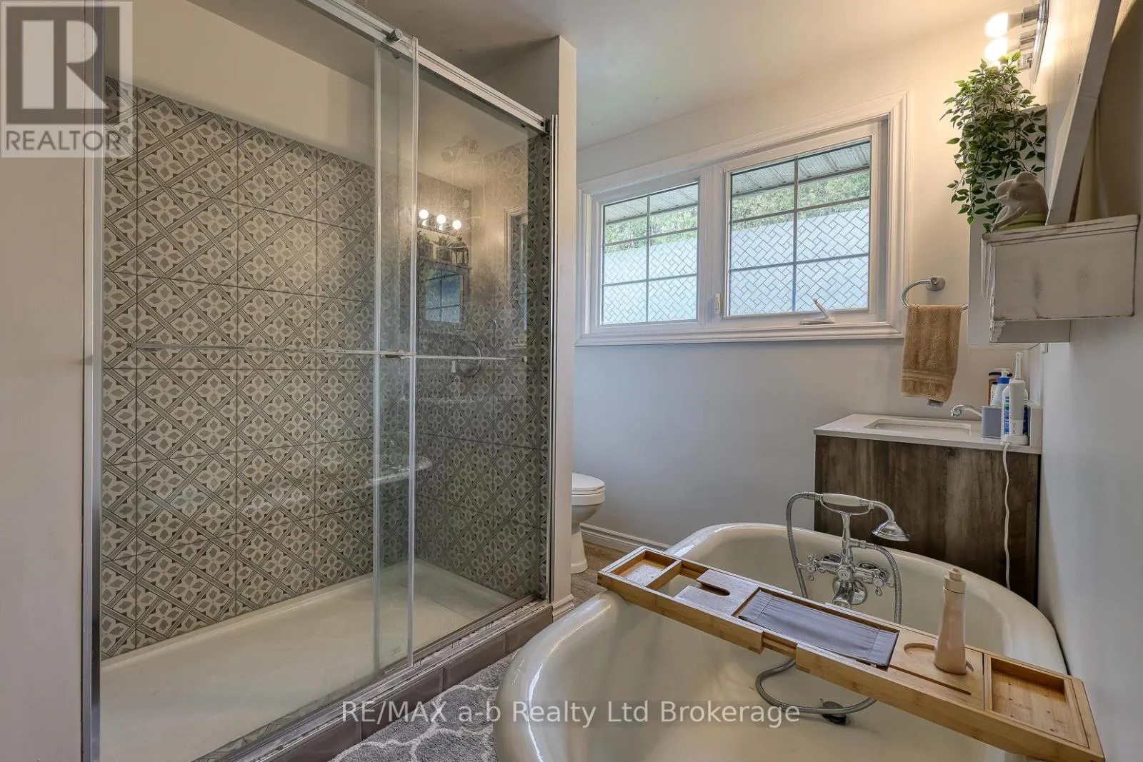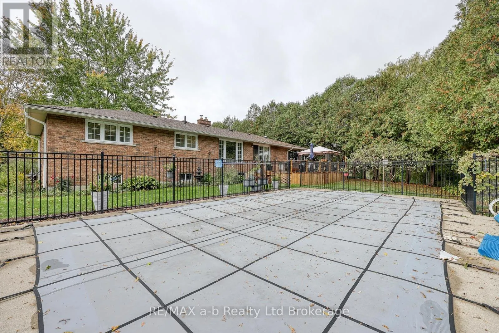 Cross Streets: Bradley and John. ** Directions: across from Bradley church, look for small red numbered sign, go down long driveway property on the right. Welcome to 370 John St Alymer. Located within the the town but the feel of a rural location. This 2 +1 bungalow offers the privacy and all the amenities. Near shopping and restaurants this is an ideal location. There is ample space on almost an acre of land (.811 of an acre!) The property includes a large in-ground pool (16' x 29') with saftey cover and fully fenced. There is an extensive deck that spans 32 ' x 16 '(new 2025) perfect for relaxing or entertaining. The double wide asphalt driveway was done 4 yrs ago, roof and eves were done 3 yrs ago, so property has been well maintained. Inside the spacious bungalow you will find and updated kitchen with quartz countertops and newer appliances. There is main floor laundry so no need to lug baskets down stairs. Beautiful hardwood in the living room with a cozy gas fireplace, waterproof laminate throughout kitchen and dining room. 2 oversized bedrooms on the main floor, primary has a luxurious ensuite with stand alone shower and separate soaker tub. 3 pc bath for guest or kids also located on the main floor. In the basement there is an "L" shaped rec room perfect for relaxing or games.With a cozy Wood Stove in basement which was WETT certified 5 yrs ago. 3rd bedroom is also a generous size and there's a separate exercise room. ** This is a linked property.** (id:27476)