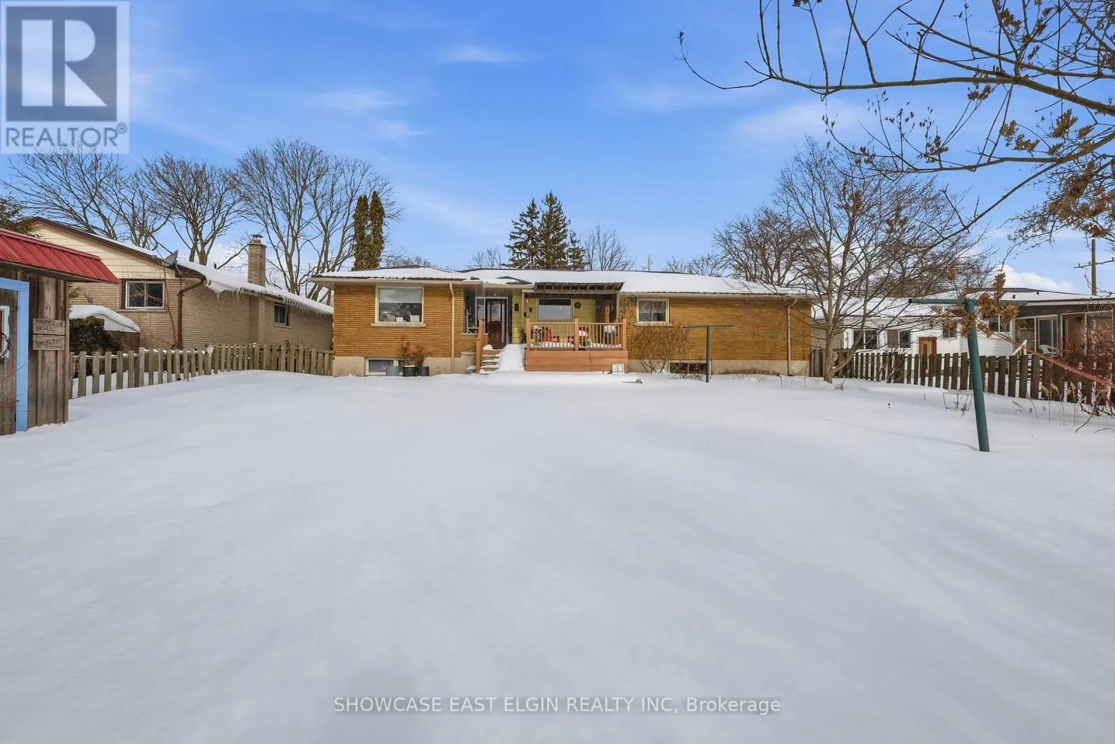 Cross Streets: Queen St S. ** Directions: John St S of Talbot then east on Elk. This solid all-brick bungalow sits on a generous lot just steps from both Assumption Catholic School and McGregor Public School, and only a few blocks from downtown Aylmer; offering the perfect blend of convenience and small-town charm. A paved driveway leads to the attached single-car garage with excellent storage space. The spacious backyard backs onto open farmers' fields, creating a peaceful setting complete with mature plantings, a storage shed, and a partly covered deck which is ideal for enjoying every season. Step inside and you're welcomed by a warm, cozy atmosphere filled with character and original details. A long, practical hallway keeps boots and coats tucked away from the main living areas, while a dedicated home office and convenient two-piece bath make working from home easy and comfortable. The kitchen offers ample prep space and a large window overlooking the backyard. Built-in banquet seating creates a bright, cheerful spot for family dinners, morning coffee, or homework time. For larger gatherings, a dedicated dining room is connected to the kitchen. The living room features a large picture window that fills the space with natural light. Down the hall, you'll find three comfortable bedrooms and a full bathroom. The lower level is well laid out with space for a rec room, laundry area, storage, and a workshop which provides flexibility for hobbies, family time, and everyday living. A well-loved home in a prime location, ready for its next chapter. (id:27476)