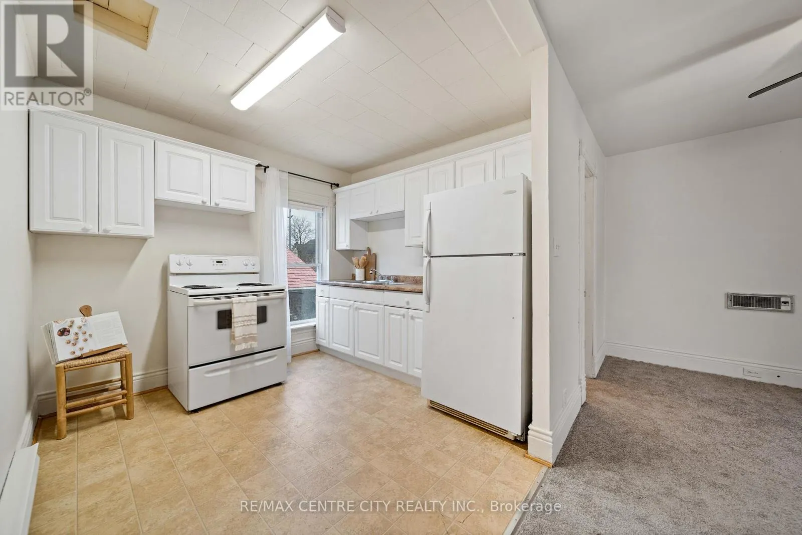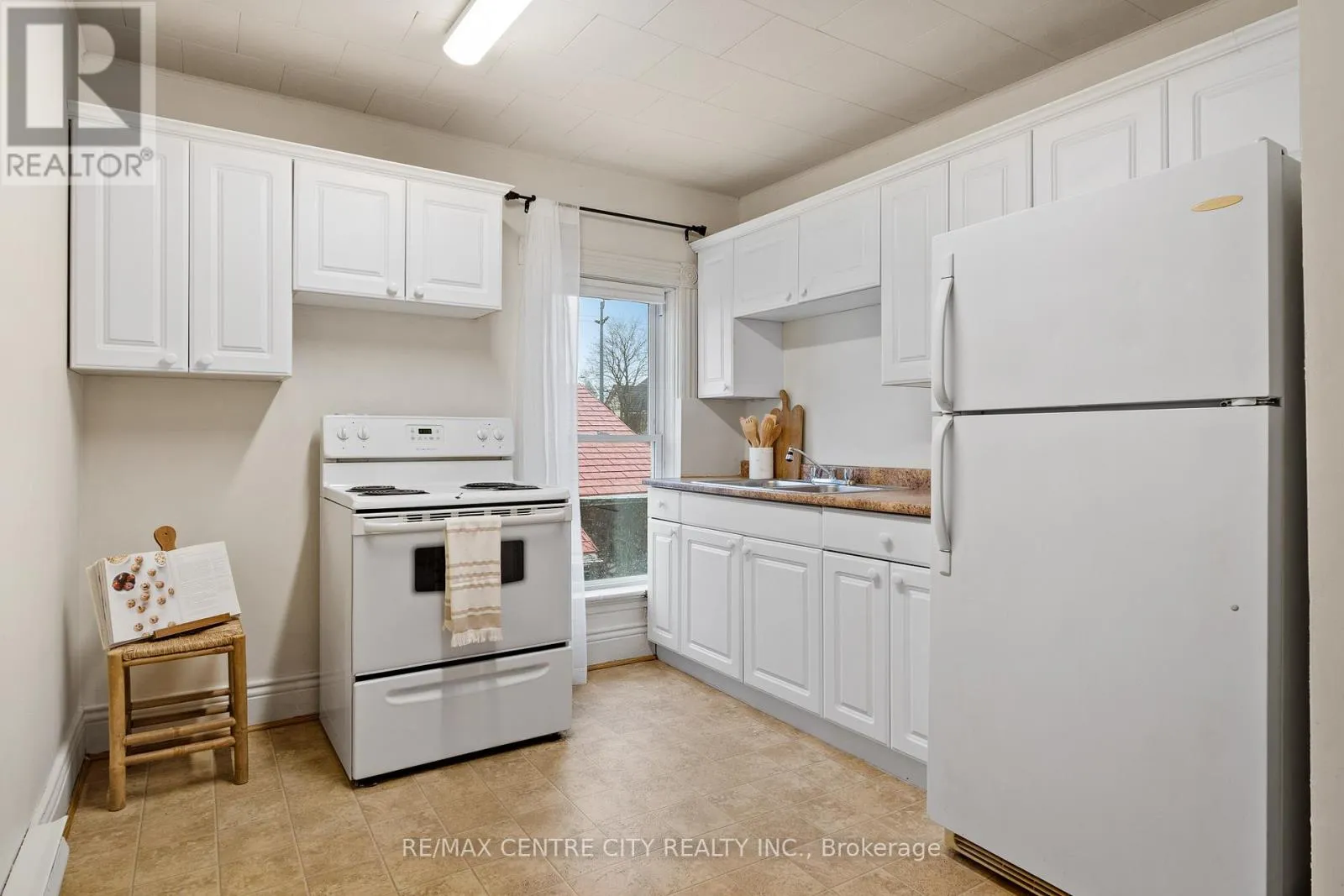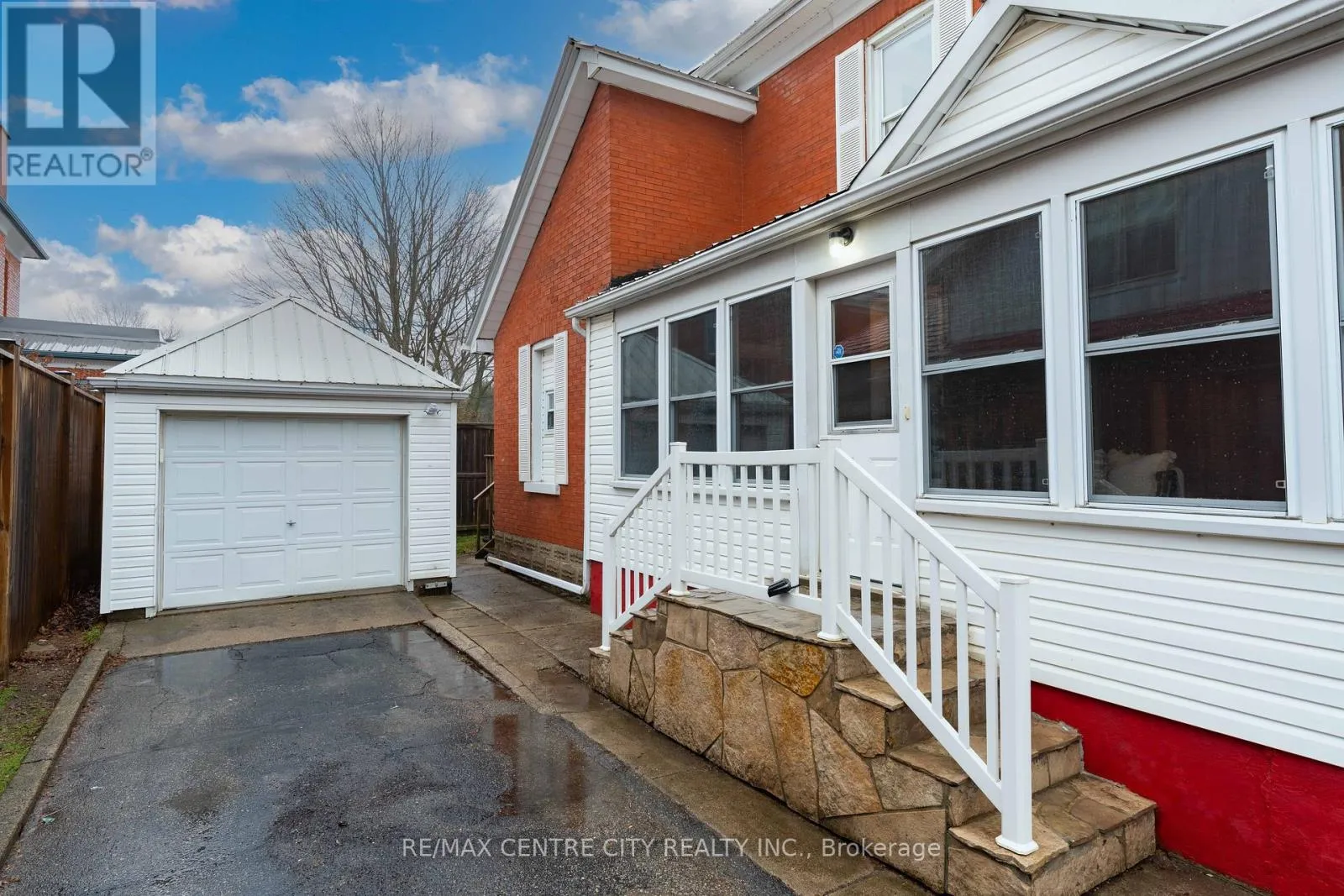 Cross Streets: Sydenham St. ** Directions: From Talbot St turn south onto King St. Destination on the left. Imagine the flexibility of owning a home that can help pay for itself. Whether you're looking for an affordable way to live, space for extended family, or a smart addition to your investment portfolio, this vacant legal duplex offers incredible opportunity. Set your own rents and design the lifestyle that works best for you. Live comfortably in one unit while renting the other to offset your mortgage, create a welcoming setup for multi-generational living, or easily convert the property back into a spacious century home with a few minor changes. This solid brick, low-maintenance property is well maintained and ideally located close to schools, parks, and everyday amenities. The main floor unit features an updated 2-bedroom, 1-bath layout with private laundry, a bright sunroom entry, forced air gas furnace, and central air conditioning for year-round comfort. Upstairs, you'll find a tidy 1-bedroom, 1-bath apartment, perfect for tenants or extended family. Additional highlights include a detached single-car garage, separate hydro meters, and a full dry basement offering extra storage or future potential. Recent updates such as vinyl windows and a durable metal roof add peace of mind, making this a truly move-in-ready opportunity with flexibility for both homeowners and investors. (id:27476)