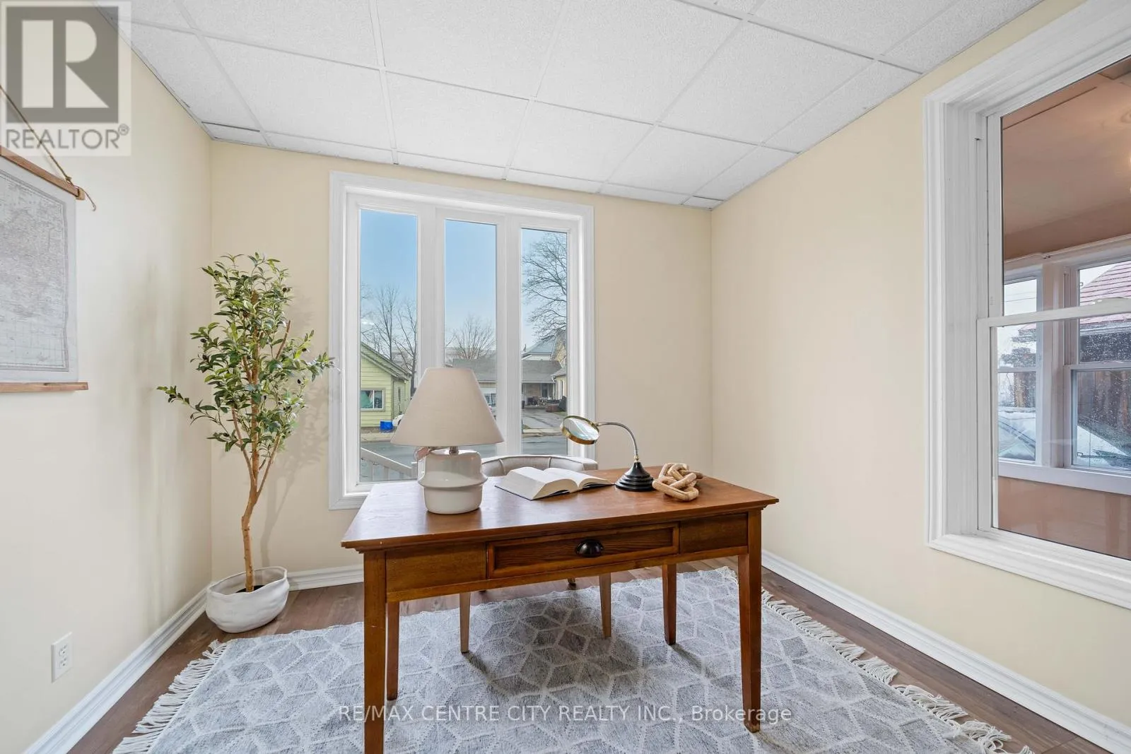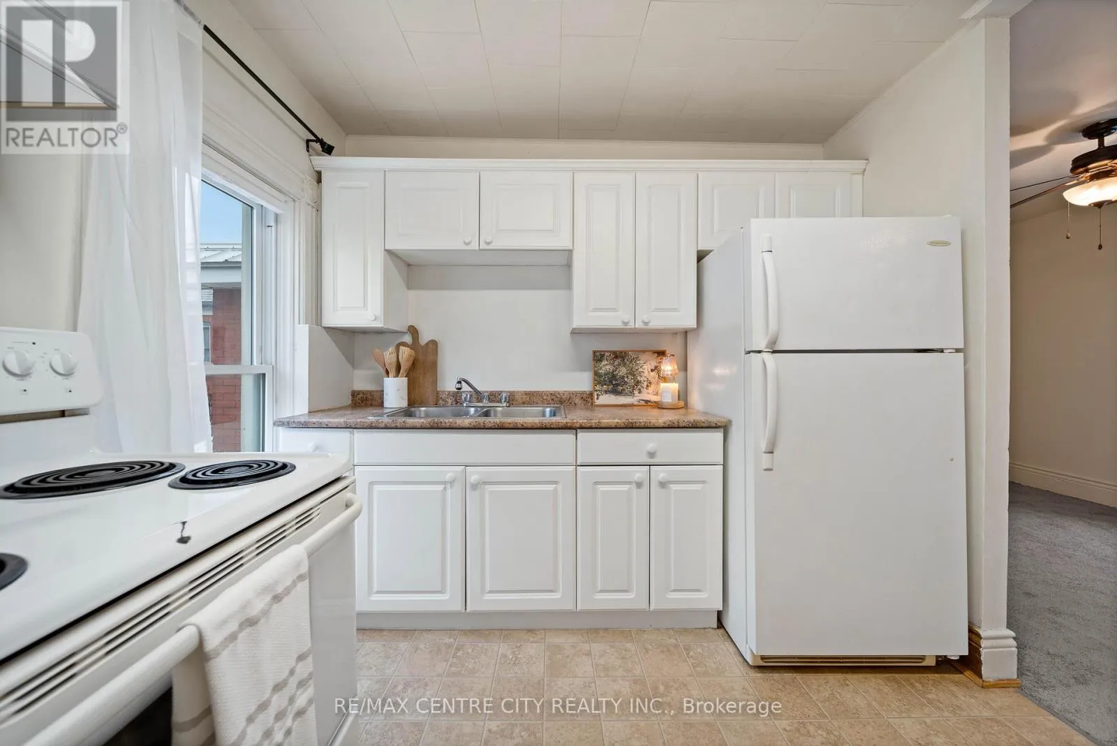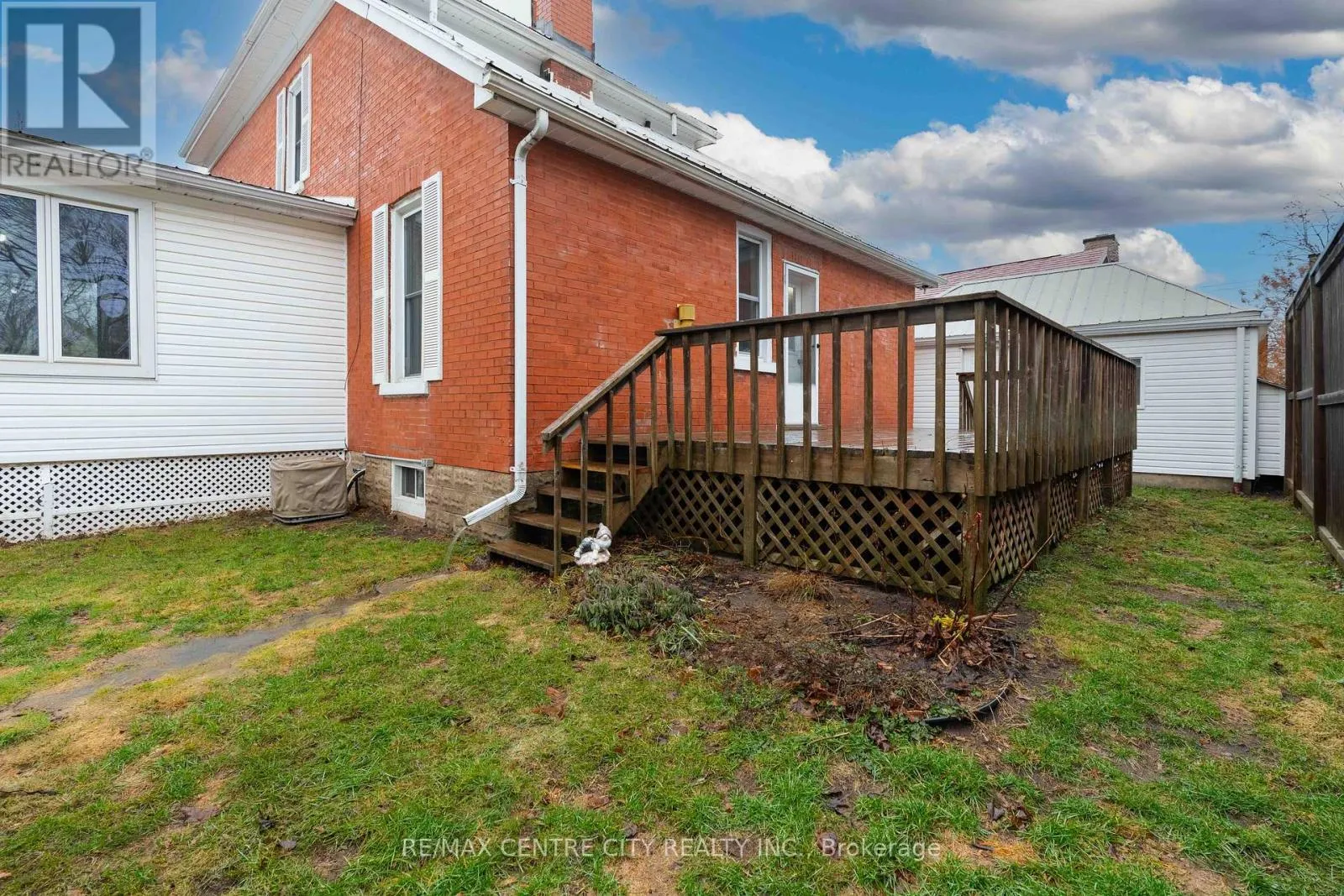 Cross Streets: Sydenham St. ** Directions: From Talbot St turn south onto King St. Destination on the left. Imagine the flexibility of owning a home that can help pay for itself. Whether you're looking for an affordable way to live, space for extended family, or a smart addition to your investment portfolio, this vacant legal duplex offers incredible opportunity. Set your own rents and design the lifestyle that works best for you. Live comfortably in one unit while renting the other to offset your mortgage, create a welcoming setup for multi-generational living, or easily convert the property back into a spacious century home with a few minor changes. This solid brick, low-maintenance property is well maintained and ideally located close to schools, parks, and everyday amenities. The main floor unit features an updated 2-bedroom, 1-bath layout with private laundry, a bright sunroom entry, forced air gas furnace, and central air conditioning for year-round comfort. Upstairs, you'll find a tidy 1-bedroom, 1-bath apartment, perfect for tenants or extended family. Additional highlights include a detached single-car garage, separate hydro meters, and a full dry basement offering extra storage or future potential. Recent updates such as vinyl windows and a durable metal roof add peace of mind, making this a truly move-in-ready opportunity with flexibility for both homeowners and investors. (id:27476)