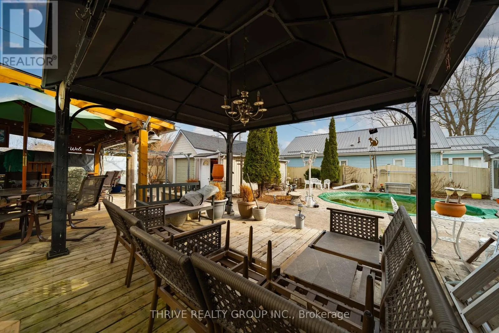 Cross Streets: South East corner of Talbot Street East and Elgin Street. ** Directions: Turn left onto Talbot St from John St. Step into the timeless charm of this beautifully maintained and thoughtfully updated century home, where character meets modern functionality. Set on a unique property with two separate driveway entrances, this home offers exceptional versatility with a rare 4-car attached garage plus an additional detached single-car shop-perfect for hobbyists, car enthusiasts, or extra storage. Designed with entertaining in mind, the backyard is a true summer retreat. Enjoy the in-ground pool surrounded by stamped concrete, multiple lounging areas, and a built-in bar, all complemented by a convenient gas BBQ hookup-creating the ultimate space for hosting family and friends. Inside, the home showcases its historic charm alongside a spacious, well-designed layout. The eat-in kitchen features custom cabinetry and built-in appliances, while large windows fill the main floor with natural light. Multiple living areas provide flexibility, along with a dedicated office, main floor laundry, a generous bathroom with jetted tub, a cozy reading nook, and ample storage throughout. Upstairs offers three well-sized bedrooms, including a primary with a 3-piece ensuite. One of the additional bedrooms features access to a charming front balcony, adding to the home's character and appeal.The oversized heated garage also includes a rear indoor bar-ideal for year-round entertaining-and a convenient pull-through door leading to the detached shop. With its blend of original charm, modern updates, and unmatched garage and outdoor space, this one-of-a-kind property is truly a rare find. Book your private showing today and experience everything this exceptional home has to offer. (id:27476)