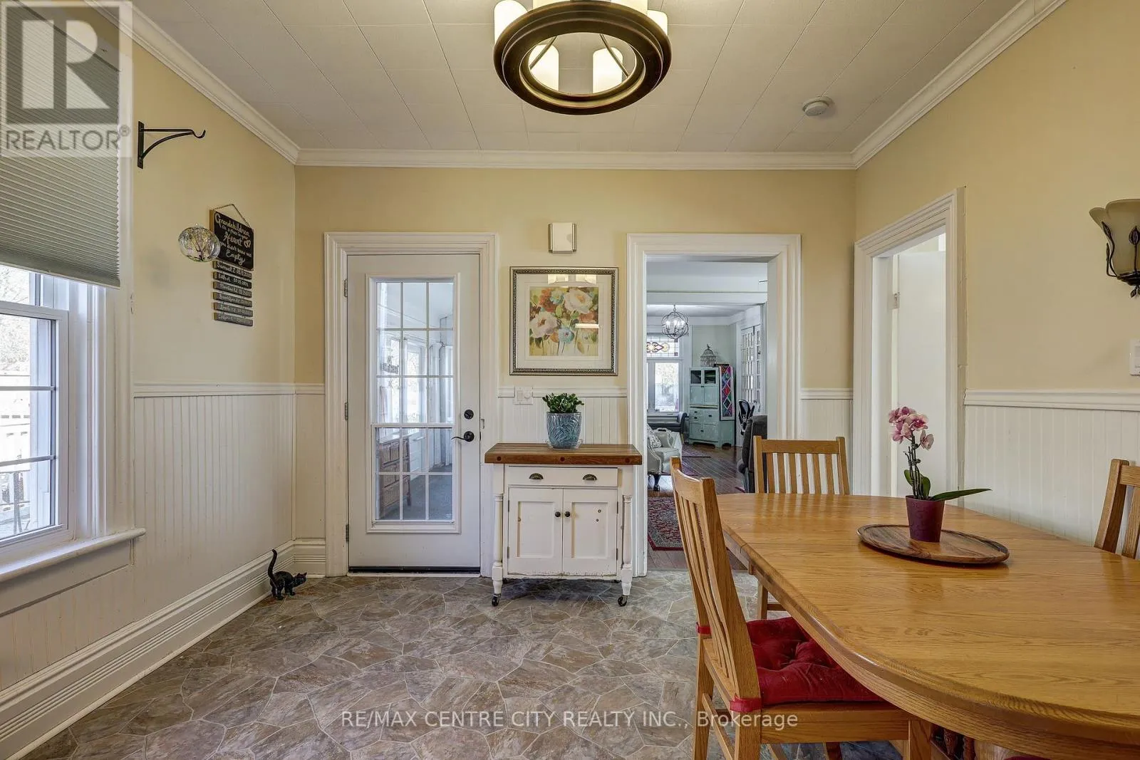 Cross Streets: Victoria Street. ** Directions: Head into Aylmer, coming from the East on number 3 highway, house is on the left hand side just past Victoria Street. At 316 Talbot St E in Aylmer, you'll find a charming New England-inspired home featuring classic white siding over brick, a welcoming front porch, and warm, traditional interiors that blend timeless character with everyday comfort. Carefully maintained and offered at $529,900, this stately two-storey home reflects early-century proportions with its tall profile, generous windows, and inviting verandah. Set on a large lot, the property offers privacy, charm, and excellent outdoor utility, complemented by two garden sheds and an oversized two-car brick garage ideal for vehicles, hobbies, or workshop use.****Inside, the home offers a generous and versatile layout, with a main floor designed for full-time living without stairs. The living, dining, and kitchen areas flow naturally, creating a warm and functional core, while the study provides a flexible bonus space for work or quiet retreat. A main-floor bedroom adds convenience for multi-generational living or those who prefer single-level comfort. Each level includes a full bath, and the bright sunroom and classic verandah extend the home's charm. Upstairs, two additional bedrooms and an updated 3-piece bath create a private, restful space for children, guests, or a dedicated primary suite.****Mechanical updates include a breaker-panel electrical system, new furnace and central air, durable metal roof, and owned water softener. The treed, private yard extends the living space outdoors-perfect for gardening, play, pets, or entertaining. With its blend of character, practicality, and thoughtful updates, this is a home clearly cared for and ready for its next chapter.**--- (id:27476)