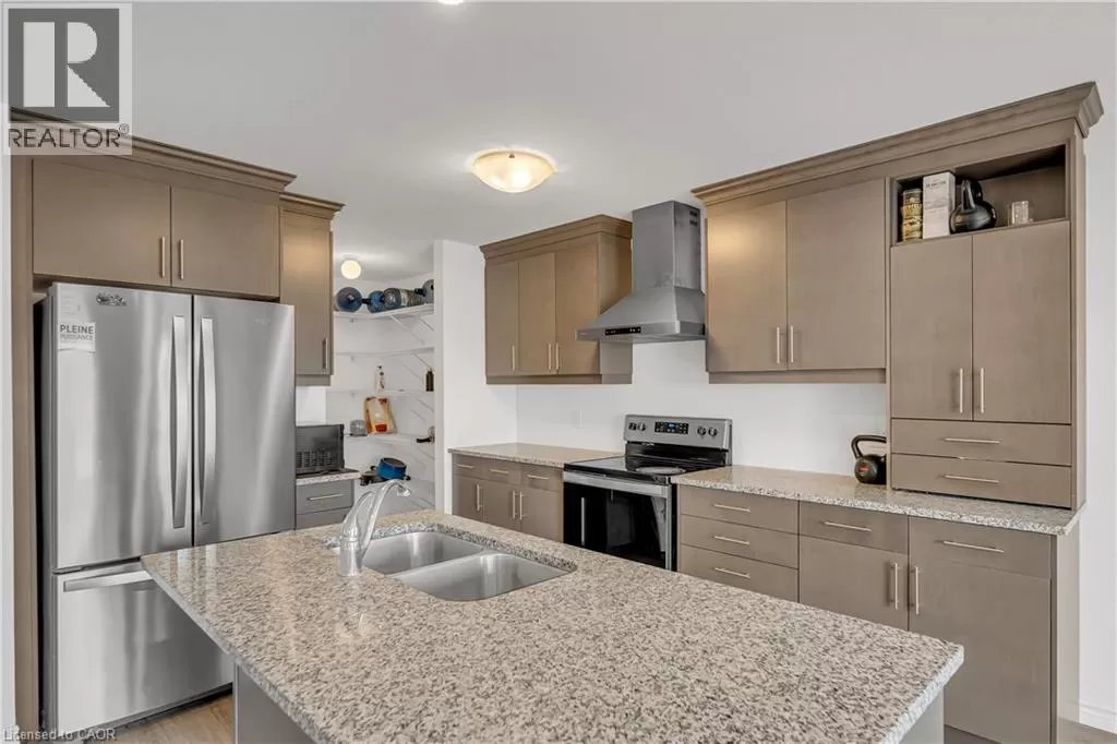 NORTHUMBERLAND ST TO GREENFIELD RD TO WEST MILL ST. 2 YEARS OLD, 1962 sq.ft., 4 bedroom & 2.5 bathroom, END UNIT TOWNHOME WITH WALKOUT BASEMENT located conveniently to TIM HORTONS, GROCERY STORE and HWY 401 in the most desirable area of AYR. The main floor features a welcoming foyer that opens into a bright, open-concept living and dining area with huge windows allowing abundance of natural light during the day, seamlessly connected to an open concept kitchen with stainless steel appliances, breakfast bar, plenty of kitchen cabinets and pantry âperfect for everyday living. A sliding door opens from the dining room to the wooden deck perfect for your family's outdoor enjoyment. A convenient mudroom with closet, 2-piece bath, and direct access to the attached garage complete this level. Upstairs, the spacious primary bedroom boasts a walk-in closet and private 4-piece ensuite bathroom, while three additional bedrooms share a full 4pc bathroom. A dedicated second-floor laundry room adds ease to daily routines. Full unfinished walkout basement. Located in a quiet, family-friendly neighbourhood close to HWY 401, minutes of walk to Foodland and Tim Hortons. (id:27476)