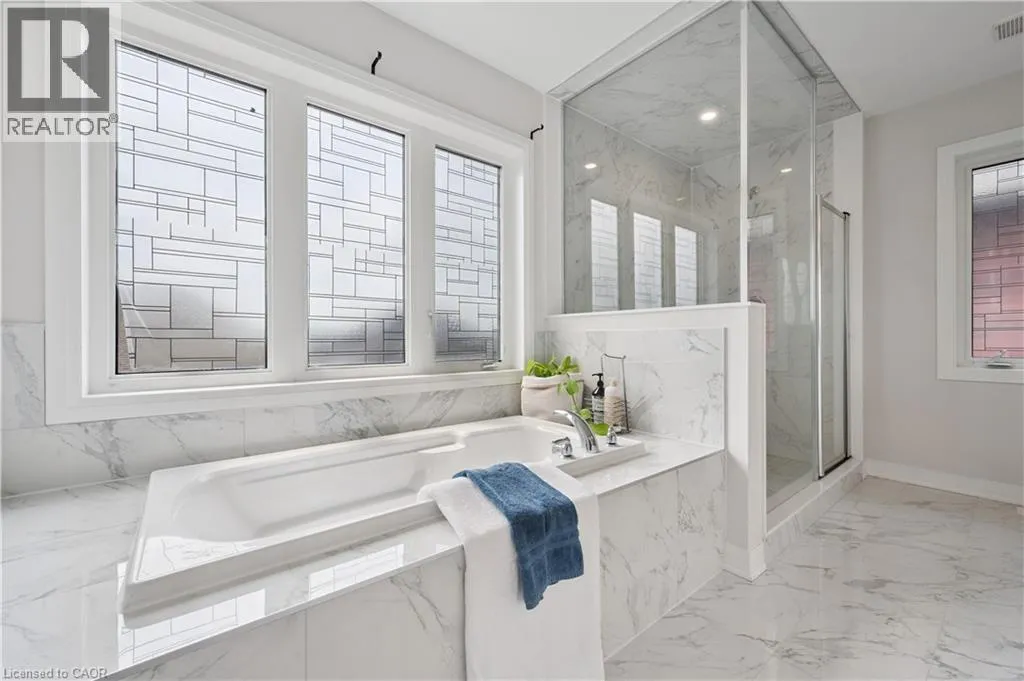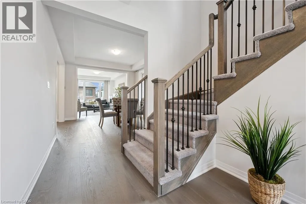 Hilltop - Howard Marshall - Robert Woolner Step into this stunning, nearly new Cachet-built home, WHERE LUXURY AND MODERN LIVING unite in perfect harmony. Nestled on a PREMIUM WALKOUT LOT, this 4-bedroom, 3.5-bathroom residence WELCOMES YOU THROUGH DOUBLE GLASS DOORS into a world of elegance. Gleaming tiled flooring, CUSTOM HARDWOOD STAIRS WITH SLEEK METAL RAILINGS, and ENGINEERED HARDWOOD FLOORS flowing throughout the main floor set the stage for sophistication. 9-foot ceilings AMPLIFY THE SPACIOUS LIVING ROOM, anchored by a cozy gas fireplace and seamlessly connected to the formal dining roomideal for entertaining. THE CHEFS KITCHEN IS A MASTERPIECE, extended-height white cabinetry, INTRICATE GLASS ACCENTS, and a CUSTOM STAINLESS RANGE HOOD OVER A PROFESSIONAL GAS STOVE. Caesarstone Quartz Calacatta Nuvo countertops and a STRIKING CHARCOAL-TONED CENTER ISLAND elevate both style and function, while the dazzling chevron GLASS BACKSPLASH ADDS A TOUCH OF DESIGNER FLAIR. Step through the dinette sliders to your private deck and views of the yard, perfect for outdoor gatherings. Convenience meets luxury with a mudroom leading to the 2-car garage, COMPLETE WITH AN EV CHARGER ROUGH-IN. Upstairs, discover a SUNLIT LAUNDRY ROOM AND THE PRIMARY SUITE, featuring a coffered ceiling, expansive walk-in closet, and a spa-like ensuite with a RAISED DOUBLE QUARTZ VANITY, SOAKER TUB, AND GLASS-ENCLOSED SHOWER. Three additional bedrooms two connected by a Jack & Jill bathroom and one with its own ensuite offer ample space for family or guests. The LOWER LEVEL PRESENTS ENDLESS POSSIBILITIES with a sprawling walkout basement, rough-ins for additional laundry, and multi-generational living potential. Every detail in this home has been meticulously crafted, from its premium upgrades to its unbeatable location just steps from Sken:nen Park and MINUTES FROM MAJOR HIGHWAYS. Dont miss the chance to own this dream home in Generations, where luxury, convenience, and modern design come together for the ultimate living experience. (id:27476)