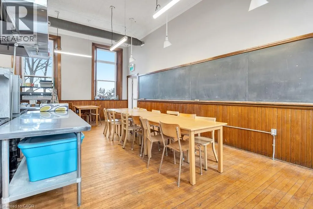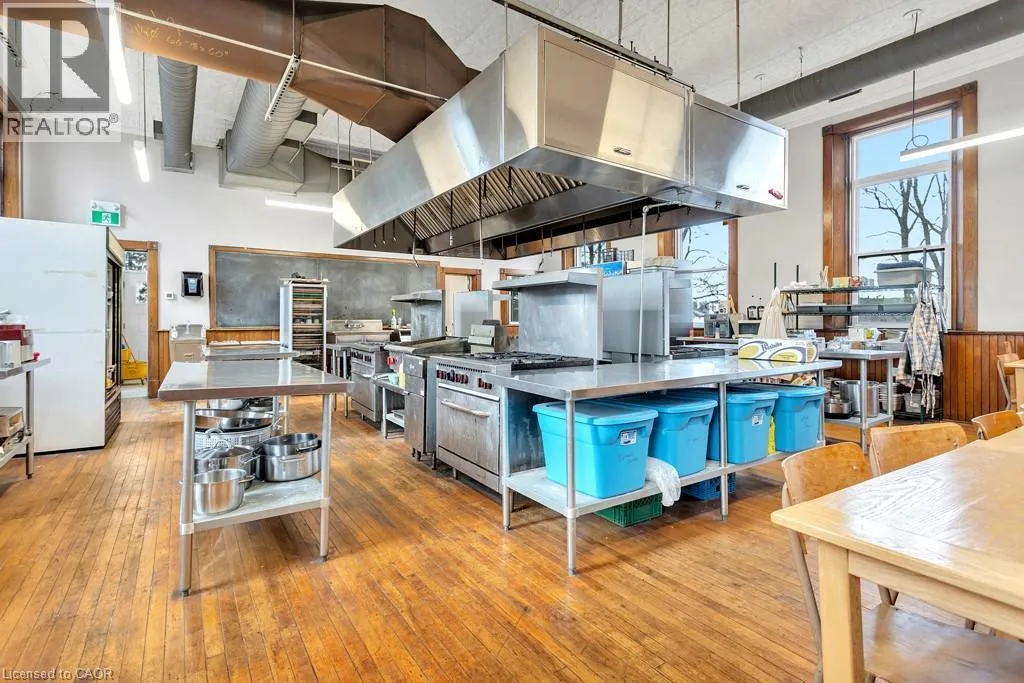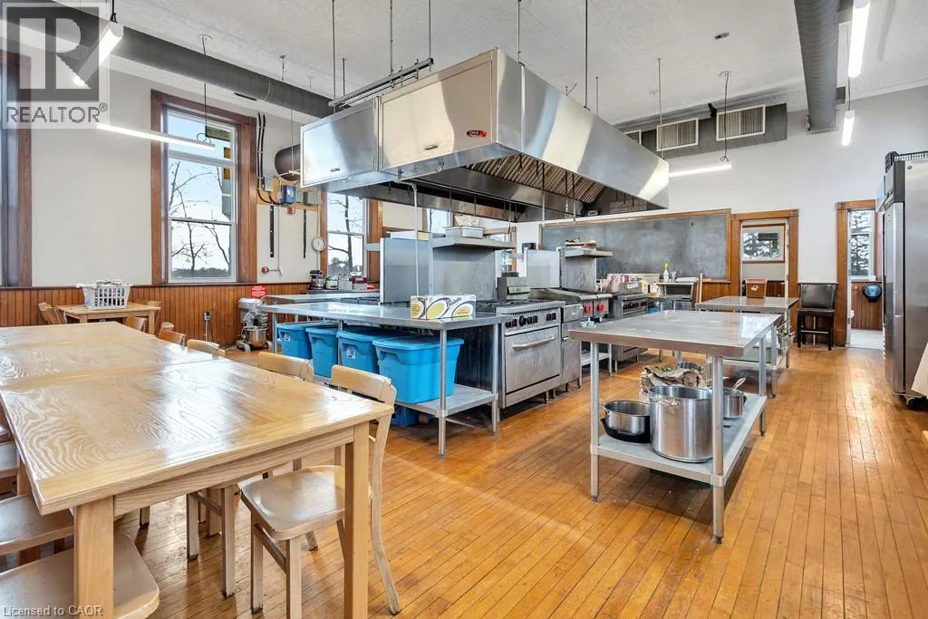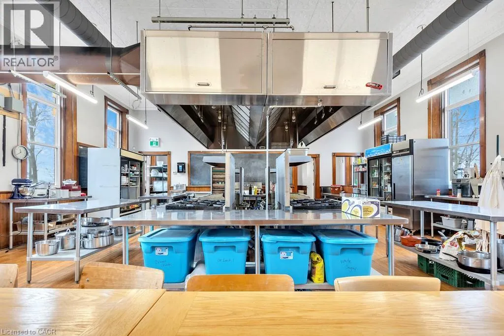 Trussler Road south of Oxford Road 8 round a bout, before Oxford Rd 29. RESIDENTIAL ZONING HAS BEEN APPROVED and the new by-laws for the property have been provided by the municipality. A piece of local history. Offering an original red brick one room school house with original tin ceiling and woodwork and chalk boards. Presently set up as a culinary school, however application has been filed to change the zoning to residential (RR). Many updates have been completed since 2018 including: foundation wrapped with delta wrap and sump pump installed, new large septic system installed with capacity for the culinary school, hi-eff propane furnace, propane hot water heater (power vented), all windows and exterior doors (including fire doors), 400 amp hydro service, new stack, new well - 2018 (106'), softener and uv light, repaired bell tower, gutted and insulated attic and installed proper fire walls. Upper level has large original class room, 2-2pc baths, prep kitchen and his and hers and coat rooms at the front foyer. Basement includes: large meeting room, 4pc bath, laundry and bedroom/office. This 1 acre property is only 10 min to Kitchenr, 5 min to Ayr on Trussler Road, south of the 401. Loads of parking. Make this quaint old school house into your new residence, lots of room to build on. (id:27476)