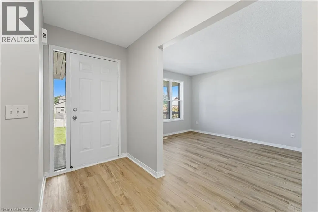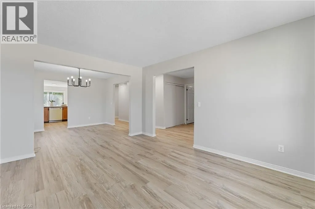 HILLTOP DRIVE TO HUNT STREET TO JONES COURT Welcome Home to 16 Jones Court, Ayr! This two bedroom bungalow, located on a quiet court features a large private back yard. Owned by just one family since it was built, this home offers plenty of opportunity for the next owner to make it their own. Large Living Room and Formal Dining Room are spacious for family gatherings. The Kitchen has ample counter space and features a Dinette with Patio Doors leading to the large 0.30 acre lot backing onto trees. The home features a bright interior with fresh paint and new waterproof laminate flooring through out, an attached double garage, and a practical layout that makes for comfortable living. The Primary Bedroom features an ensuite bathroom with rough in for future shower/tub. While some updating is needed, the potential here is endlessâperfect for first-time buyers , down-sizers, or anyone looking to invest in a desirable community. Set in a safe, family-friendly neighbourhood, the property is close to Cedar Creek School, The Early ON Centre, parks, and scenic walking trails. Ayr is a welcoming town, known for its ponds, rivers, and small-town charm, while still offering quick access to 401 and 403 for an easy commute. Donât miss this opportunity to bring your vision to life in one of Ayrâs most sought-after locations! Flexible Possession. Please note some photos are virtually staged. (id:27476)