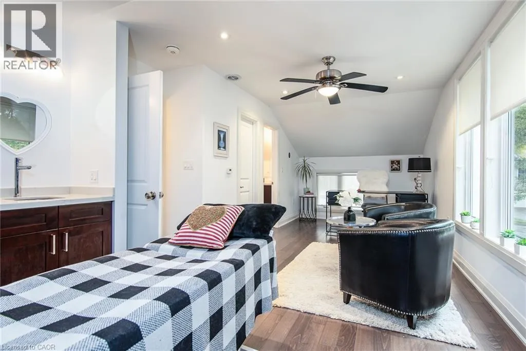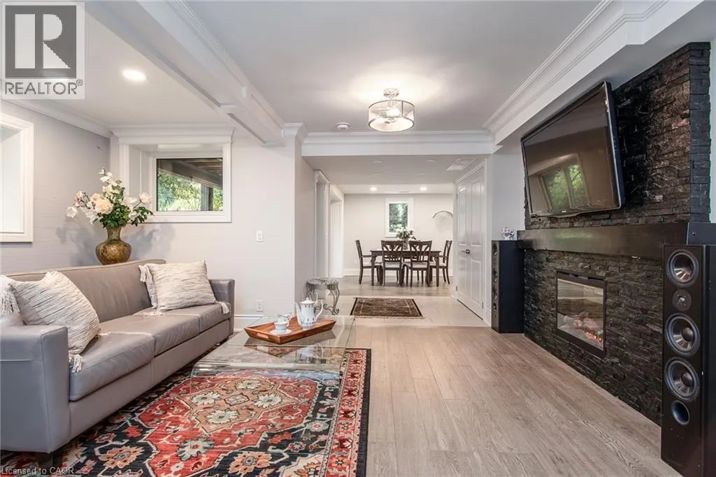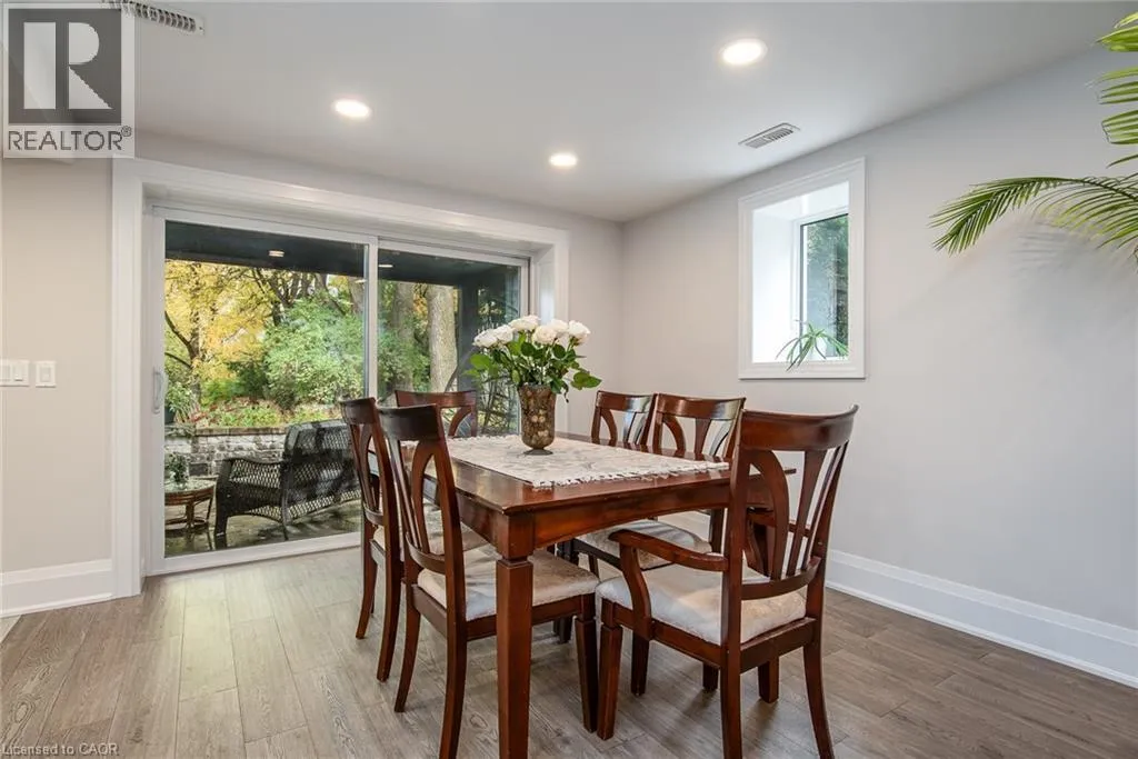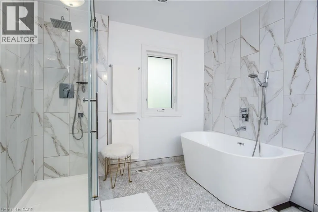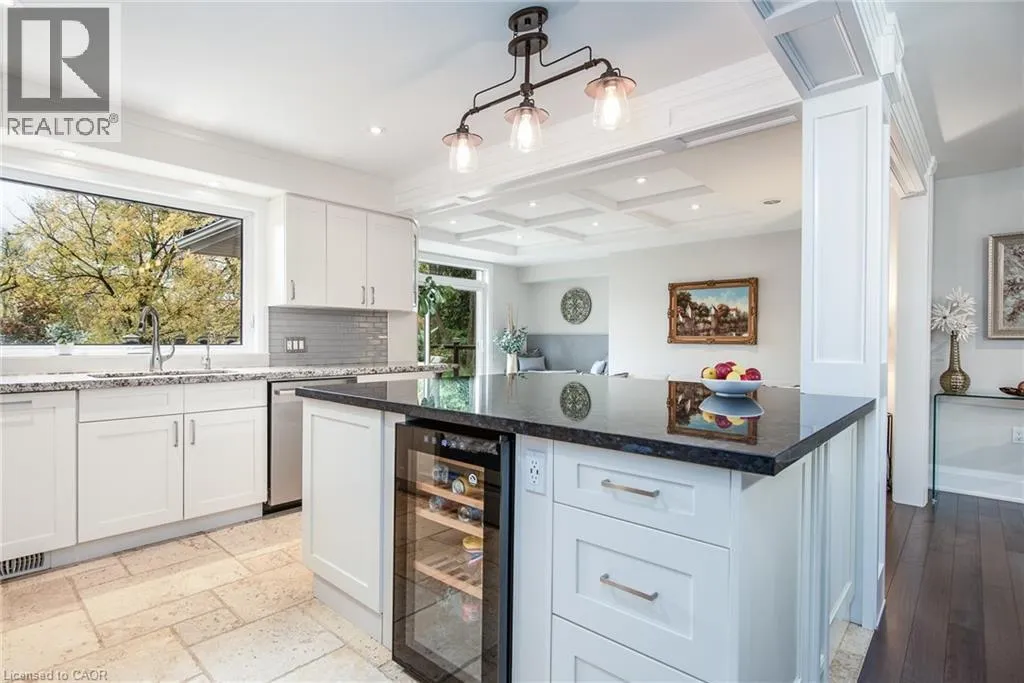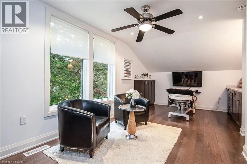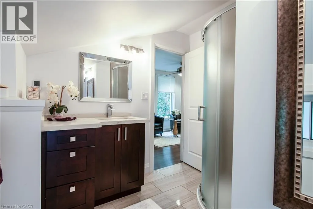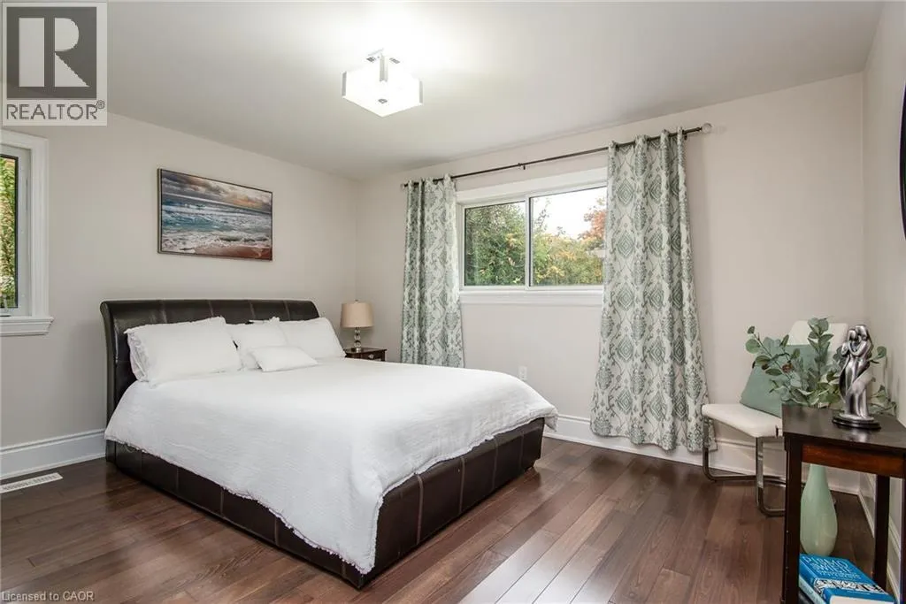 Stanley to Swan to Mitchell Custom-built dream home with a stunning view and a truly unique layout! Wake up to the peaceful beauty of a tree canopy on a pool-sized lot backing onto a mature forest. Whether you love to entertain or simply enjoy the serenity of nature, this home offers the best of both worlds. Boasting 4 spacious bedrooms and 5 bathrooms (3 with heated floors), this expansive walk-out bungalow provides flexible living with two living areas and an optional separate office space. Cozy up by one of two fireplaces, located in the recreation room and primary bedroom. The welcoming entrance leads to an open-concept main floor featuring beautifully detailed ceilings, hardwood floors throughout, and large glass doors that open to the balcony, offering unobstructed views of your private backyard oasis. The stylish kitchen/dining area showcases a large island, abundant cabinetry, and granite countertops. The dreamy primary bedroom features a spacious walk-in closet and additional closet, a luxurious 5-piece ensuite with a freestanding tub, and glass doors leading to a private balcony. The fully finished basement is perfect for multigenerational living or guest accommodations, complete with a large living room, 3-piece bathroom, powder room, laundry, kitchenette, bedroom, and spacious dining area with walk-out to the patio. Enjoy morning coffee on the front porch or host summer BBQs with ease. The oversized garage is insulated, drywalled, and painted, with a driveway for up to 7 vehicles. Metal roof installed in 2023 with lifetime guarantee. Located in a desirable neighbourhood within walking distance to schools, parks, trails, and playgrounds. With three separate entrances, this home featuring an in-law area is ideal for generational living or a home-based business. Nestled in the charming village of Ayr, just a short drive to Kitchener/Waterloo and minutes to Hwy 401, this character-filled property sits on just over half an acre â a rare find that blends space, style, and lifestyle. (id:27476)