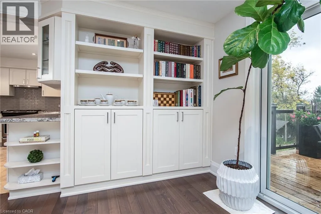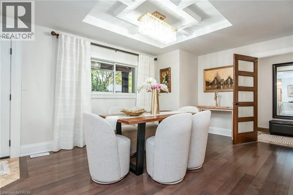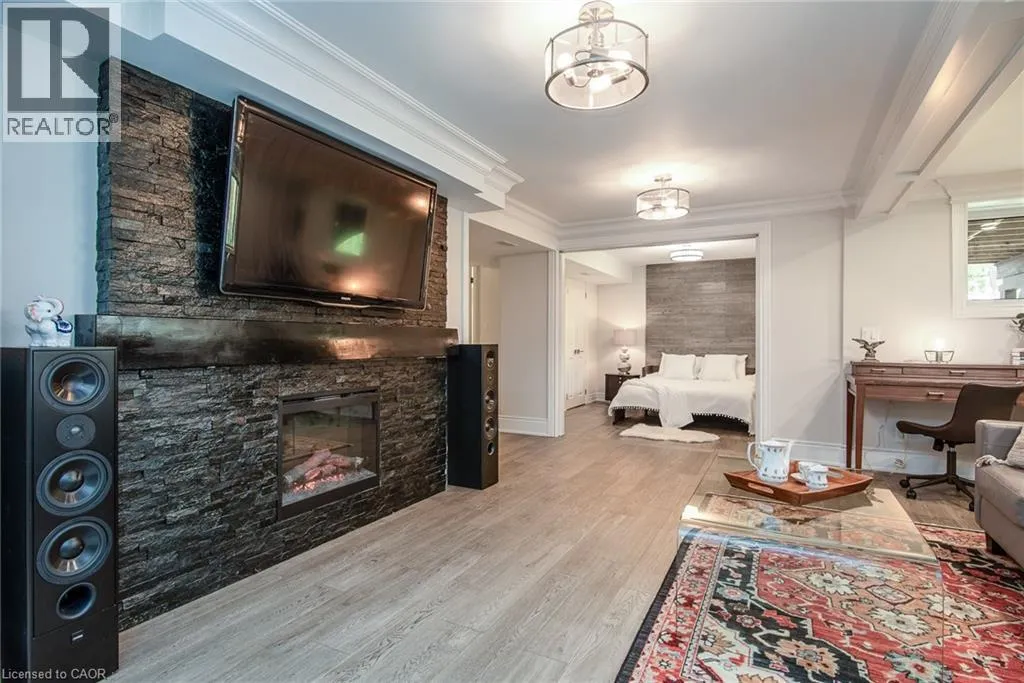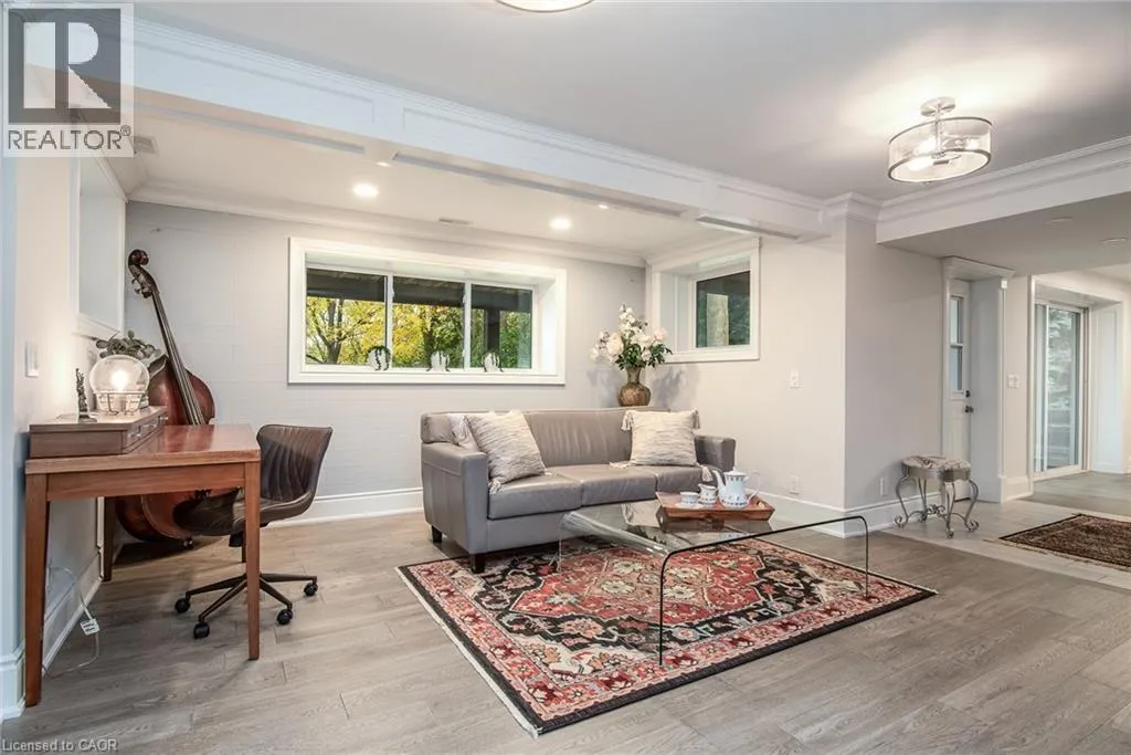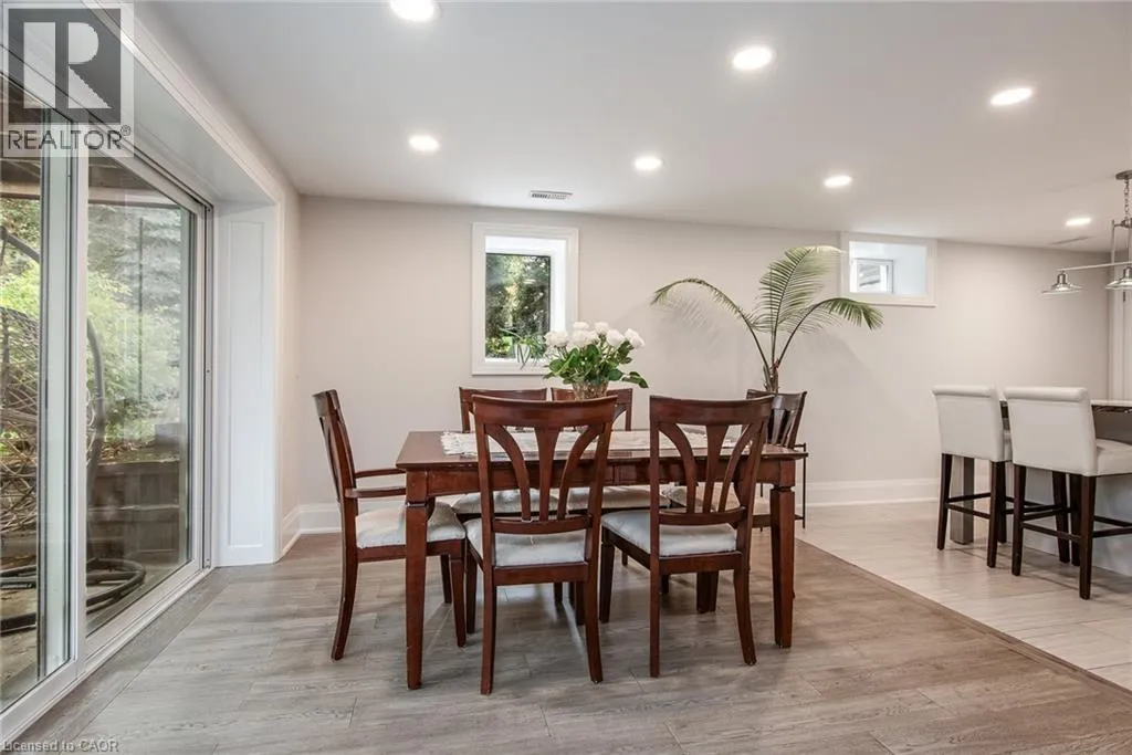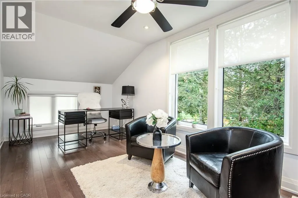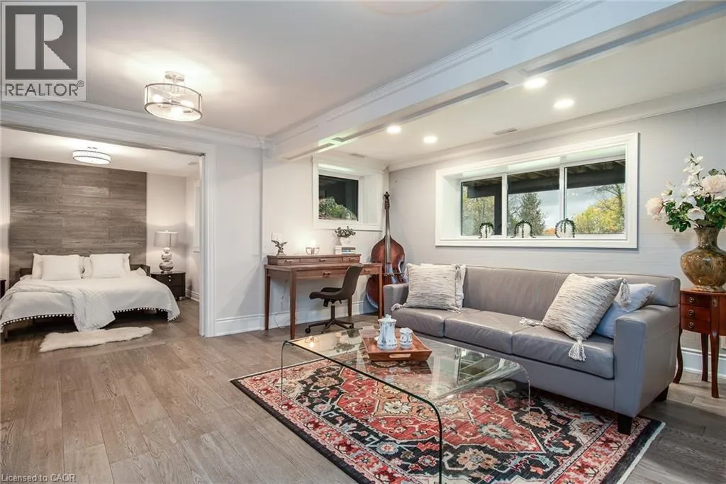 Stanley to Swan to Mitchell Custom-built dream home with a stunning view and a truly unique layout! Wake up to the peaceful beauty of a tree canopy on a pool-sized lot backing onto a mature forest. Whether you love to entertain or simply enjoy the serenity of nature, this home offers the best of both worlds. Boasting 4 spacious bedrooms and 5 bathrooms (3 with heated floors), this expansive walk-out bungalow provides flexible living with two living areas and an optional separate office space. Cozy up by one of two fireplaces, located in the recreation room and primary bedroom. The welcoming entrance leads to an open-concept main floor featuring beautifully detailed ceilings, hardwood floors throughout, and large glass doors that open to the balcony, offering unobstructed views of your private backyard oasis. The stylish kitchen/dining area showcases a large island, abundant cabinetry, and granite countertops. The dreamy primary bedroom features a spacious walk-in closet and additional closet, a luxurious 5-piece ensuite with a freestanding tub, and glass doors leading to a private balcony. The fully finished basement is perfect for multigenerational living or guest accommodations, complete with a large living room, 3-piece bathroom, powder room, laundry, kitchenette, bedroom, and spacious dining area with walk-out to the patio. Enjoy morning coffee on the front porch or host summer BBQs with ease. The oversized garage is insulated, drywalled, and painted, with a driveway for up to 7 vehicles. Metal roof installed in 2023 with lifetime guarantee. Located in a desirable neighbourhood within walking distance to schools, parks, trails, and playgrounds. With three separate entrances, this home featuring an in-law area is ideal for generational living or a home-based business. Nestled in the charming village of Ayr, just a short drive to Kitchener/Waterloo and minutes to Hwy 401, this character-filled property sits on just over half an acre â a rare find that blends space, style, and lifestyle. (id:27476)