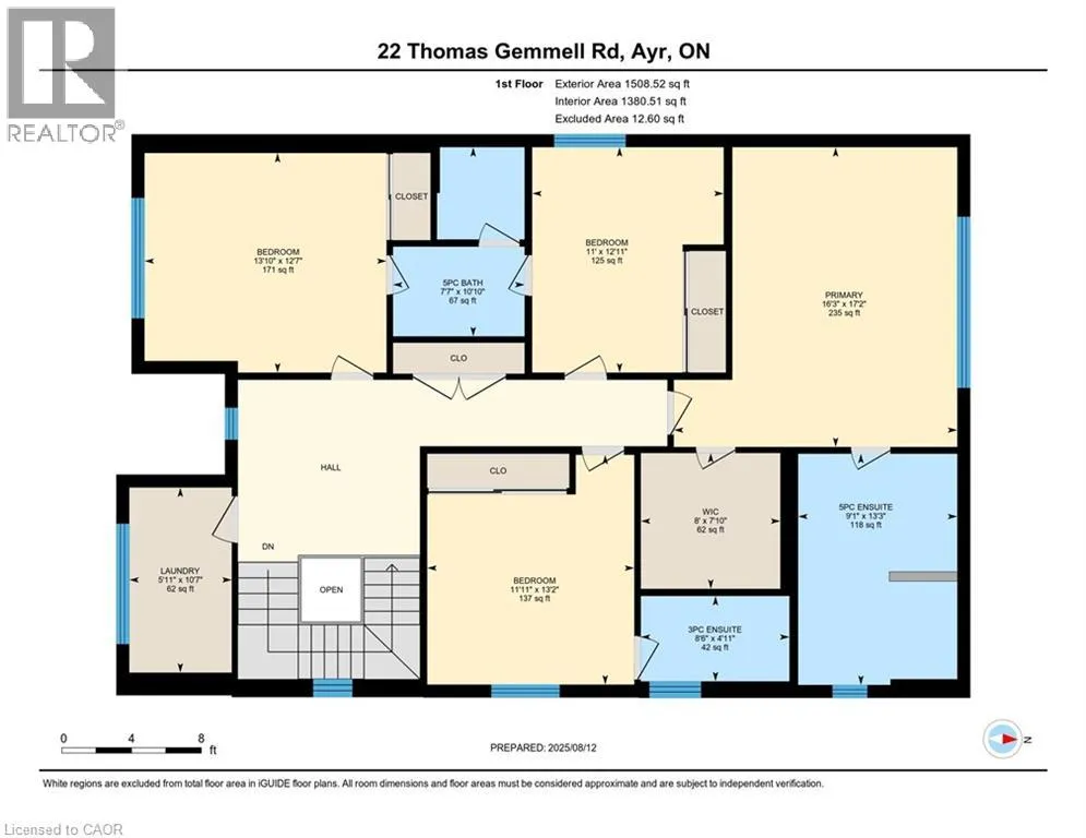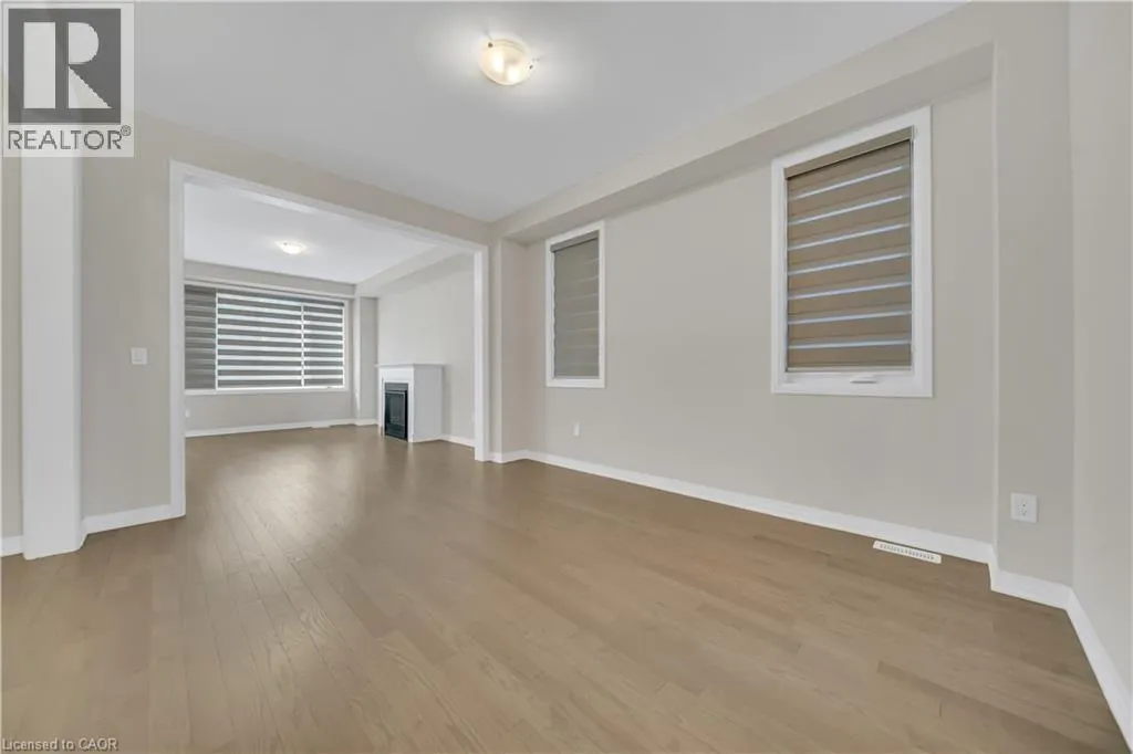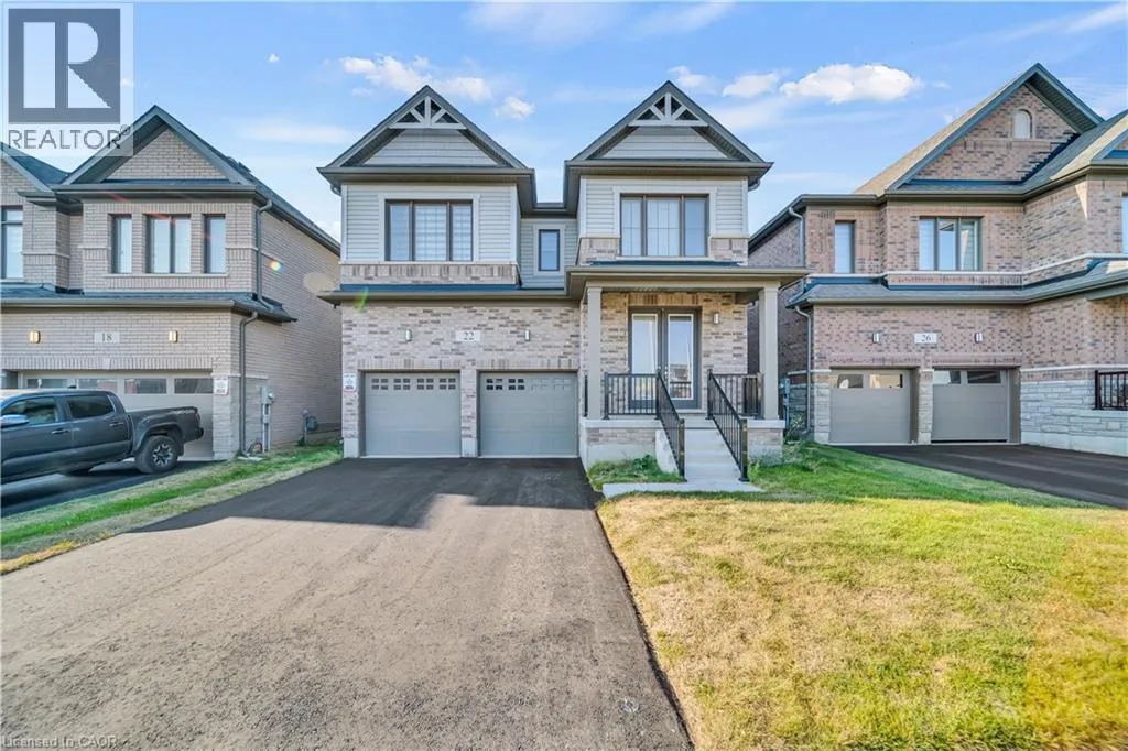 Robert Woolner Street / John Carpenter Street / Thomas Gemmell Road 2633 SQ FT, 4 BED, 3.5 BATH, DETACHED HOME, 2 CAR GARAGE, 2 CAR DRIVEWAY AND SIDE ENTRANCE TO THE BASEMENT. Welcome to 22 Thomas Gemmell Rd, Ayr. A beautiful, only a year old, 2633 sq.ft. , 4 bed, 3.5 bath, detached home with total 4 parking spaces, FOR SALE in family oriented neighborhood of Ayr. Entering through the double door entry, main floor features a BEAUTIFUL open-concept kitchen with plenty of kitchen cabinets, breakfast bar, stainless steel appliances and eat in kitchen. Moreover, it features a spacious living room with a fireplace and huge windows allowing natural light during the day, a dining room, a powder room and a mudroom. A sliding door opens to the huge backyard perfect for your family's outdoor enjoyment. Second floor features a spacious primary bedroom with 5pc ensuite bathroom, three more good sized bedrooms, with 5 pc Jack & Jill bathroom and a 3pc ensuite bathroom. Hardwood through main floor and tiles in kitchen. Very Convenient second floor laundry. Unfinished basement is waiting for your future plans. Double car garage & double driveway. (id:27476)