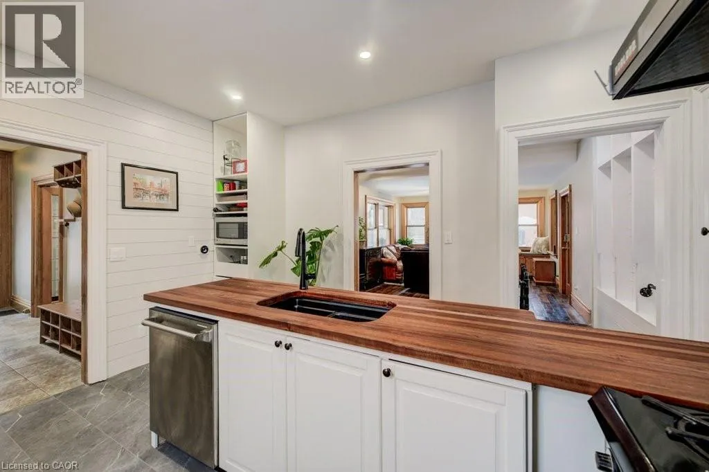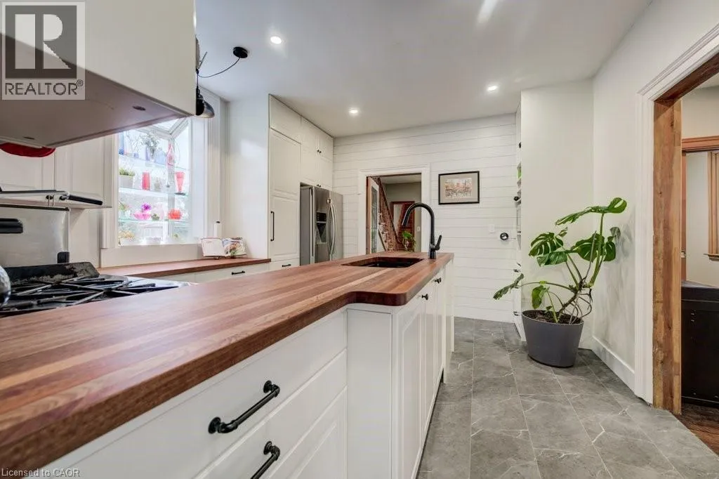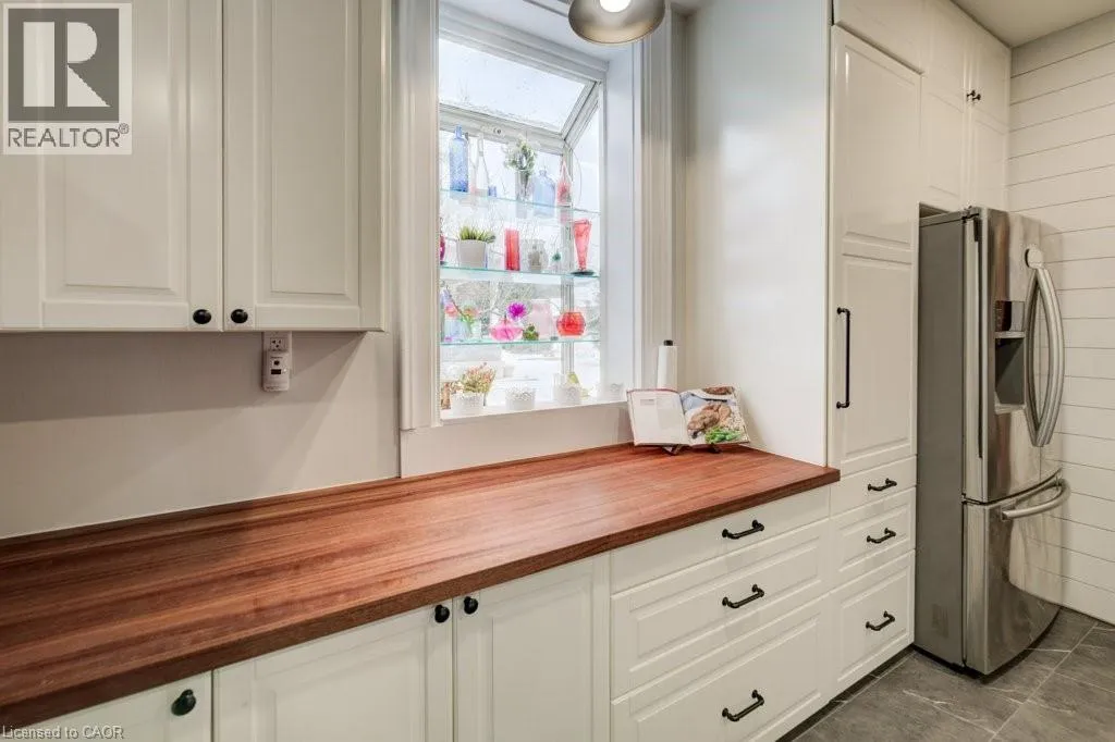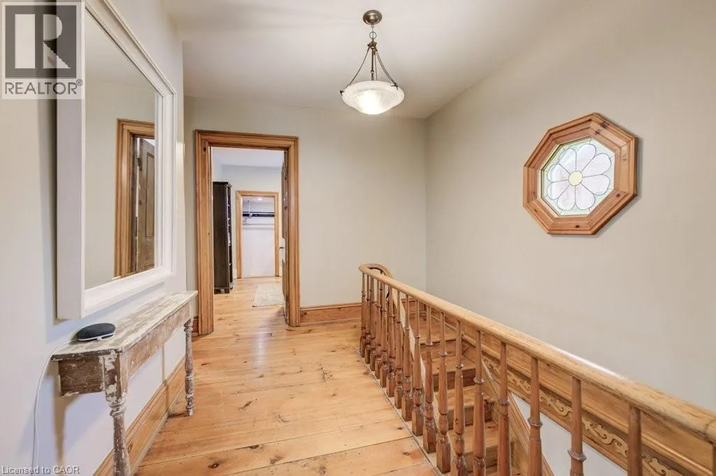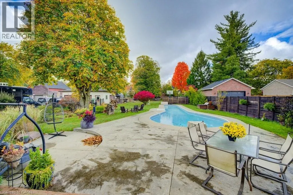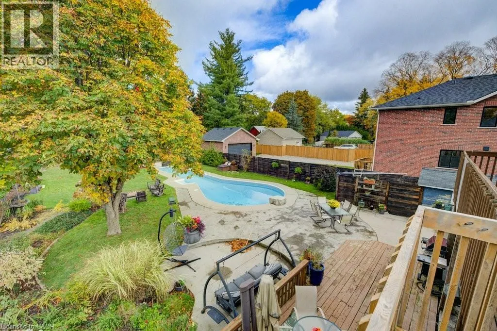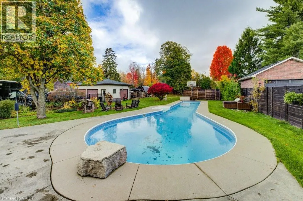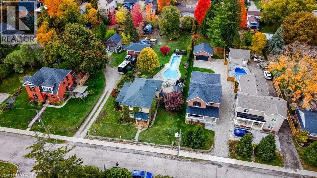 Northumberland to Manley St Welcome home to 24 Manley Street. Purposefully quirky. Thoughtfully crafted. Built in 1886, this character-rich home blends historic soul with spaces designed to adapt to real life. Set on a quiet dead-end street, yet walkable to downtown Ayr, it offers rare privacy on a fully fenced lot just under half an acre. Inside, 9-foot ceilings, reclaimed hemlock barn board floors, and generous living and dining areas create warmth and flow. The kitchen is made for people who truly cook, featuring Sapele butcher block countertops, a Garland industrial gas range and oven, and a sun-filled greenhouse windowâperfect for growing herbs or nurturing plants year-round. A charming screened-in sunroom invites slow mornings with coffee, relaxed afternoons, and lingering summer evenings. The layout is intentionally flexible: a spiral staircase leads to a private bedroom and 4-piece bath, creating an ideal guest retreat, teen space, or personal hideaway, with the option to be separated from the main house. A nearby officeâeasily used as a bedroomâconnects this wing to the original home. Step onto the large balcony and take in views of the peaceful, treed yard. Outdoors, life unfolds around a 60-foot pool, fire pit, and established gardens, supported by a garden shed and an auxiliary water system (dug well with pump)âideal for maintaining lush outdoor spaces. A 40â x 30â gravel pad behind the detached garage adds flexibility for parking, storage, or future uses. With a multi-purpose room featuring polished concrete floors, a dedicated shower room off the mudroom, and a 30â x 20â drive-through garage with four doors, this is not a cookie-cutter homeâitâs a place with history, heart, and room to evolve. (id:27476)
