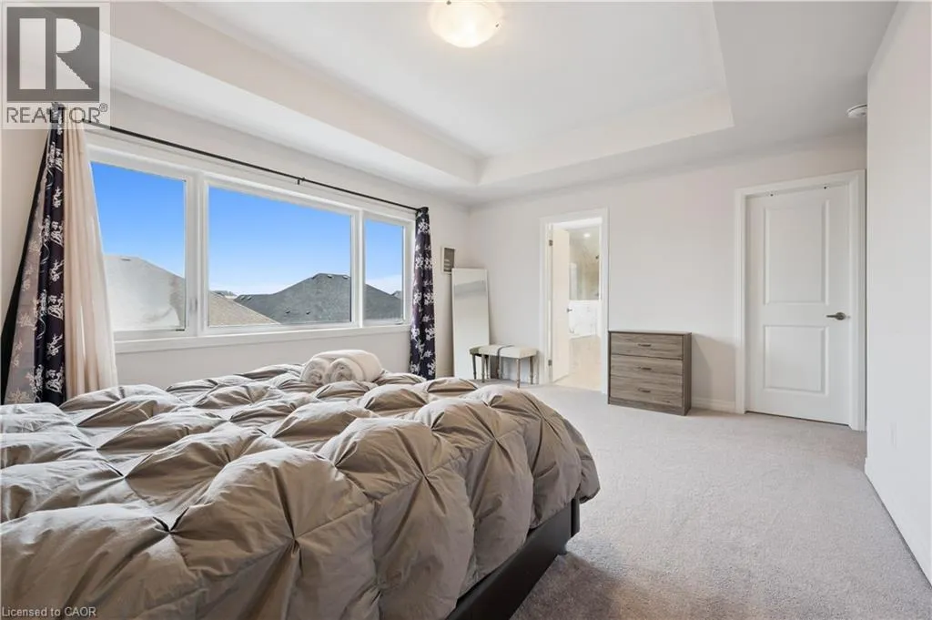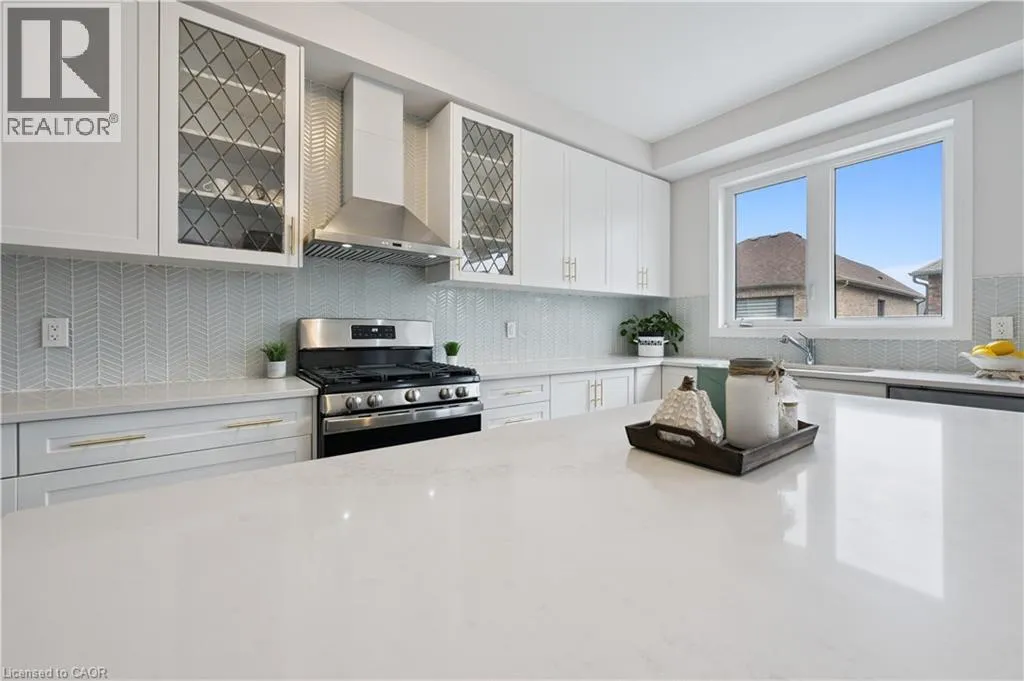Situated on a highly sought-after premium WALK-OUT lot, this nearly new Cachet-built home is designed for multi-generational living, offering excellent in-law suite potential. With over $100k in upgrades including basement rough-ins for a kitchen, laundry, and 3 piece bathroom this home presents a rare opportunity in today's market. Boasting 4 bedrooms, 3.5 bathrooms, and a walk-out basement, it provides expansive space perfect for a future in-law suite, private guest quarters, or income generation. Enter through double glass doors into a refined interior where luxury meets modern design. The main floor showcases gleaming tile, custom hardwood stairs with sleek metal railings, engineered hardwood floors, and 9 foot ceilings that enhance the open, airy feel. The spacious living room, anchored by a gas fireplace, flows seamlessly into the formal dining area-perfect for entertaining. The chef's kitchen is a true showpiece, featuring extended-height white cabinetry with glass accents, custom stainless steel range hood over a professional gas stove, Caesar stone Quartz Calacatta Nuvo countertops, and a striking charcoal centre island. A chevron glass backsplash adds designer flair, while the dinette leads out to a private deck overlooking the backyard-ideal for outdoor gatherings. Practical luxury continues with powder room off the kitchen and mudroom connecting to the 2-car garage with EV charger rough-in. Upstairs you'll find the serene primary bedroom featuring coffered ceilings, a walk-in closet, and a spa-inspired ensuite featuring a raised double quartz vanity, soaker tub, and glass-enclosed shower. All with upgraded tiles, countertops, and tub. The 3 additional bedrooms offer flexibility for guests or children all with a Jack & Jill bathroom or a private ensuite. Located steps from a recently built park and minutes to major highways, this home combines a premium walk-out lot, future in-law potential, and high-end finishes throughout that you don't want to miss. (id:27476)