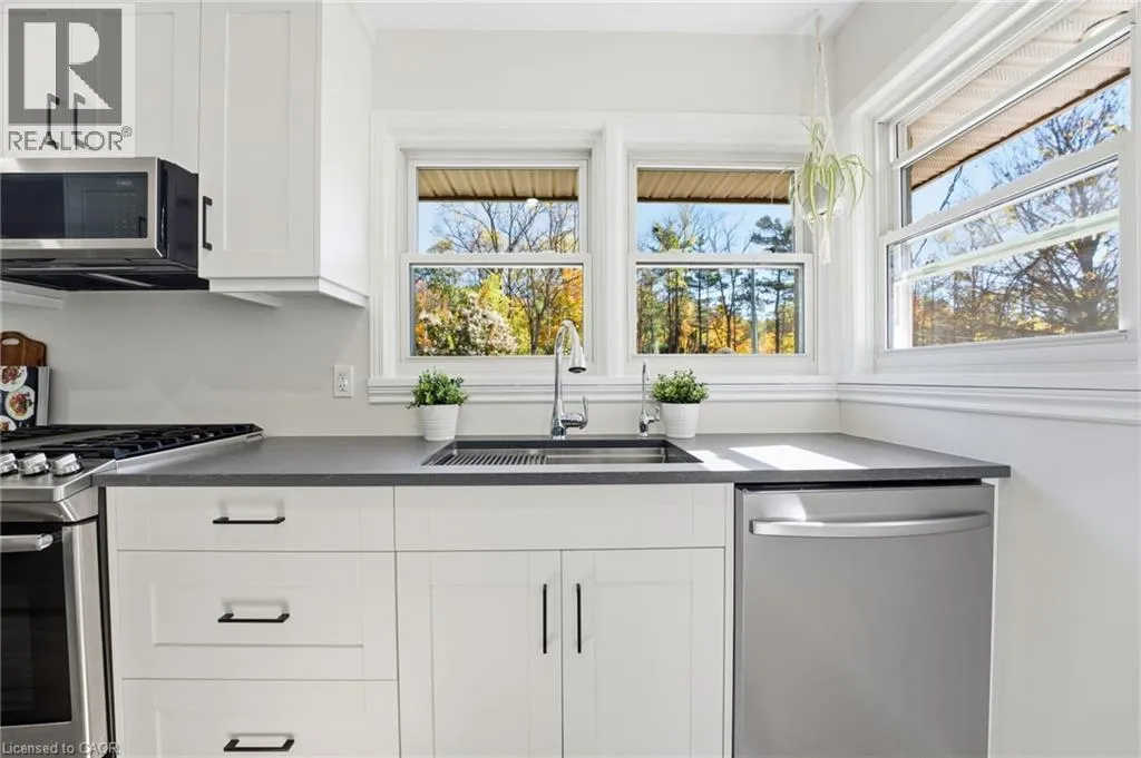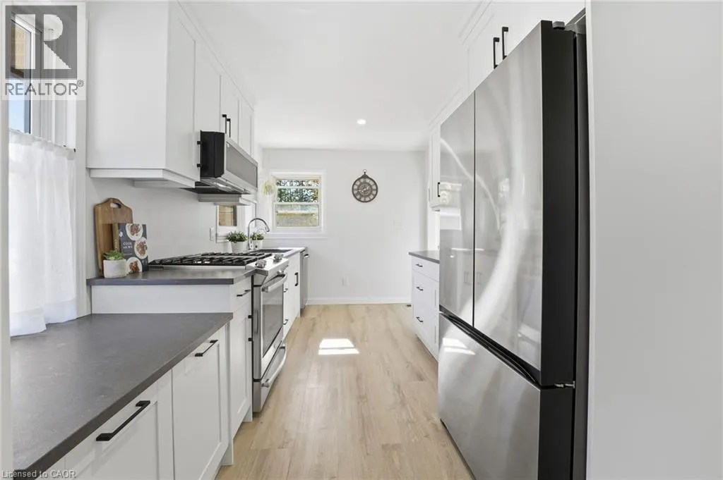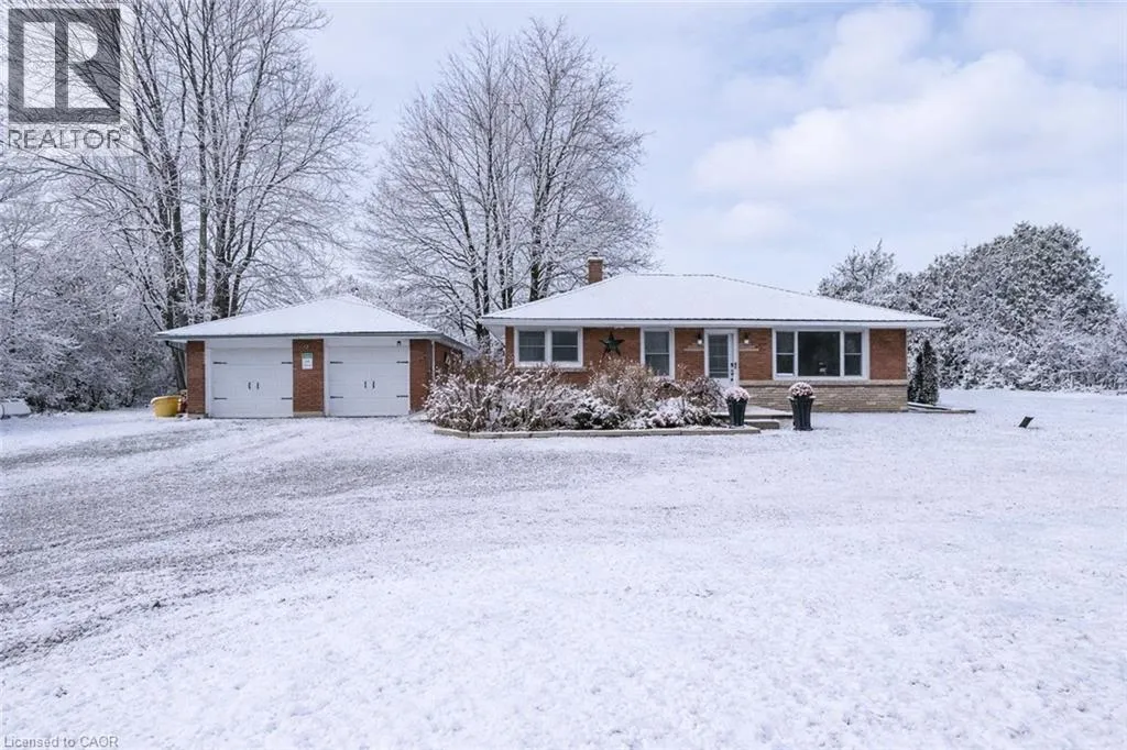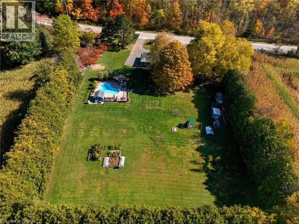 SHOULDICE SIDE ROAD; ACROSS FROM SUDDEN TRACK TRAIL Country properties of this calibre are rarely offered. Welcome to 1822 Spragues Road â a beautifully upgraded red brick bungalow set on 1.56 acre lot. From the moment you arrive, the circular drive, landscaped front yard, and large detached garage create exceptional curb appeal. Step inside to find luxury vinyl plank flooring and recessed lighting throughout the main level, setting the tone for a bright, modern interior. The open-concept living and dining area features a large front-facing window and flows seamlessly into the fully renovated custom kitchen. Designed for both style and function, it showcases leathered quartz countertops, a propane stove, new dishwasher, and a sleek slim rangehood/microwave combination. Three well-sized bedrooms with closets are located on the main floor, along with an updated 4-piece bathroom. The finished basement expands your living space with an oversized bedroom, a 2-piece bathroom (with room to add a shower), and a versatile recreation area ideal for a home office, games room, or family retreat. Ample storage throughout â including coat closets, linen closets, and pantry space â ensures practical day-to-day living. Outdoors, privacy is paramount. Towering cedars frame the property, while the heated in-ground saltwater pool is surrounded by multiple lounging areas â perfect for entertaining, relaxing in the sun, or enjoying evenings beside the fire bowl. For those seeking a touch of country living, the property also features a chicken coop and multiple fruit trees. The location is exceptional: situated on the Ayr school bus route, directly across from Sudden Tract Nature Trail, just 3 minutes to Cambridge, 6 minutes to Ayr, 8 minutes to Paris, and 10 minutes to Highway 401. Major updates include: Furnace & A/C (2020), Attic Insulation (2020), Windows & Doors (2021), Well (2021), Septic (2021), Pool (2021), and more. Full upgrade list available upon request. (id:27476)