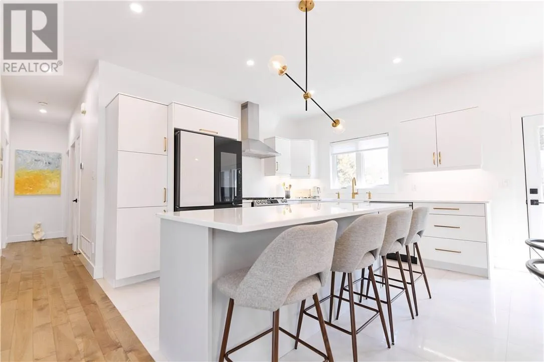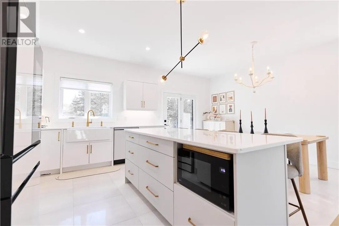 This modern, 3-year-young bungalow in the heart of Azilda offers a perfect mix of comfort, style, and convenience. Located minutes from schools, parks, beaches, trails, and amenities, itâs ideal for families and outdoor lovers alike. Inside, you'll find a bright open-concept layout with 9 ft ceilings, birch hardwood floors, and a stunning kitchen with quartz countertops, custom cabinetry, gas stove, island, and kick-toe dustpan. The dining area opens to a private patio complete with gas bbq hookup âgreat for entertaining. The main floor features 3 bedrooms, including a private primary retreat. Downstairs offers a fully finished lower level with a commercial-grade kitchen, family room, 4th bedroom, and spa-like bathâperfect for an in-law suite or guests. Heated floors in both bathrooms. Bonus features include a double attached garage and custom birch garden beds in the backyard. This home is move-in ready and built for modern living. Book your private tour today! (id:27476)