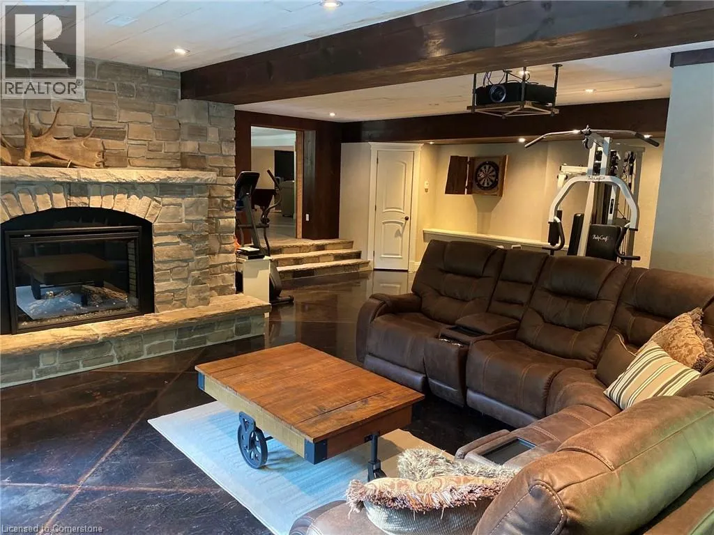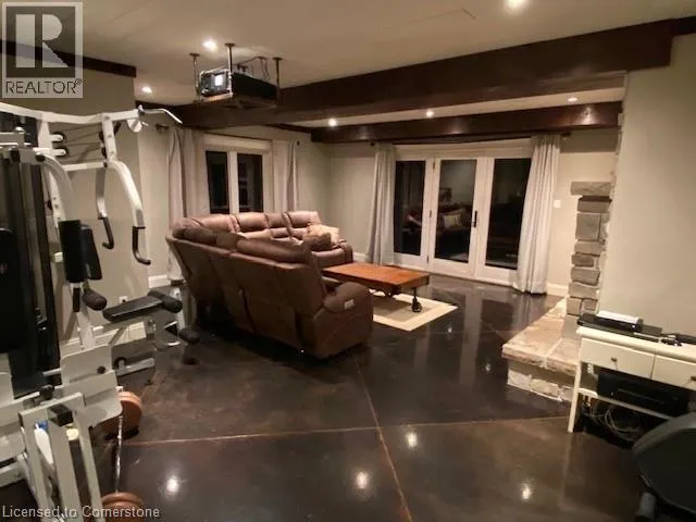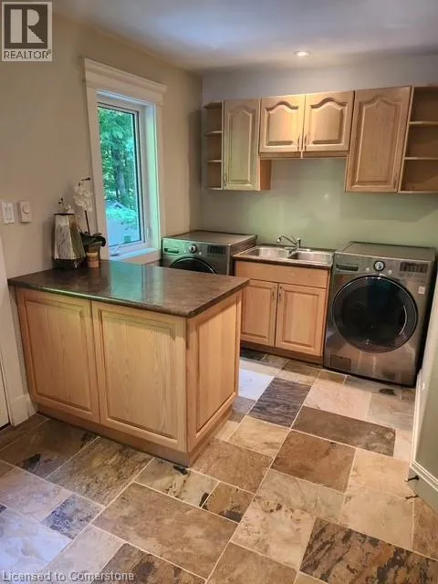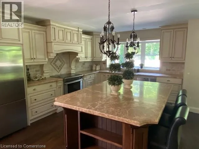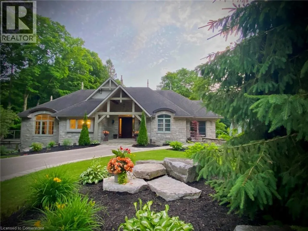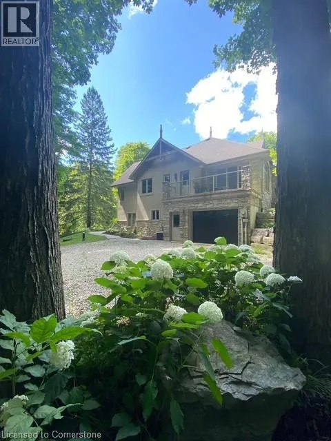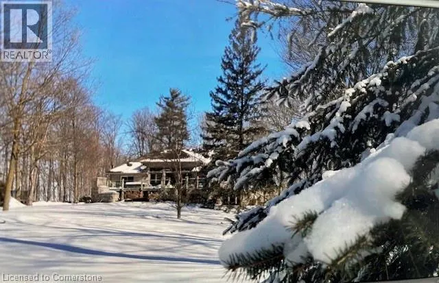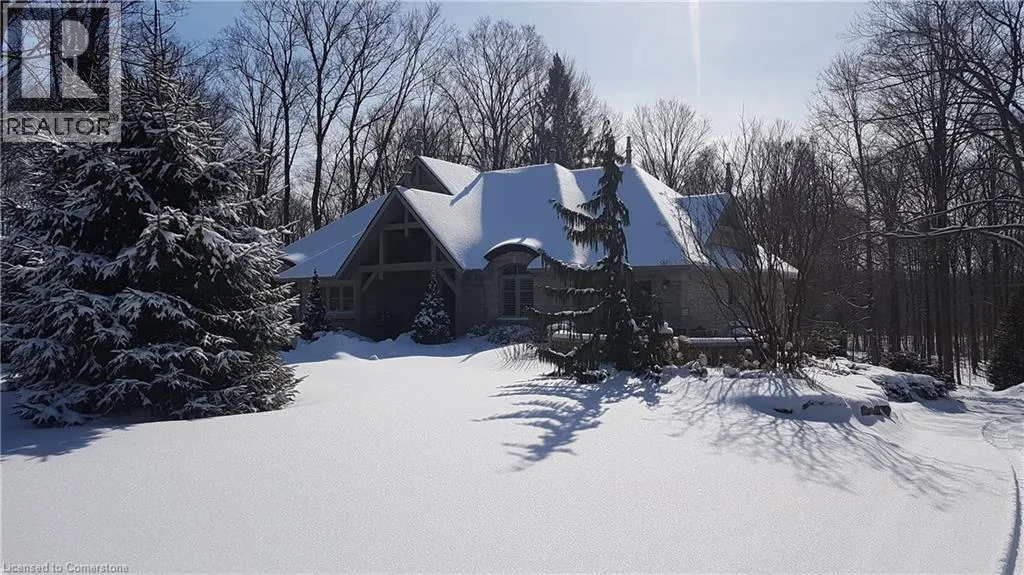 See map. Welcome to 3314 Sandhills Rd. A beautifully renovated in 2007, Perfect mix of Wiarton Limestone/stucco, 3 + 1 bedroom walkout bungalow. Set on 7.21 acres of wooded property, features custom flagstone, aggregate drive, custom maple kitchen, marble countertops, hardwood finishes throughout. 13â ceiling Living Room with floor to ceiling windows custom trimmed, with built in cabinetry accenting the adjacent custom cast limestone fireplace wall. Room to entertain, work and play with 2 concrete patios, 2 raised decks with glass railings. A 4000 sq ft heated shop with 18â ceiling, 4 overhead doors, multi sport court, built in 2021. Bank barn with 3 overhead doors ideal for animals, hobbies or storage. Trails throughout mature hardwood bush for walking, skiing or ate. Home has optional heat of outdoor wood furnace. 8 mins from Costco, Waterloo Boardwalk amenities. 5 mins to Hwy 7&8, schools, 3 Golf North Properties and Wilmot Rec. Complex. 15 mins from 401 and 1 hr. West of GTA. (id:27476)