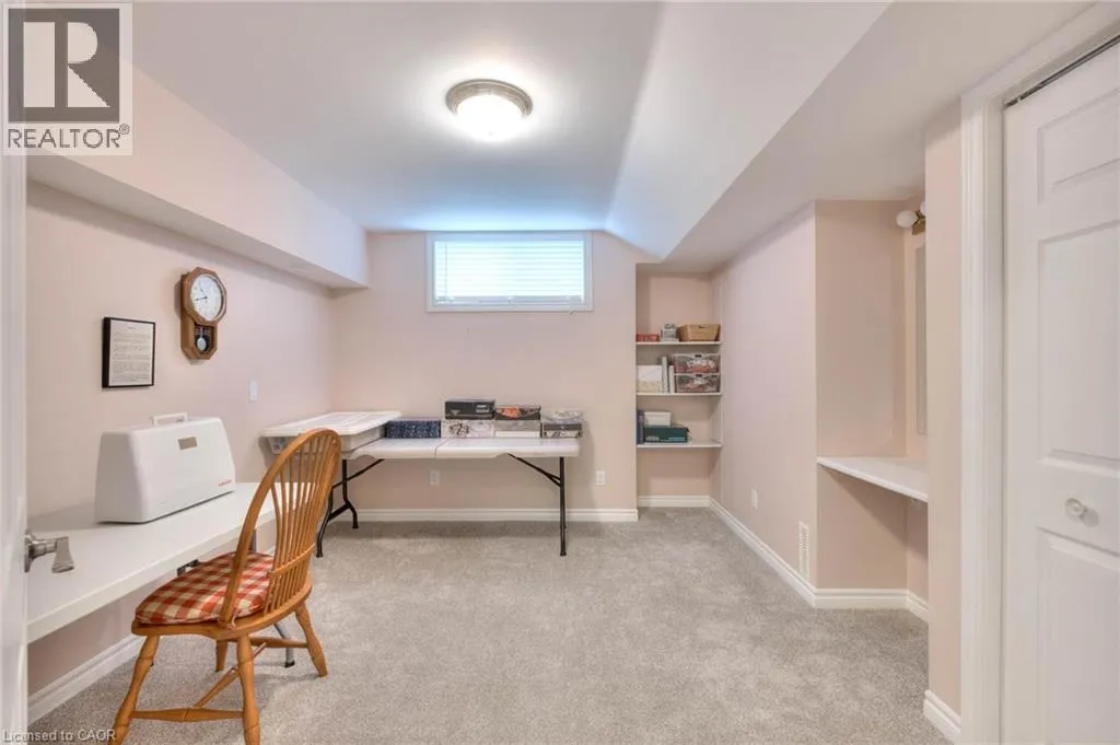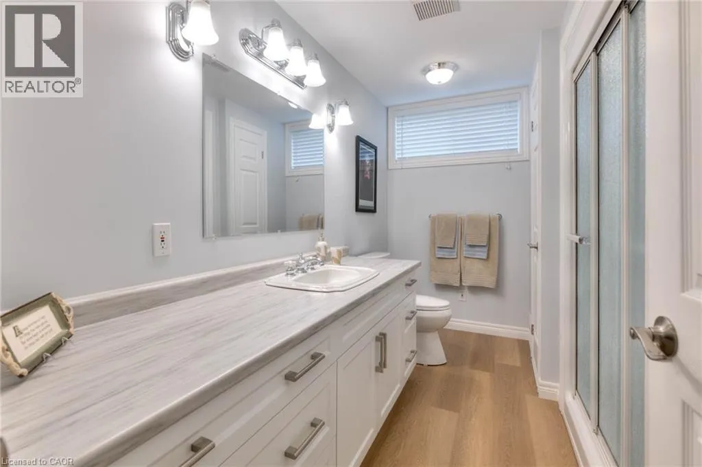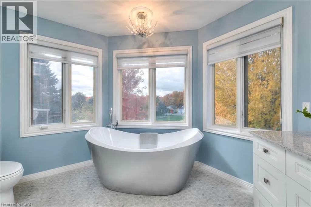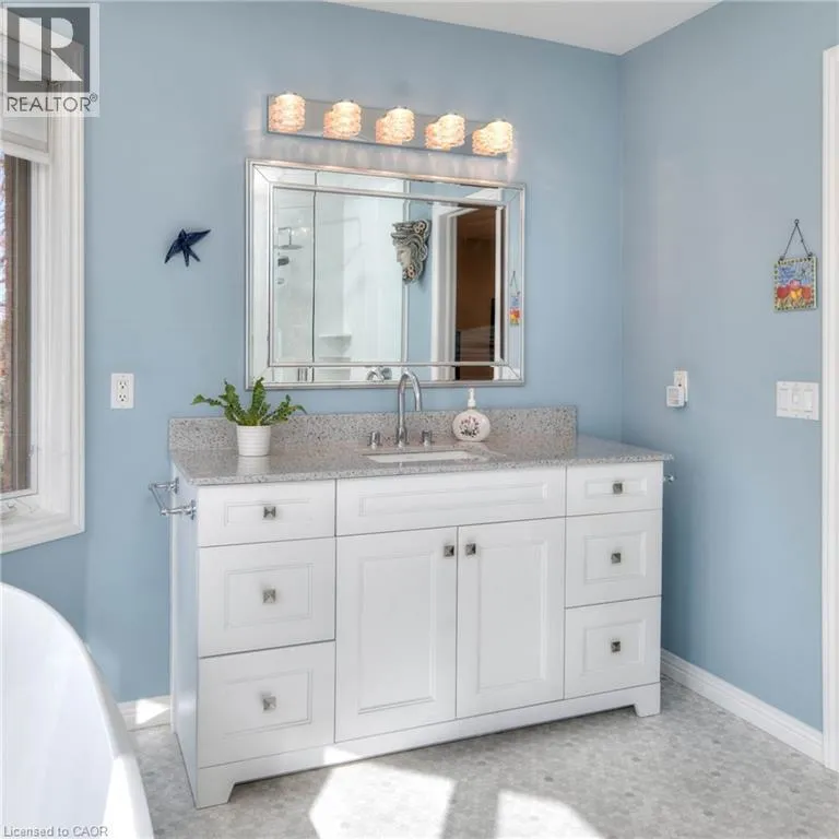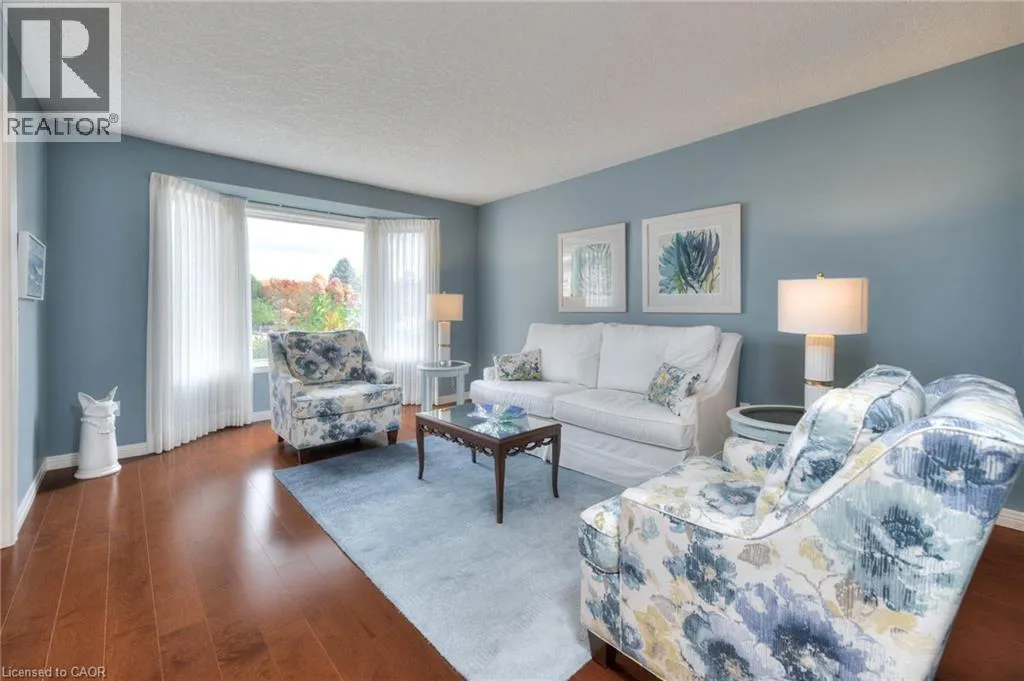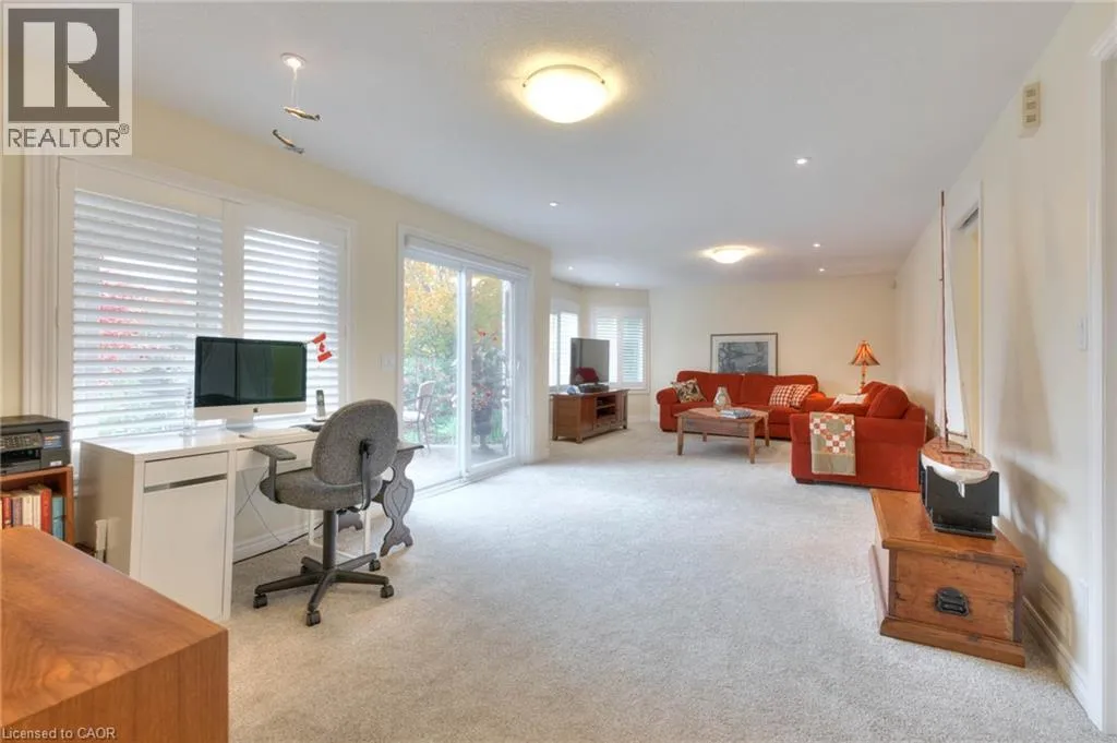 Erb's Road past Foxwood Golf Course, turn left into Foxboro Green, turn left on to Golf Links Drive, turn right on to Maue Court. Welcome to the highly desirable Foxboro Green Adult Lifestyle Community, nestled adjacent to Foxwood Golf Course. This impressive 1,900 sq ft home is situated on one of the communityâs premier lots, set in a serene cul-de-sac and offering a serene view of manicured greenspace. This elegant property boasts an elegant spiral staircase, soaring vaulted ceilings, rich hardwood flooring & exquisite French doors. With over $100,000 invested in updates, the home features tasteful decor and high-quality finishes throughout. The sunlit living room invites relaxation, while the gourmet eat-in kitchen, complete with granite countertops, offers both style and function. Entertain guests in the spacious dining room or unwind in the cozy family room, accentuated by a gas fireplace and direct access to a large deck overlooking the serene greenspace to enjoy your morning coffee or evening sunsets. The principal bedroom is a true retreat, featuring a walk-in closet, updated ensuite bath with a luxurious free-standing tub and captivating view. A second bedroom & modernized 3-piece bath provide ample accommodations for guests. The bright & fully finished walk-out basement level is a standout feature, offering 2 additional bedrooms, a versatile hobby room, a 3 pc bath, and an updated laundry room. The lower level also includes a cold cellar, storage room, and a comfortable sitting room with access to a large patio and a very private backyard. This all-brick home is completed by an oversized double garage. Residents of Foxboro Green enjoy access to a superb recreation center featuring a swimming pool, tennis/ pickleball courts, a library, party room, games room, exercise room & more. Scenic walking trails meander through the community, offering a picturesque backdrop for daily strolls. Located just 10 minutes from Waterloo, Costco, and the Ira Needles Boardwalk, this property offers both tranquility and convenience. Embrace an active and vibrant lifestyle in this exceptional home. (id:27476)