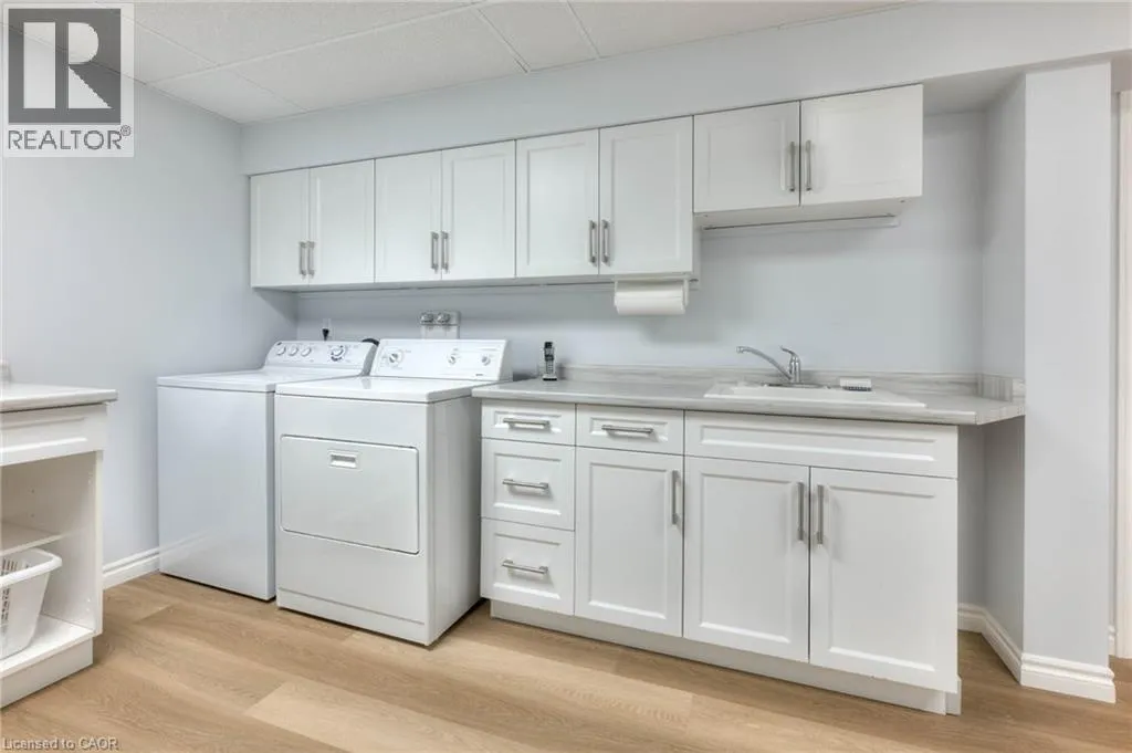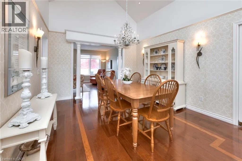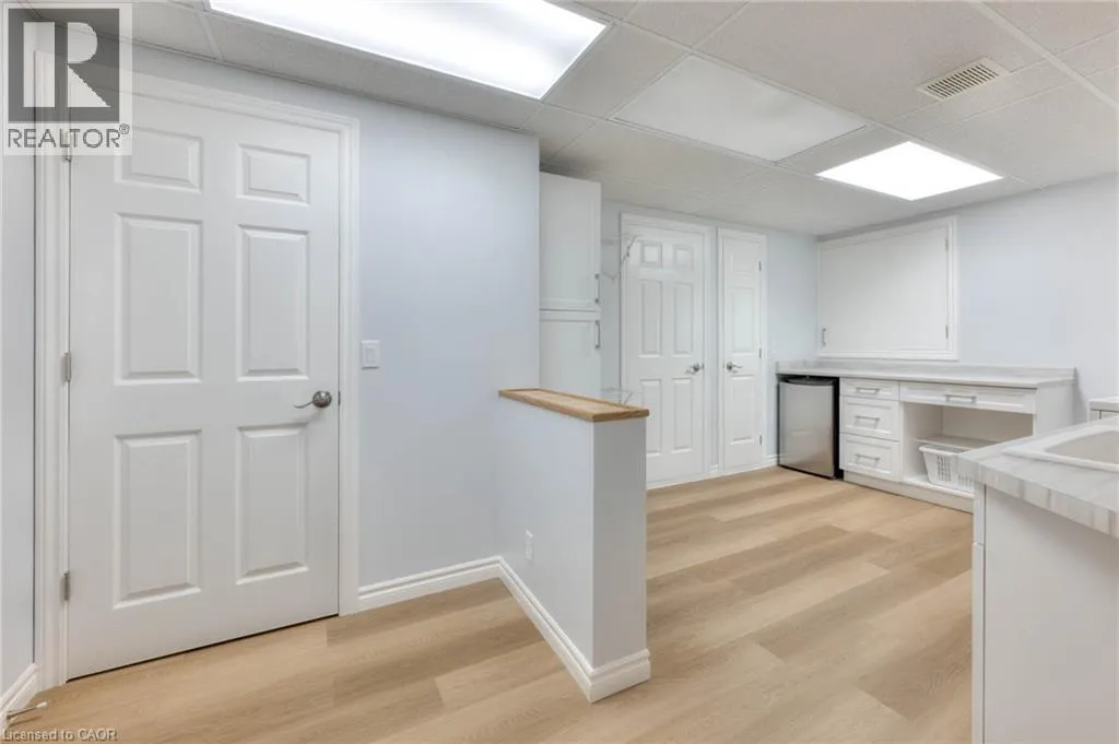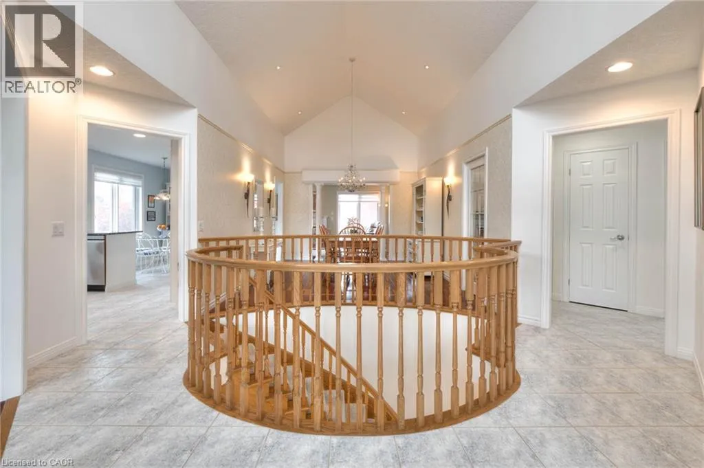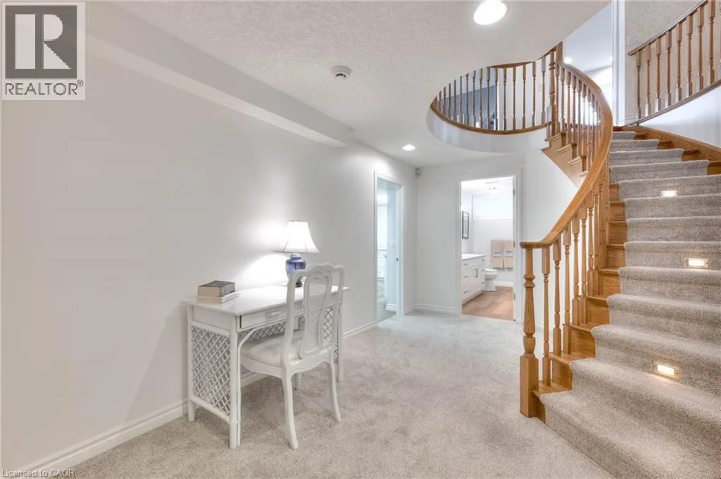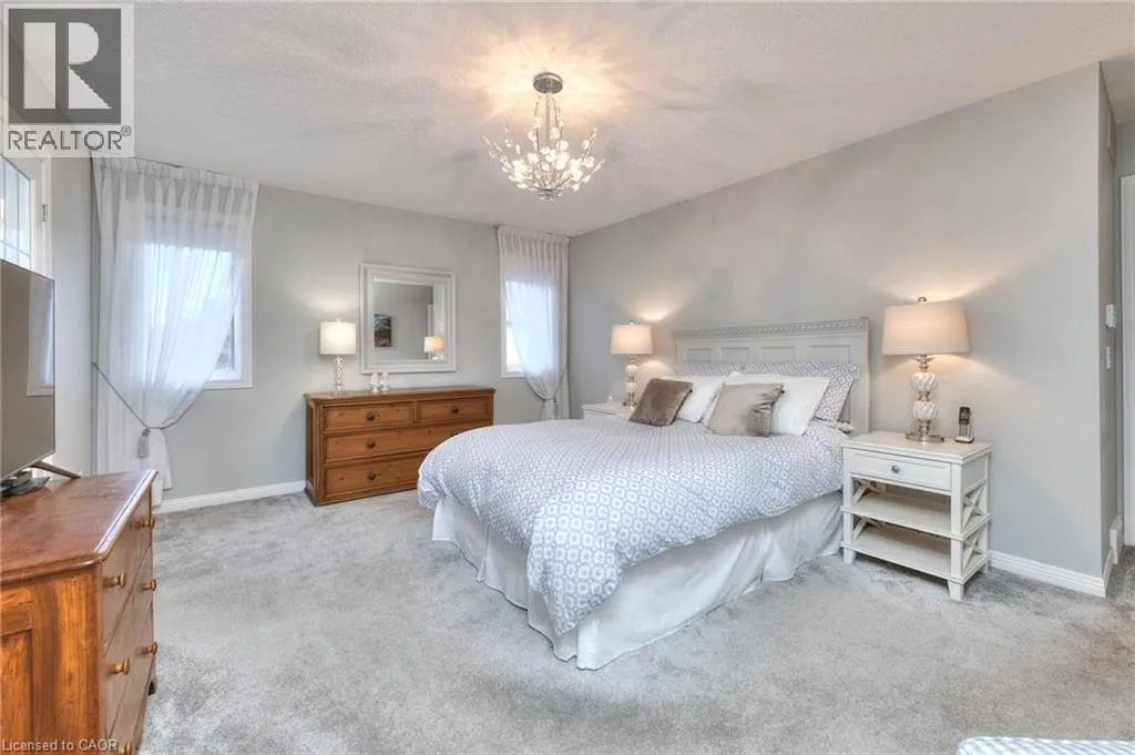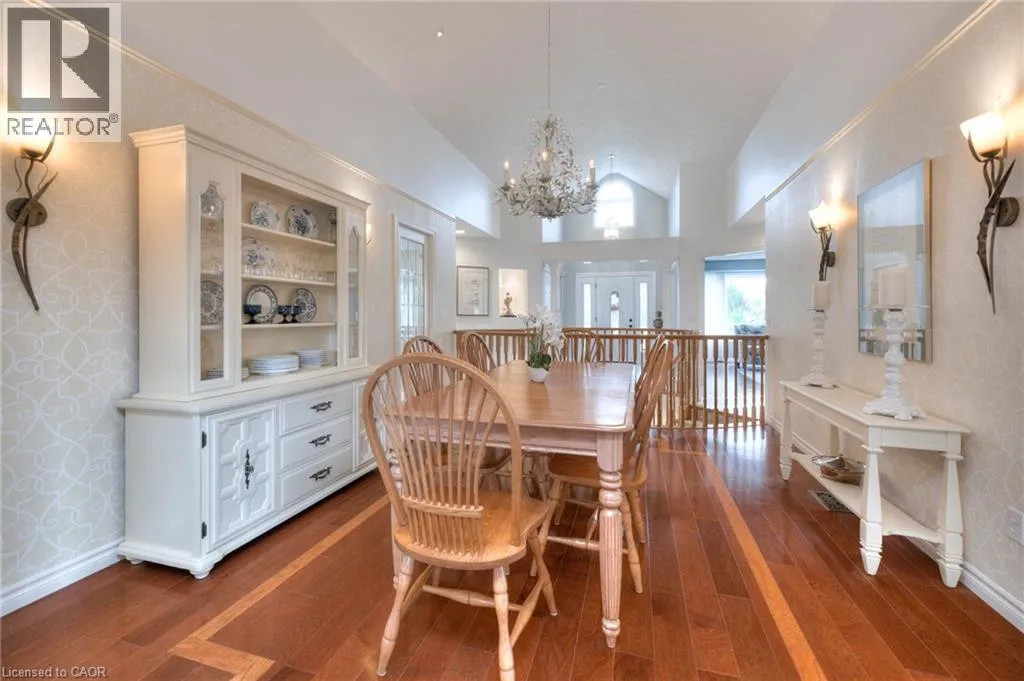 Erb's Road past Foxwood Golf Course, turn left into Foxboro Green, turn left on to Golf Links Drive, turn right on to Maue Court. Welcome to the highly desirable Foxboro Green Adult Lifestyle Community, nestled adjacent to Foxwood Golf Course. This impressive 1,900 sq ft home is situated on one of the communityâs premier lots, set in a serene cul-de-sac and offering a serene view of manicured greenspace. This elegant property boasts an elegant spiral staircase, soaring vaulted ceilings, rich hardwood flooring & exquisite French doors. With over $100,000 invested in updates, the home features tasteful decor and high-quality finishes throughout. The sunlit living room invites relaxation, while the gourmet eat-in kitchen, complete with granite countertops, offers both style and function. Entertain guests in the spacious dining room or unwind in the cozy family room, accentuated by a gas fireplace and direct access to a large deck overlooking the serene greenspace to enjoy your morning coffee or evening sunsets. The principal bedroom is a true retreat, featuring a walk-in closet, updated ensuite bath with a luxurious free-standing tub and captivating view. A second bedroom & modernized 3-piece bath provide ample accommodations for guests. The bright & fully finished walk-out basement level is a standout feature, offering 2 additional bedrooms, a versatile hobby room, a 3 pc bath, and an updated laundry room. The lower level also includes a cold cellar, storage room, and a comfortable sitting room with access to a large patio and a very private backyard. This all-brick home is completed by an oversized double garage. Residents of Foxboro Green enjoy access to a superb recreation center featuring a swimming pool, tennis/ pickleball courts, a library, party room, games room, exercise room & more. Scenic walking trails meander through the community, offering a picturesque backdrop for daily strolls. Located just 10 minutes from Waterloo, Costco, and the Ira Needles Boardwalk, this property offers both tranquility and convenience. Embrace an active and vibrant lifestyle in this exceptional home. (id:27476)