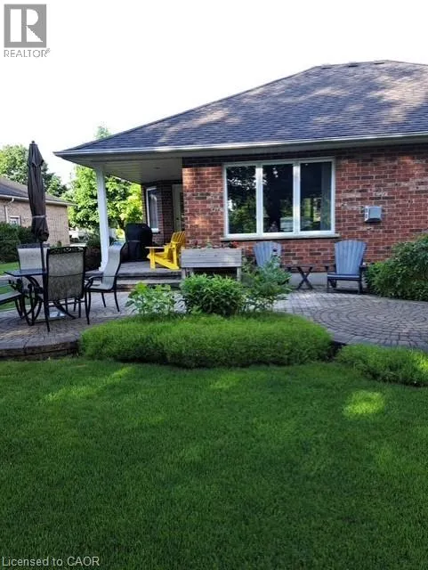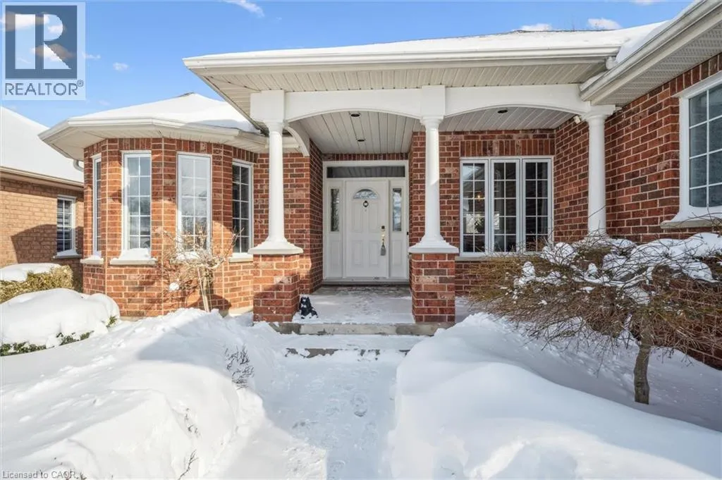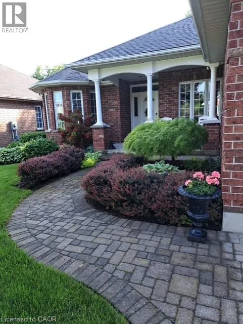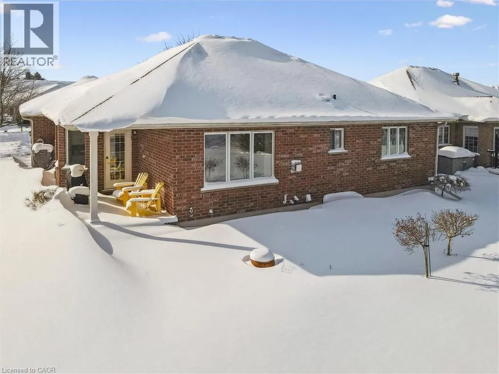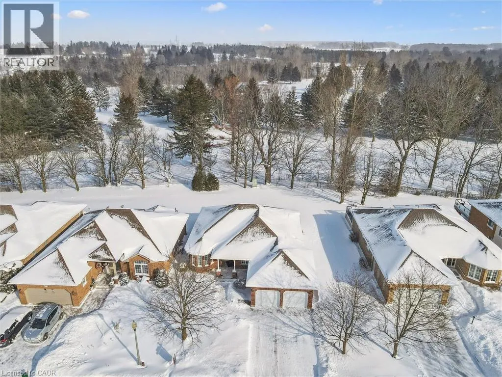 Erb's Road to Foxboro. Drive. Drive past the Foxboro Green Rec Centre and turn left at Golf Links Drive Welcome to Foxboro Green, an exclusive adult lifestyle community just 10 minutes from KitchenerâWaterloo and adjacent to Foxwood Golf Course. This updated all-brick Pine Model bungalow offers over 1,400 sq. ft. of living space with 3 bedrooms, 3 bathrooms, a fully finished basement, and double-car garage. The main level features hardwood flooring throughout, a bright living room with vaulted ceiling, gas fireplace, large windows with golf course view, an updated eat-in kitchen with newer appliances and access to the deck and two-tier brick patio, main-floor laundry and a formal dining room. The spacious primary bedroom includes a walk-in closet and updated 3-piece ensuite with walk-in shower, plus a second bedroom and updated 4-piece bath. The finished lower level offers a cozy rec room with gas fireplace, 3-piece bath, flex space ideal for home office, work-out area or hobby room. An additional bedroom makes this level perfect for visiting family or friends. You'll also appreciate the cold cellar, workshop area and ample storage. As a resident of Foxboro Green, you'll enjoy access to the community Recreation Centre offering an impressive array of amenities including an indoor pool, sauna, whirlpool, gym, tennis/pickleball, party room, library and more. The community also features 4.5 km of scenic walking trails enhancing the peaceful and active lifestyle Foxboro Green is known for. A wonderful opportunity for active, carefree living! (id:27476)