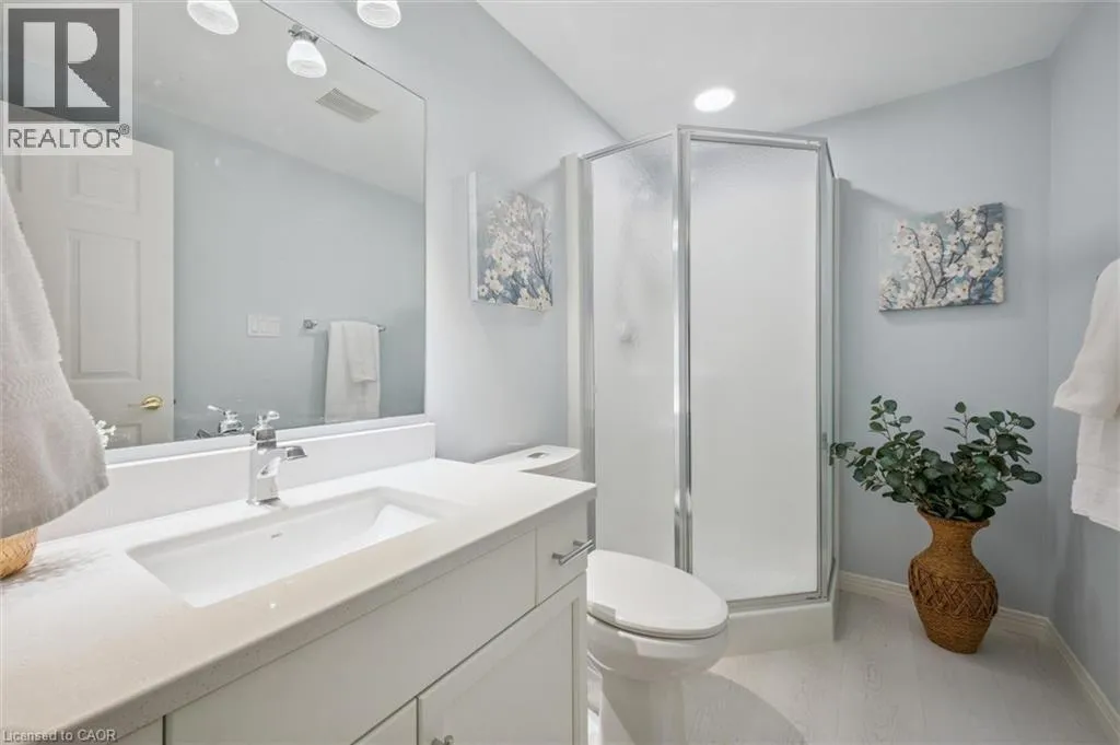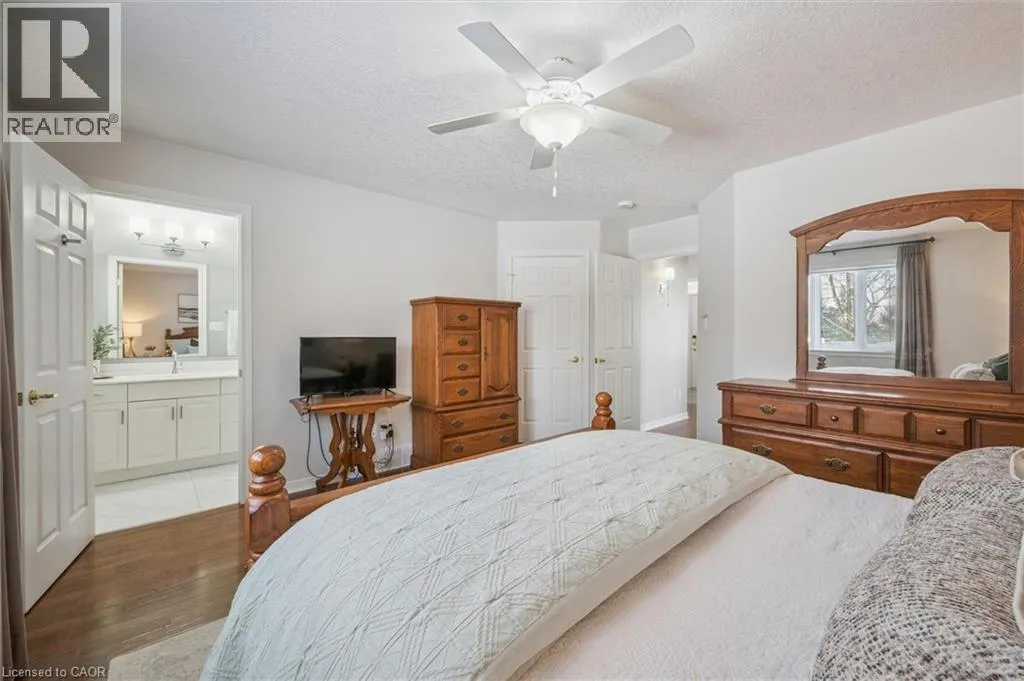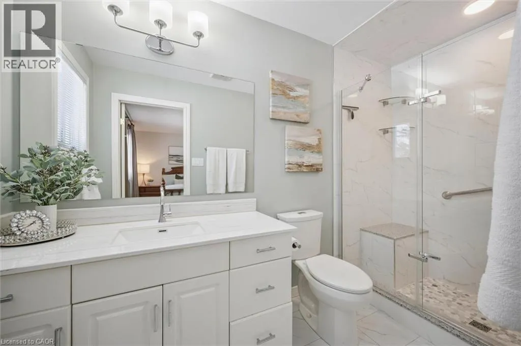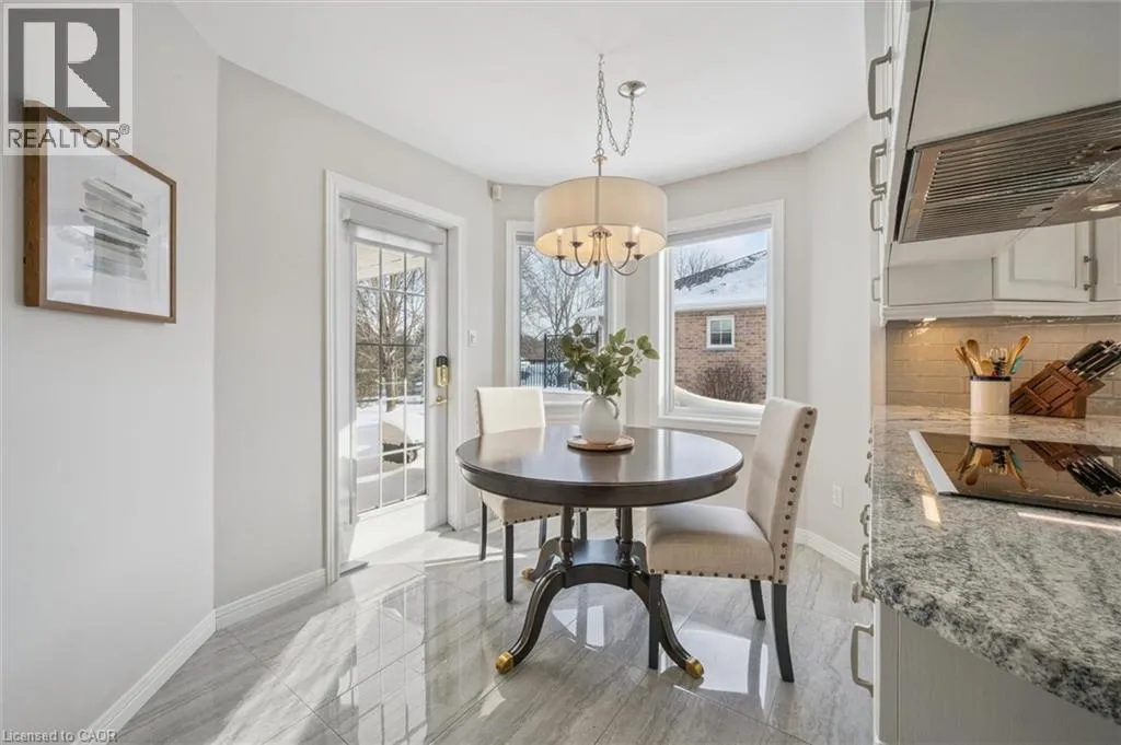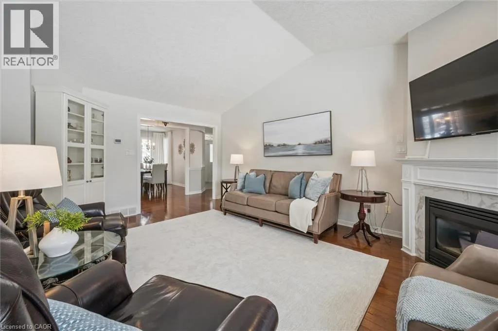 Erb's Road to Foxboro. Drive. Drive past the Foxboro Green Rec Centre and turn left at Golf Links Drive Welcome to Foxboro Green, an exclusive adult lifestyle community just 10 minutes from KitchenerâWaterloo and adjacent to Foxwood Golf Course. This updated all-brick Pine Model bungalow offers over 1,400 sq. ft. of living space with 3 bedrooms, 3 bathrooms, a fully finished basement, and double-car garage. The main level features hardwood flooring throughout, a bright living room with vaulted ceiling, gas fireplace, large windows with golf course view, an updated eat-in kitchen with newer appliances and access to the deck and two-tier brick patio, main-floor laundry and a formal dining room. The spacious primary bedroom includes a walk-in closet and updated 3-piece ensuite with walk-in shower, plus a second bedroom and updated 4-piece bath. The finished lower level offers a cozy rec room with gas fireplace, 3-piece bath, flex space ideal for home office, work-out area or hobby room. An additional bedroom makes this level perfect for visiting family or friends. You'll also appreciate the cold cellar, workshop area and ample storage. As a resident of Foxboro Green, you'll enjoy access to the community Recreation Centre offering an impressive array of amenities including an indoor pool, sauna, whirlpool, gym, tennis/pickleball, party room, library and more. The community also features 4.5 km of scenic walking trails enhancing the peaceful and active lifestyle Foxboro Green is known for. A wonderful opportunity for active, carefree living! (id:27476)
