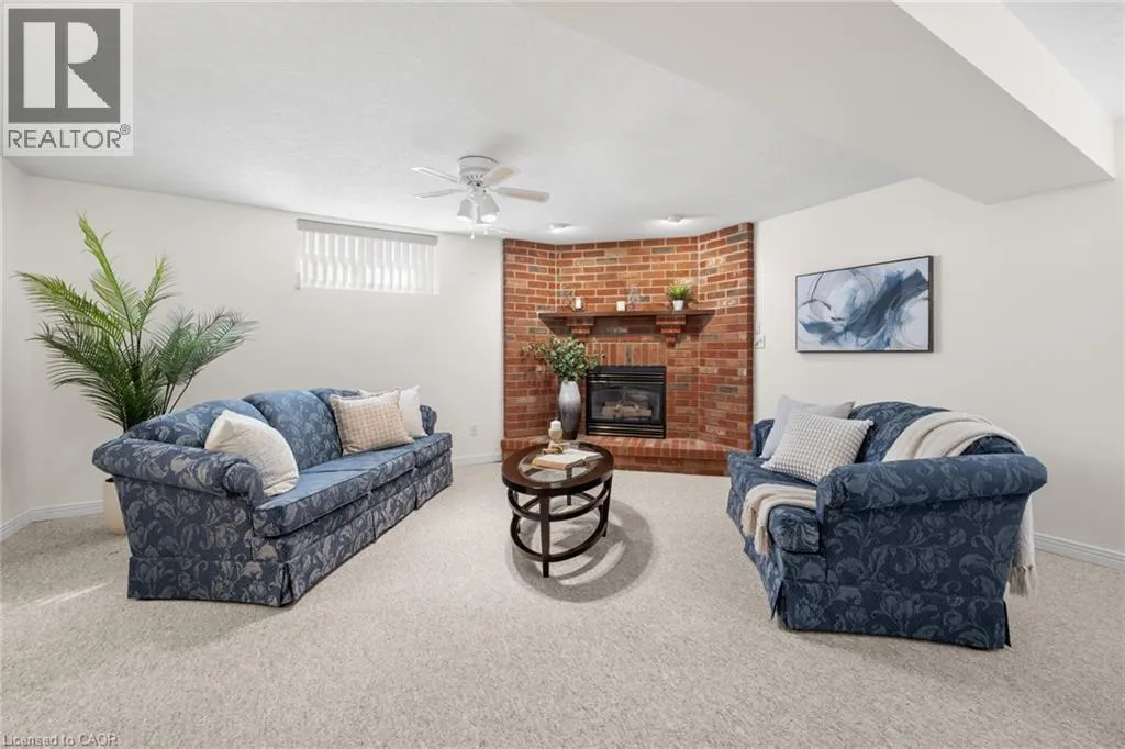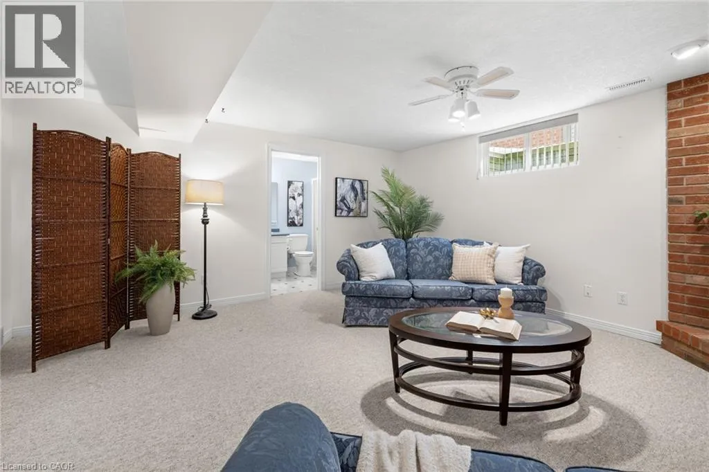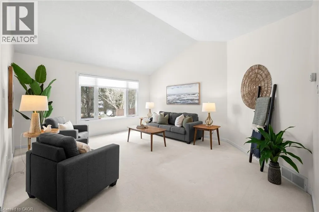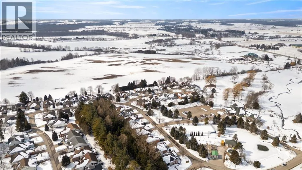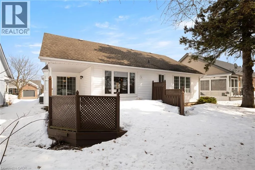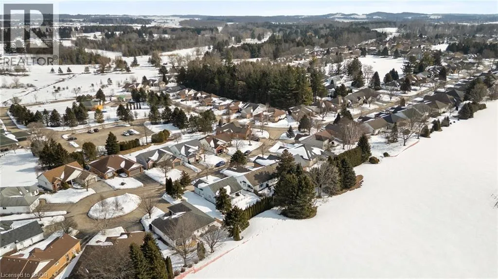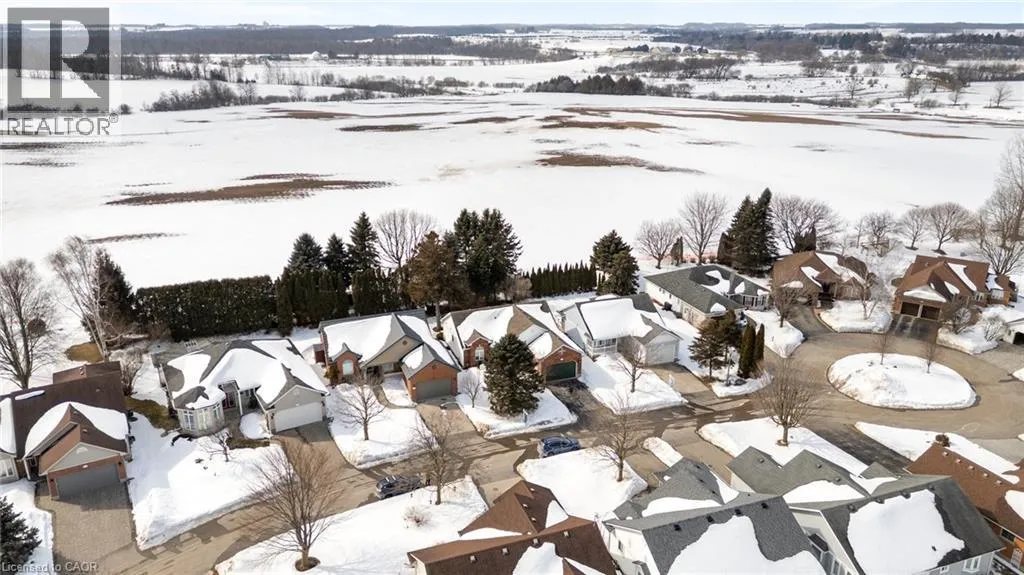 Erb's Road past Foxwood Golf Course - turn left into Foxboro Green, drive past the FG Recreation Centre & turn right on to Lakefield Court If youâre seeking an exclusive adult lifestyle community, Foxboro Green may be the perfect fit. Ideally located just 10 minutes from Kitchener-Waterloo and adjacent to Foxwood Golf Course, this lovely, well-maintained 1,300+ sq. ft. bungalow (Pine Model) offers 2 bedrooms, 3 bathrooms, a partially finished basement, and a 1.5-car garage. The inviting foyer overlooks a spacious living room with vaulted ceilings and a large picture window showcasing serene views of the private backyard. The main level features a separate dining room, convenient main-floor laundry, and a bright eat-in kitchen complete with quartz countertops, California shutters, and sliding doors leading to a deck overlooking the peaceful yard. Also on the main floor is a generous primary bedroom with walk-in closet and 3-piece ensuite, a second bedroom, and a 3-piece main bath. The lower level provides a cozy finished rec room with gas fireplace, an additional 3-piece bathroom, and ample storage/utility space. Residents of Foxboro Green enjoy exceptional amenities at the community Recreation Centre, including an indoor pool, sauna, whirlpool, tennis and pickleball courts, gym, party room, library, and more, along with 4.5 km of scenic walking trails throughout the community. Embrace an active, maintenance-friendly lifestyle â book your showing today. (id:27476)