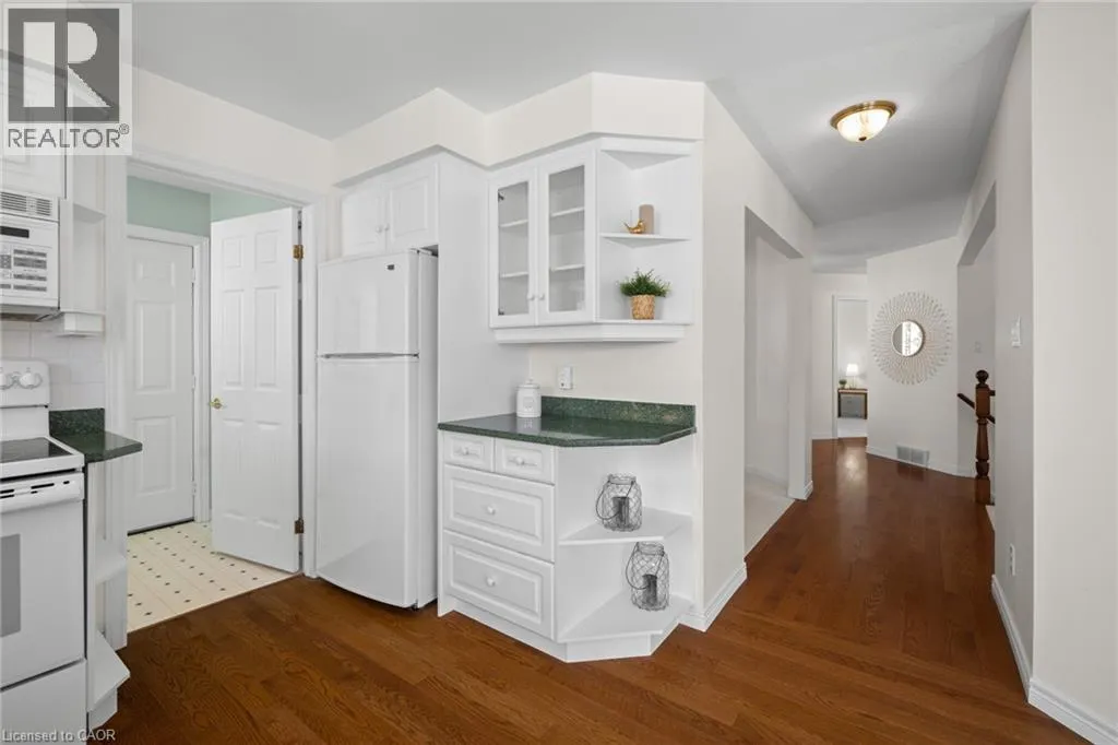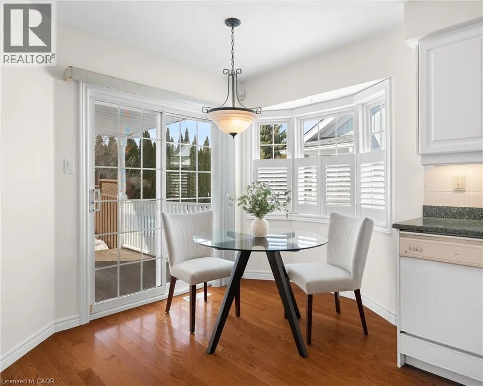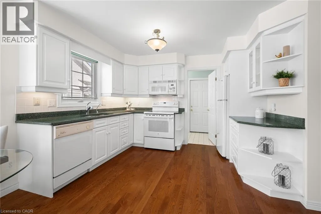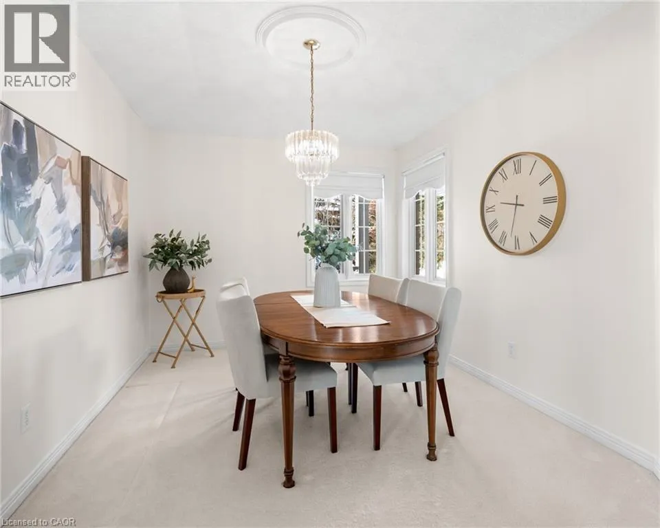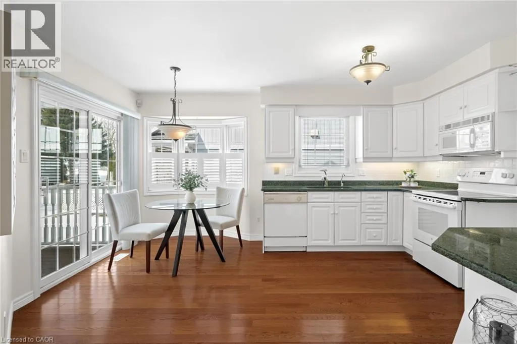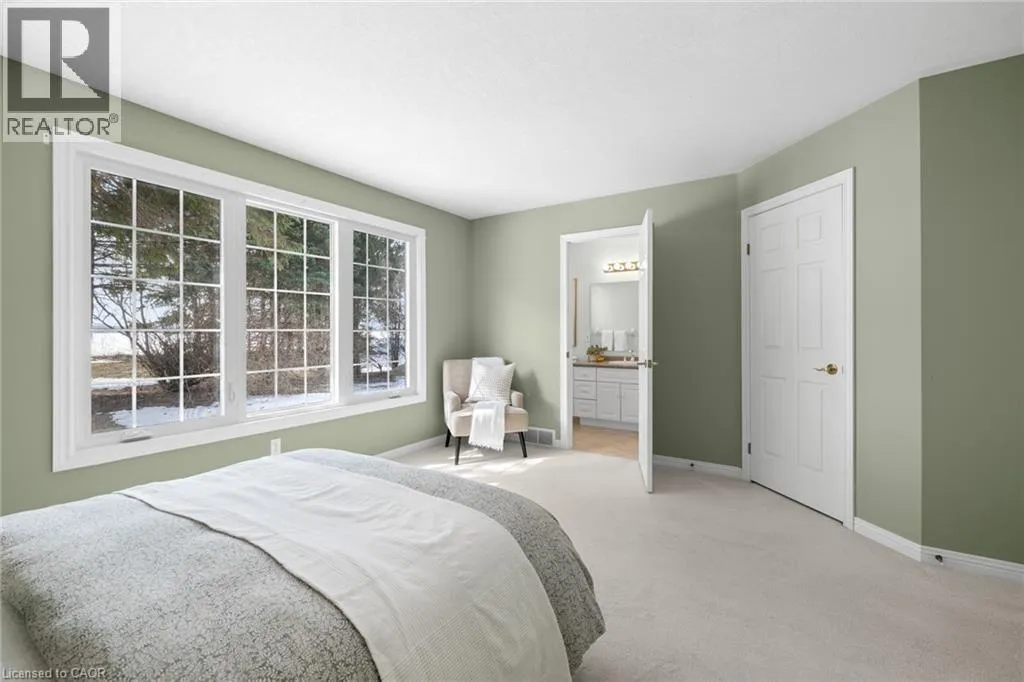 Erb's Road past Foxwood Golf Course - turn left into Foxboro Green, drive past the FG Recreation Centre & turn right on to Lakefield Court If youâre seeking an exclusive adult lifestyle community, Foxboro Green may be the perfect fit. Ideally located just 10 minutes from Kitchener-Waterloo and adjacent to Foxwood Golf Course, this lovely, well-maintained 1,300+ sq. ft. bungalow (Pine Model) offers 2 bedrooms, 3 bathrooms, a partially finished basement, and a 1.5-car garage. The inviting foyer overlooks a spacious living room with vaulted ceilings and a large picture window showcasing serene views of the private backyard. The main level features a separate dining room, convenient main-floor laundry, and a bright eat-in kitchen complete with quartz countertops, California shutters, and sliding doors leading to a deck overlooking the peaceful yard. Also on the main floor is a generous primary bedroom with walk-in closet and 3-piece ensuite, a second bedroom, and a 3-piece main bath. The lower level provides a cozy finished rec room with gas fireplace, an additional 3-piece bathroom, and ample storage/utility space. Residents of Foxboro Green enjoy exceptional amenities at the community Recreation Centre, including an indoor pool, sauna, whirlpool, tennis and pickleball courts, gym, party room, library, and more, along with 4.5 km of scenic walking trails throughout the community. Embrace an active, maintenance-friendly lifestyle â book your showing today. (id:27476)