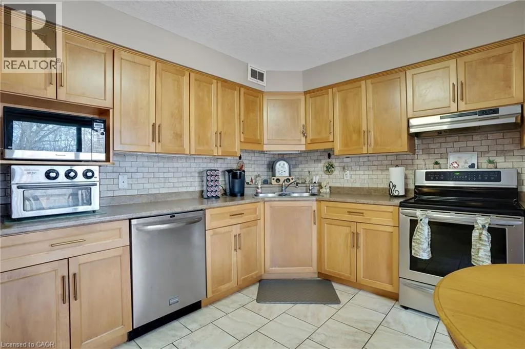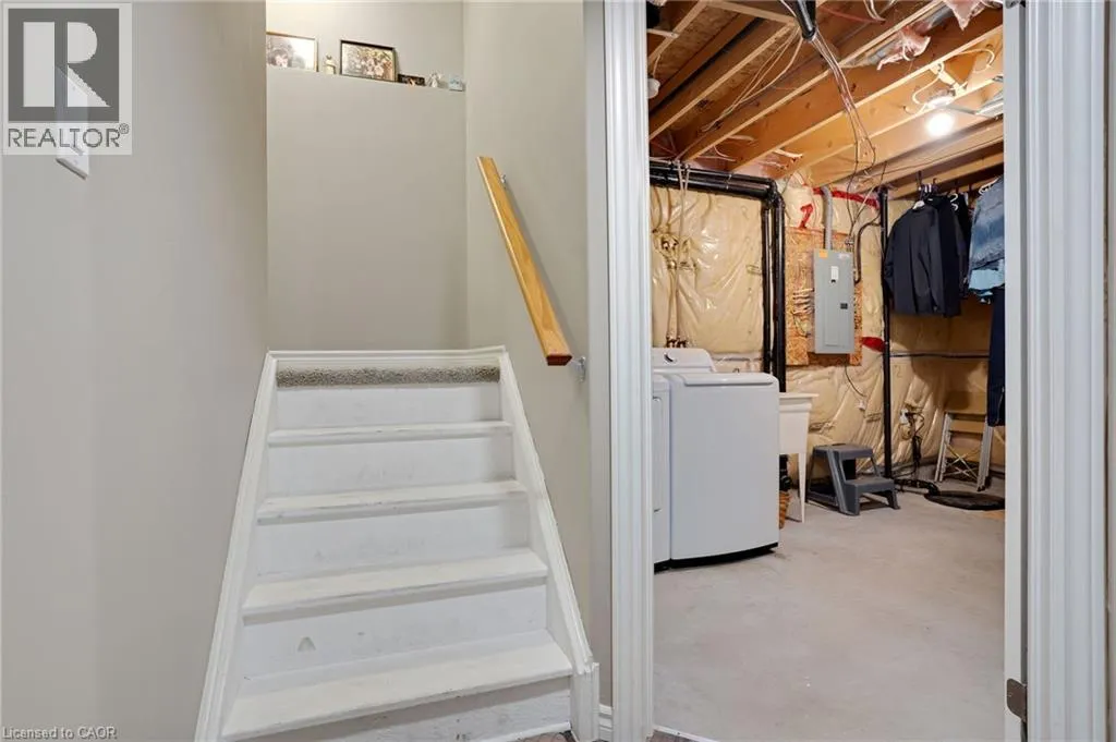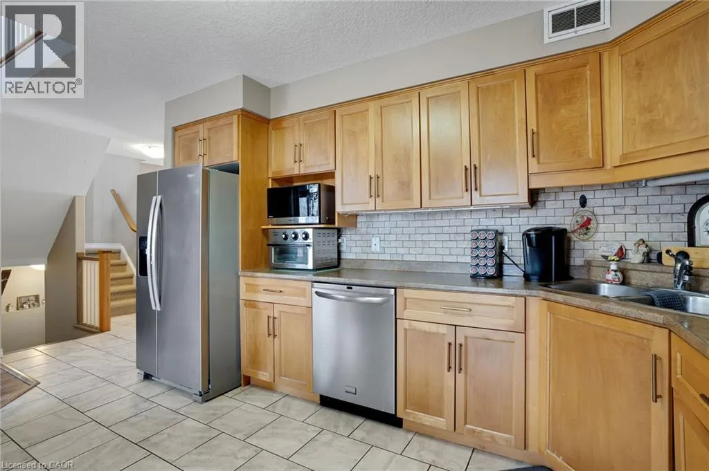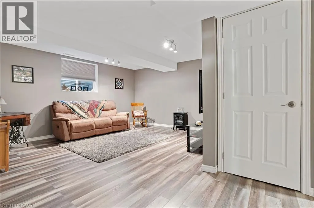 Across from Sir Adam Beck Community Park Welcome to 4-214 Snyderâs Road East in the charming community of Baden- a rarely available semi-detached condo backing onto peaceful greenspace with no rear neighbours. This 3-bedroom, 2-bathroom home offers a bright and inviting layout designed for comfortable everyday living. The main floor features a spacious open-concept design with a large eat-in kitchen overlooking the great room, creating the perfect space for entertaining or spending time with family. A convenient 2-piece powder room and access to your 2 car garage completes the main level. Step outside from the kitchen to your covered deck, where you can relax while enjoying the privacy and scenic country views behind the home. Upstairs youâll find three generously sized bedrooms, with a unique loft-style view overlooking the great room below, adding to the homeâs airy and open feel. The finished basement extends your living space and can easily accommodate a recreation room, home office, gym, or play area- whatever suits your lifestyle. Additional highlights include a double car garage, quality appliances included, and incredibly low condo fees. Located just minutes from Kitchener-Waterloo, great schools, trails, and everyday amenities, this home offers the perfect blend of small-town charm and convenient city access. Homes in this desirable community rarely come to market- donât miss your opportunity to call it home. (id:27476)