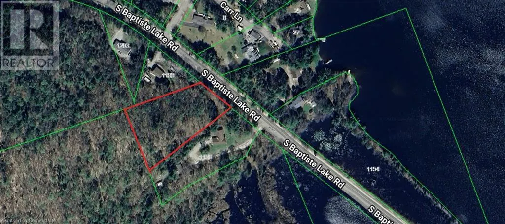 HWY 62 TO SOUTH BAPTISTE RD- SIGN ON PROPERTY 2.09 ACRES! BUILD YOUR COTTAGE COUNTRY DREAM ON THIS 2.09 ACRES OF PICTURESQUE TREED LAND, ONLY STEPS TO SOUTH BAPTISTE LAKE. This is the one you've been waiting for, imagine a 2 Min stroll to South Baptiste Lake from this pristine tree covered lot with nearby public water access. Nestled on South Baptist Lake Road among whispering Bitch, Pine and Maple trees, this ready to build parcel offers the ideal spot to create your perfect cozy cottage in the woods all within easy reach of modern comforts. A quick 7 MIN drive to all the amenities in Bancroft. Enjoy year-round access on the municipally maintained road. Electricity available on public road. Motivated Seller. The agency does not make any representations regarding permitted uses or future development potential. PROPERTY IS AN IRREGULAR SHAPE RECTANGLE. 172.17 FT FRONTAGE 296.78 FT WIDTH ACROSS THE REAR PROPERTY LINE, 460.60 FT DEPTH OF SOUTH PROPERTY LINE, 354.34 FT DEPTH OF NORTH PROPERTY LINE. (id:27476)