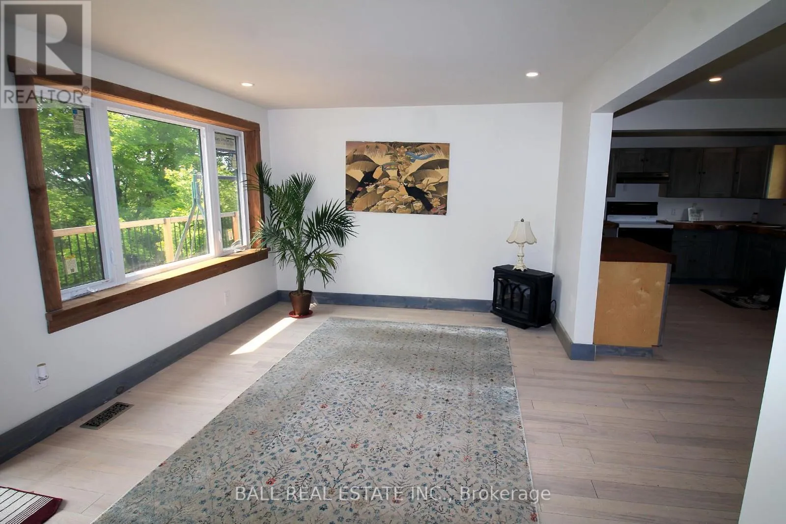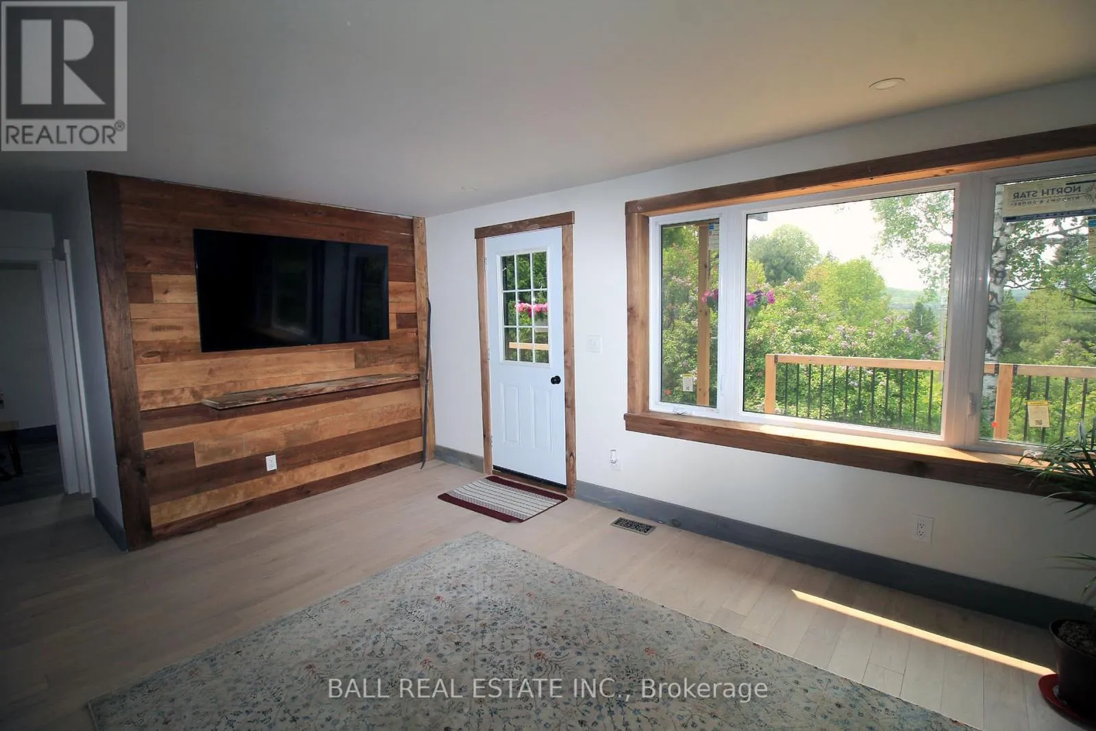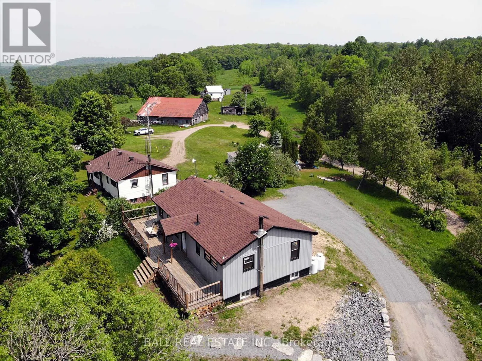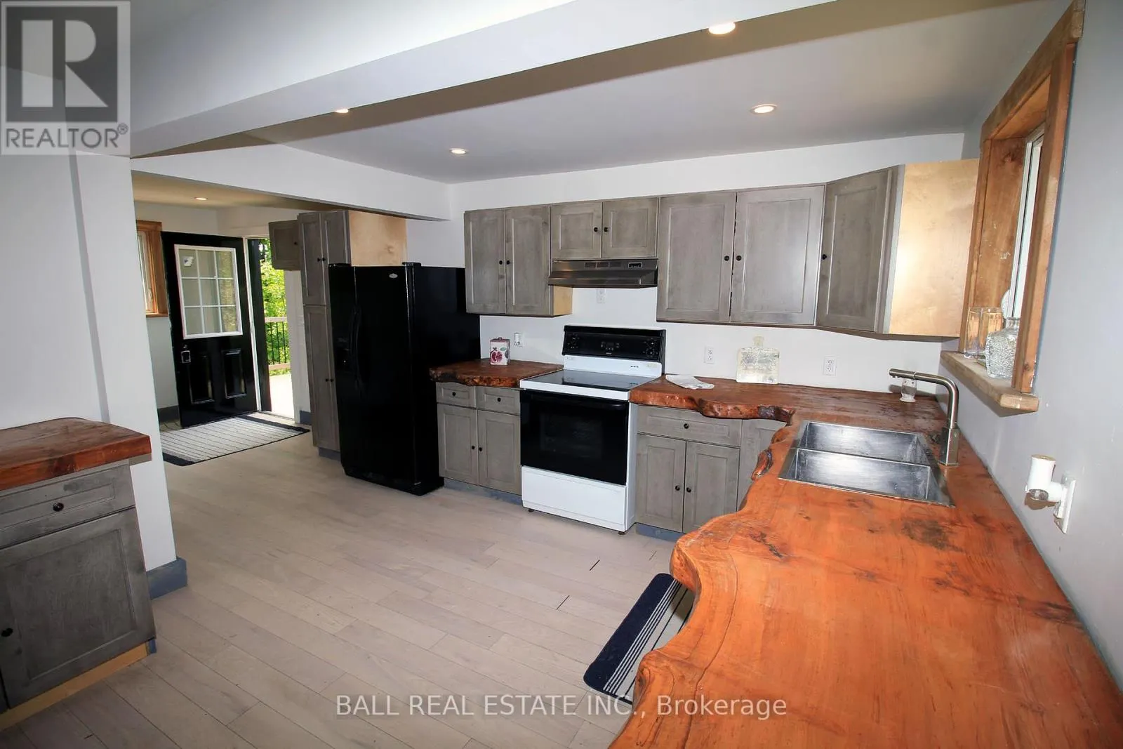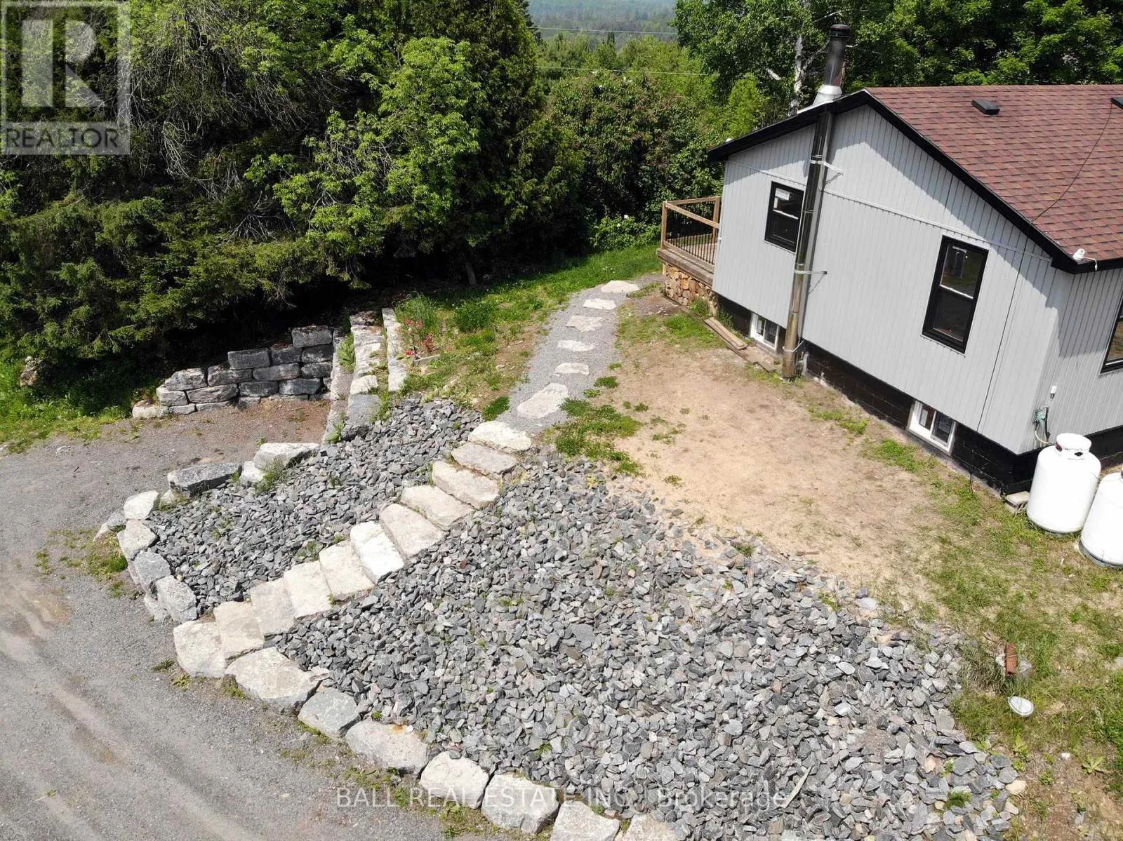 Cross Streets: Eagles Nest Cres & Moore Lane. ** Directions: Hwy 62N to Eagles Nest Cres. to Moore Lane. In town and affordable. Exceptional value in this recently renovated 2 bedroom home in a quiet and peaceful setting, overlooking the hills surrounding the town. Many features and upgrades include new windows throughout, new kitchen, featuring unique live edge wood counters and attractive cupboards. A very private 8'x42' deck across the entire front wraps around to the side entrance, great for sunning and entertaining, on a beautifully landscaped lot with Armour Stone steps and retaining walls. Other recent upgrades include vinyl siding, aluminum soffit and fascia, lighting, drywall and bathroom fixtures. Forced air propane heat and an air tight wood stove in the basement for auxiliary heat. A great starter home or for those wishing to downsize! (id:27476)