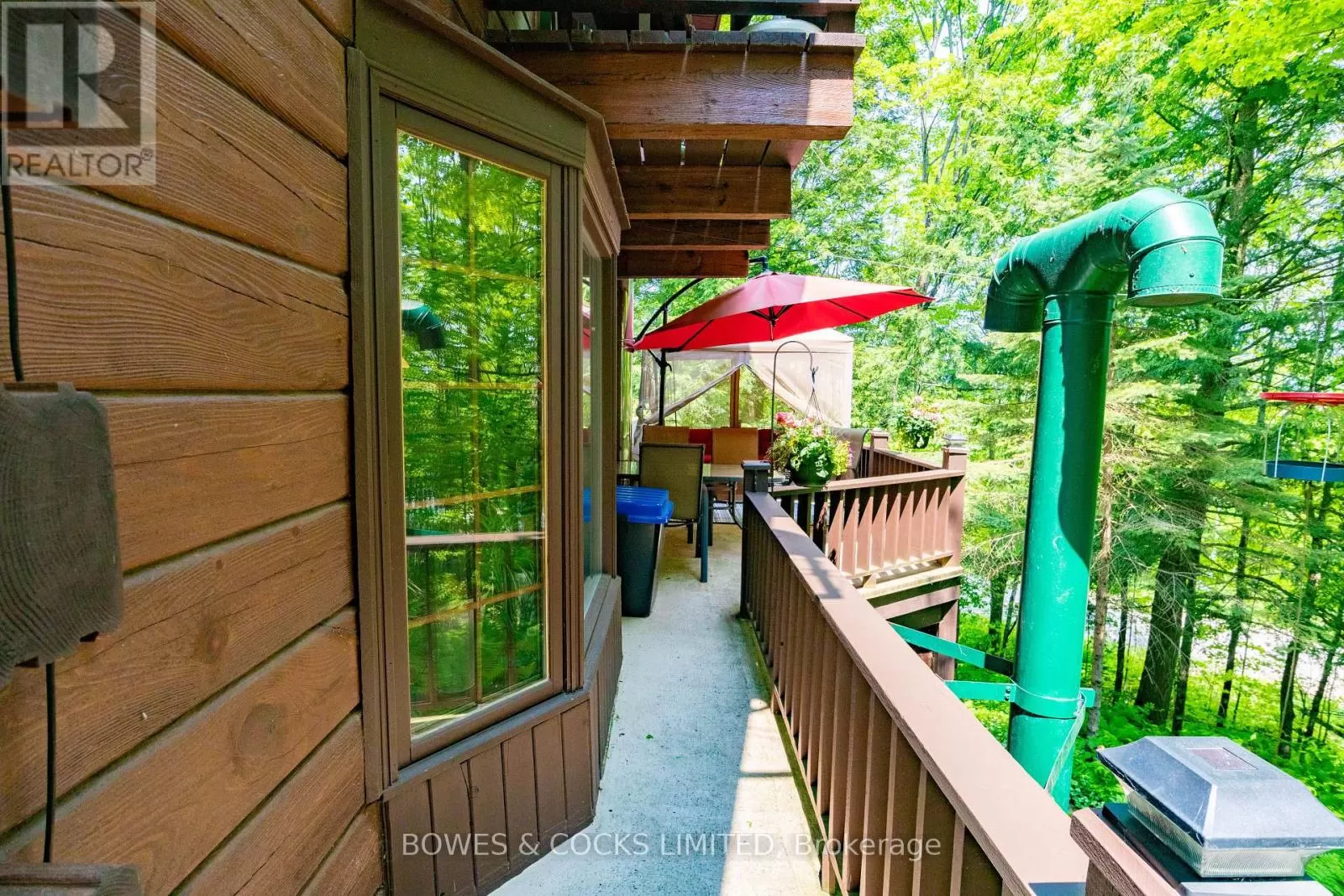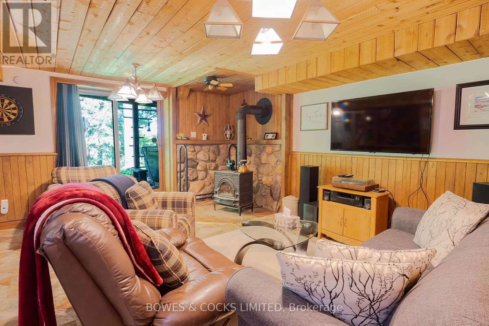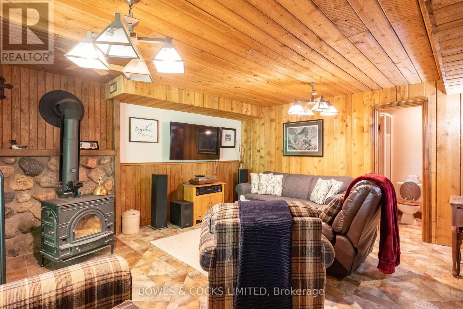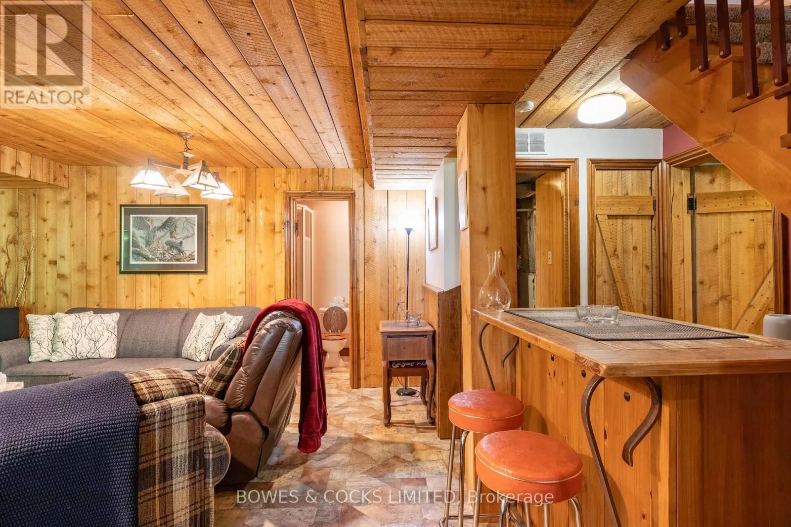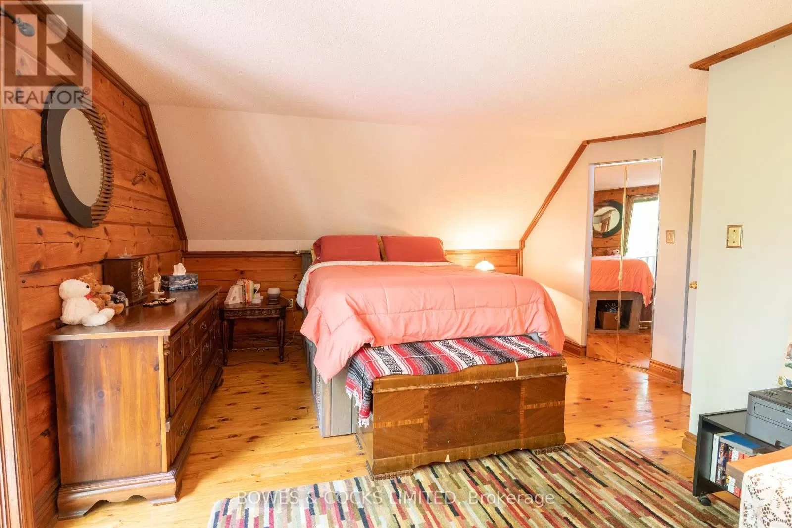 Chemaushgon Rd. to Forest Hill Dr. to Ridge Rd. Nestled on a quiet cul-de-sac just five minutes from downtown Bancroft, this custom-built log home offers a rare combination of rustic charm, modern comfort, and everyday convenience. Surrounded by beautifully landscaped, tree-lined grounds with natural stone accents, this two-storey home features three plus one bedrooms and three bathrooms, making it ideal for families or anyone seeking a tranquil escape with town amenities close at hand. Step inside the spacious main level where a large eat-in kitchen awaits, complete with stainless steel appliances, generous cupboard space, and a walkout to a wraparound deck that overlooks the peaceful, private property. A cozy sitting area, a practical mud and laundry room, and a versatile den or home office complete the main floor, creating a layout that's both functional and inviting. Upstairs, the serene primary suite features a four-piece ensuite, walk-in closet, and a walkout to a Juliette balcony perfect for quiet mornings with a view. The fully finished lower level offers a warm rec room with a woodstove, a workout room or fourth bedroom, a three-piece bathroom, and plenty of storage and utility space. The home is equipped with a forced air electric furnace, HVAC system, steel roof, heated eavestroughs, and a generator hookup to keep you comfortable year-round. A standout feature is the spacious two-storey detached garage and carport with hydro, easily accessed by a double driveway that provides separate access to both the upper and lower levels, offering ample parking and flexible use for vehicles, storage, or workshop space. With municipal services and direct access to the Heritage Trail from your driveway, this property is ideal for nature lovers and outdoor enthusiasts. You're also just minutes away from schools, shopping, golf, lakes, provincial parks, and a variety of trails. (id:27476)