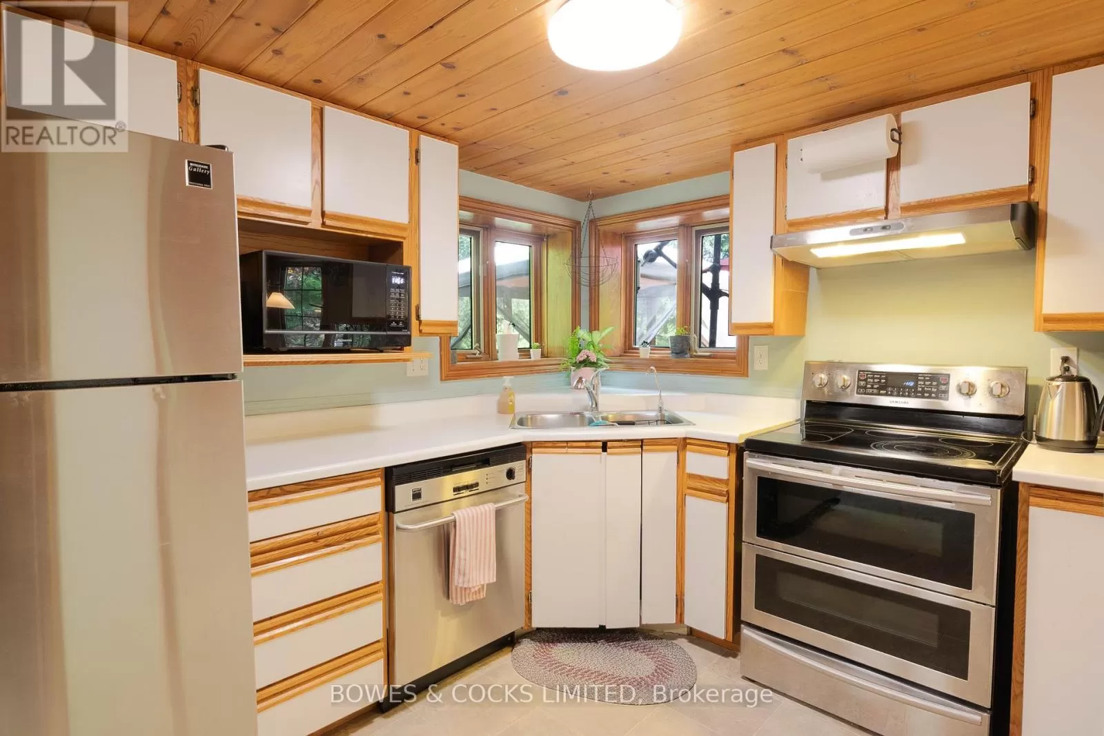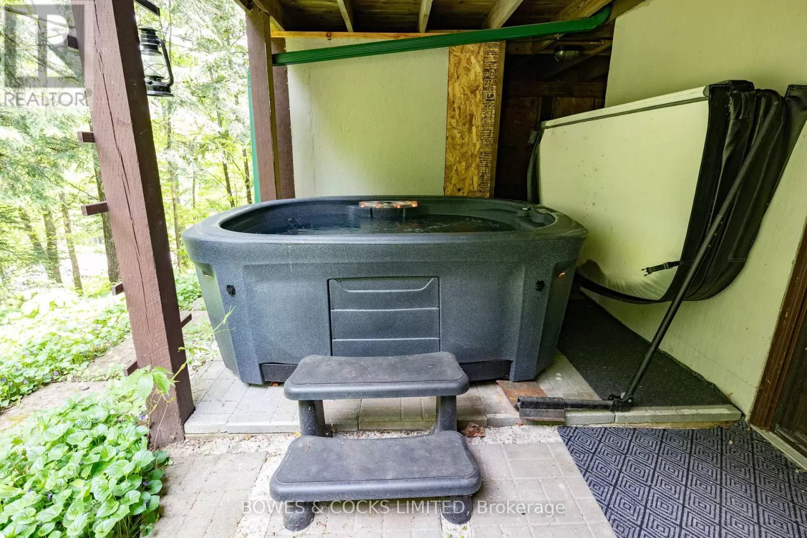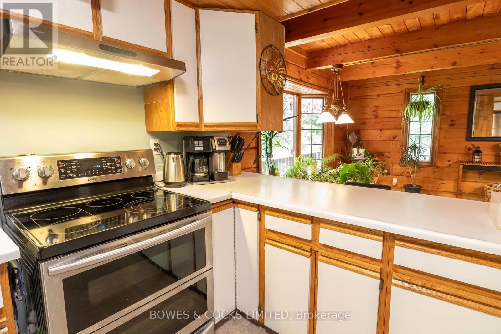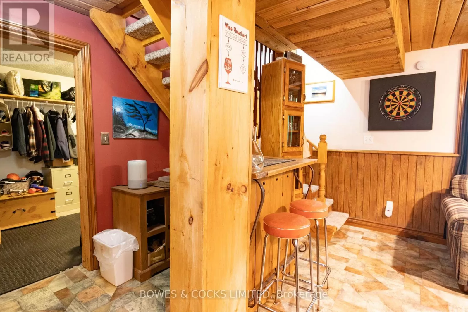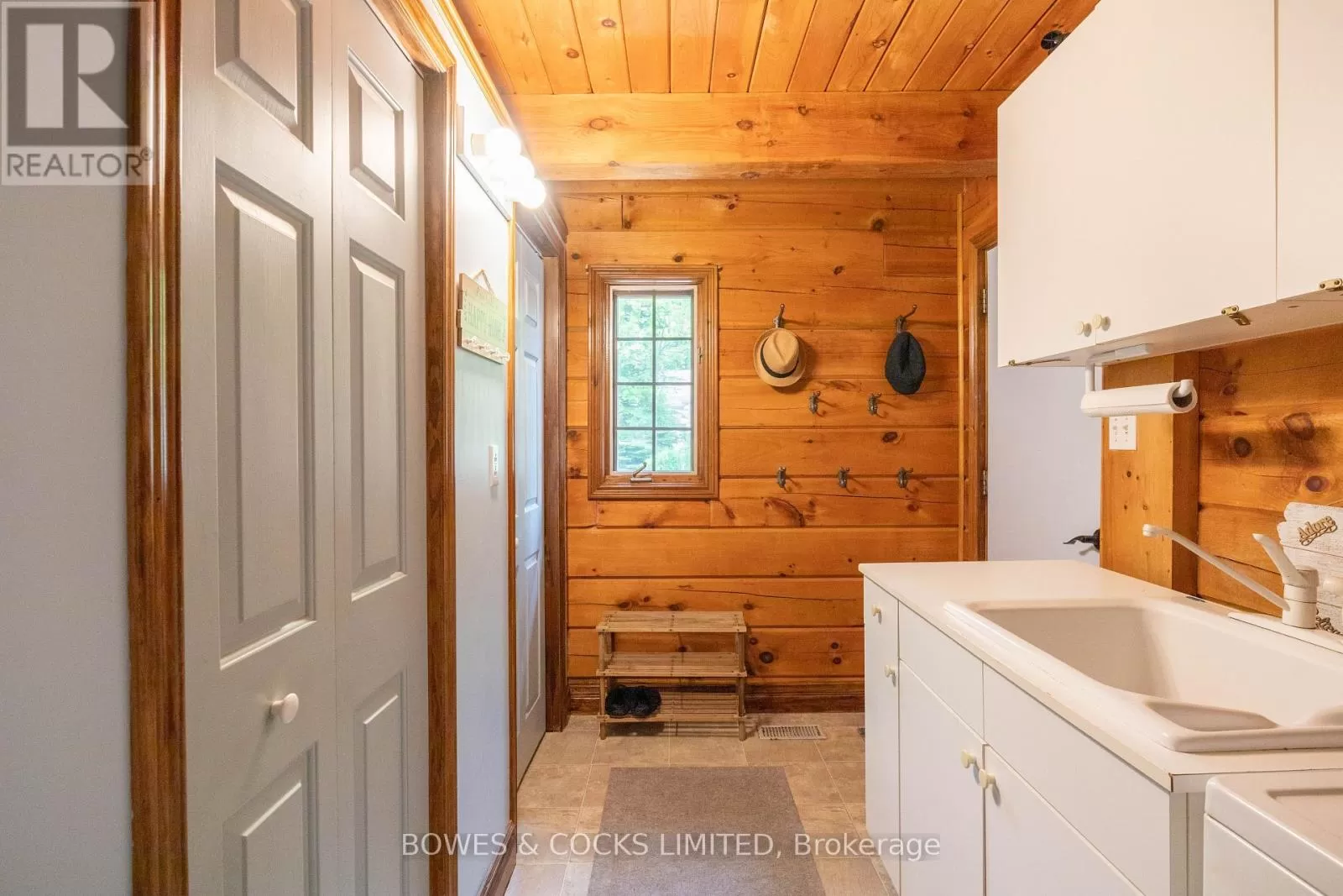 Chemaushgon Rd. to Forest Hill Dr. to Ridge Rd. Nestled on a quiet cul-de-sac just five minutes from downtown Bancroft, this custom-built log home offers a rare combination of rustic charm, modern comfort, and everyday convenience. Surrounded by beautifully landscaped, tree-lined grounds with natural stone accents, this two-storey home features three plus one bedrooms and three bathrooms, making it ideal for families or anyone seeking a tranquil escape with town amenities close at hand. Step inside the spacious main level where a large eat-in kitchen awaits, complete with stainless steel appliances, generous cupboard space, and a walkout to a wraparound deck that overlooks the peaceful, private property. A cozy sitting area, a practical mud and laundry room, and a versatile den or home office complete the main floor, creating a layout that's both functional and inviting. Upstairs, the serene primary suite features a four-piece ensuite, walk-in closet, and a walkout to a Juliette balcony perfect for quiet mornings with a view. The fully finished lower level offers a warm rec room with a woodstove, a workout room or fourth bedroom, a three-piece bathroom, and plenty of storage and utility space. The home is equipped with a forced air electric furnace, HVAC system, steel roof, heated eavestroughs, and a generator hookup to keep you comfortable year-round. A standout feature is the spacious two-storey detached garage and carport with hydro, easily accessed by a double driveway that provides separate access to both the upper and lower levels, offering ample parking and flexible use for vehicles, storage, or workshop space. With municipal services and direct access to the Heritage Trail from your driveway, this property is ideal for nature lovers and outdoor enthusiasts. You're also just minutes away from schools, shopping, golf, lakes, provincial parks, and a variety of trails. (id:27476)