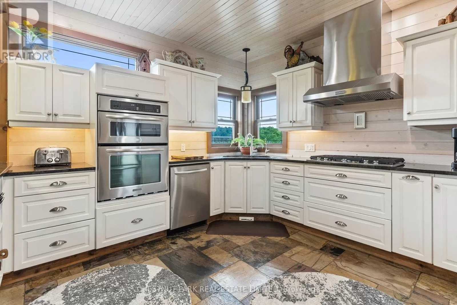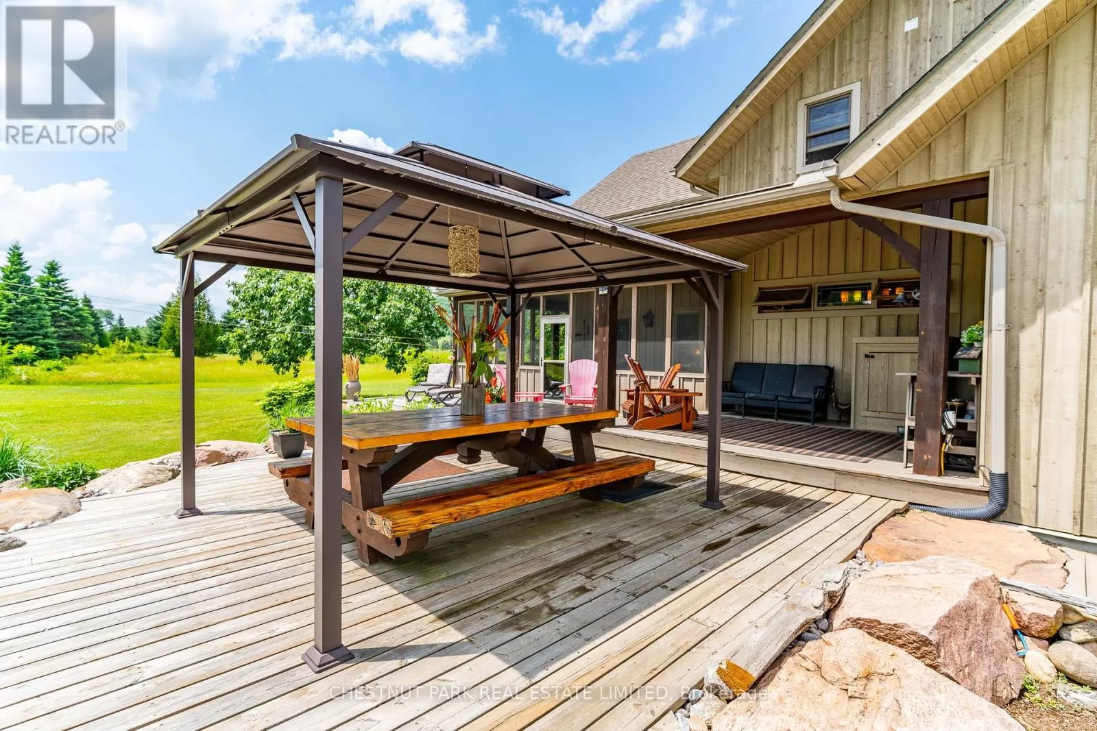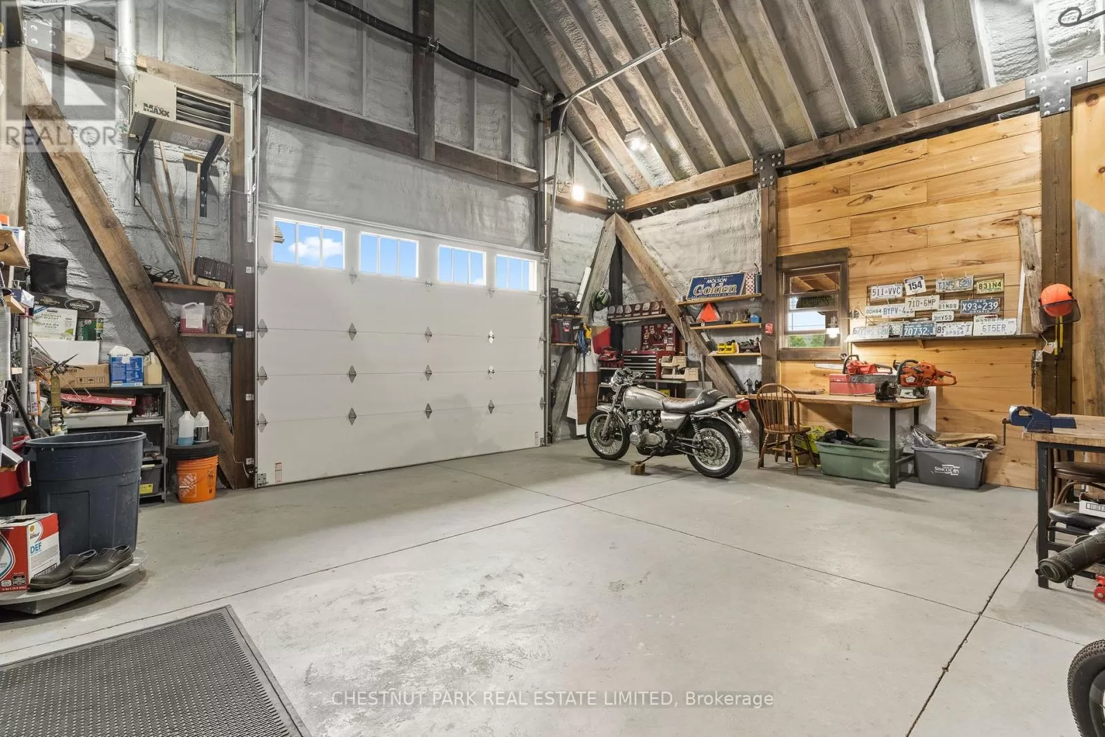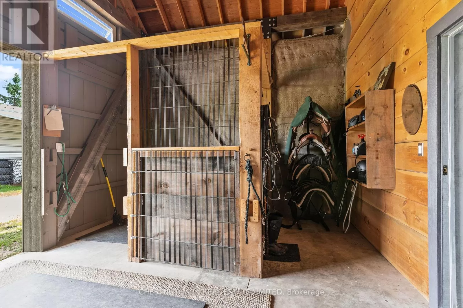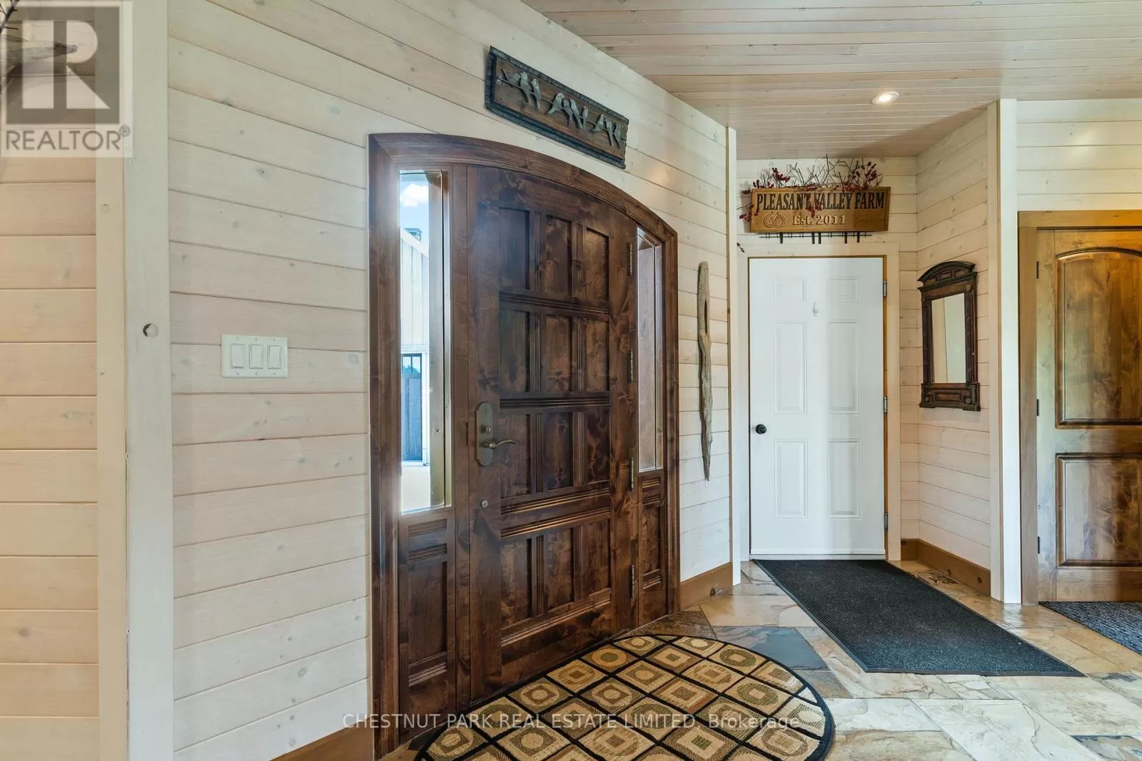 Cross Streets: 62 North & Maxwell Settlement. ** Directions: 62 North, East on Maxwell Settlement. An extraordinary country estate set on 122 acres of rolling pasture, hardwood forest, and scenic trails. This timeless Discovery Dream Homes Timber Frame hybrid draws inspiration from classic farmhouse architecture and is finished with exceptional craftsmanship, reclaimed pine barn boards, slate tile, engineered alder and walnut floors, solid alder doors, and a dramatic 600 sq ft timber-framed great room with a stone fireplace. The 4-bedroom home is designed for comfort and connection, featuring a custom kitchen, handcrafted timber staircase, mahogany-accented upper level, and a screened-in timber porch. Step outside to the expansive outdoor entertaining terrace ideal for al fresco dining, evening gatherings, and taking in the sweeping countryside views. Equestrian-ready with 25+ acres of fenced pasture, horse paddocks, a 24x36 barn with two 10x20 stalls (with power and water), and a hay barn with covered storage. A 2-car garage is attached to the home, and a separate garage includes a workshop and office space perfect for creative pursuits or home-based business. A private trail network winds through managed forest, leading to a charming wildlife viewing cabin overlooking Grace Lake and adjoining crown land. With in-floor radiant and gas heating, an Amberwood front door, and inclusion in the Managed Forest Program, this property offers the ultimate in luxury, privacy, and rural sophistication. (id:27476)