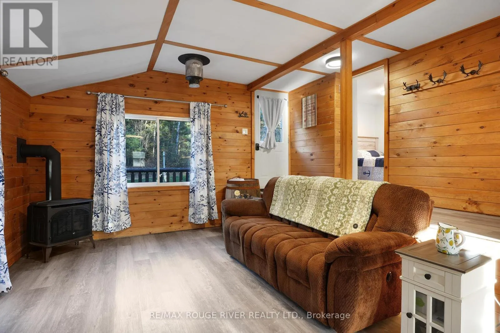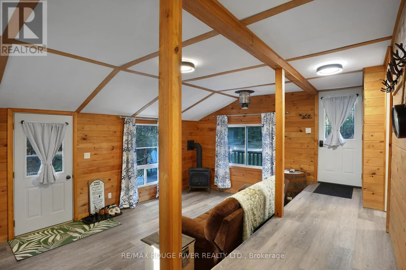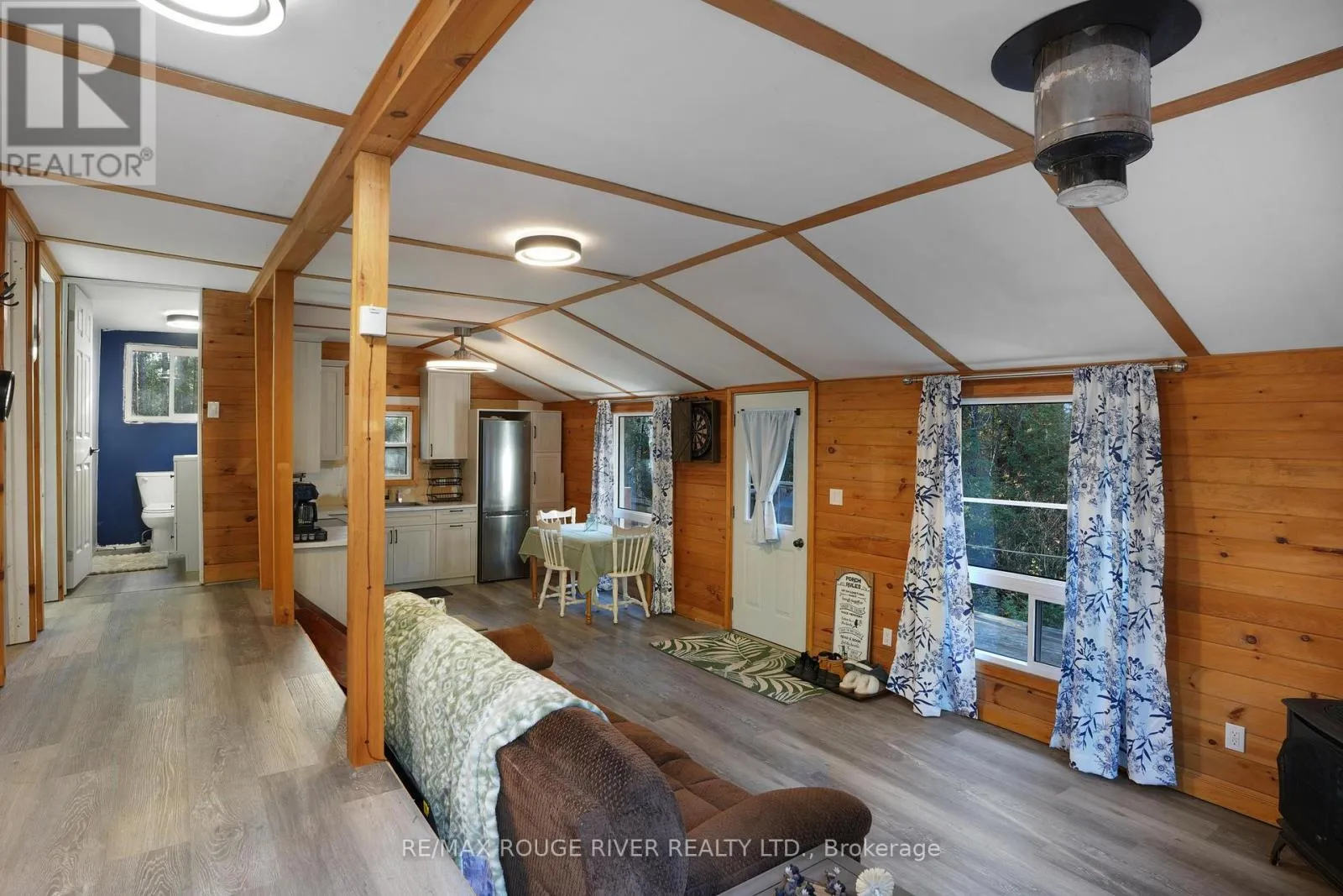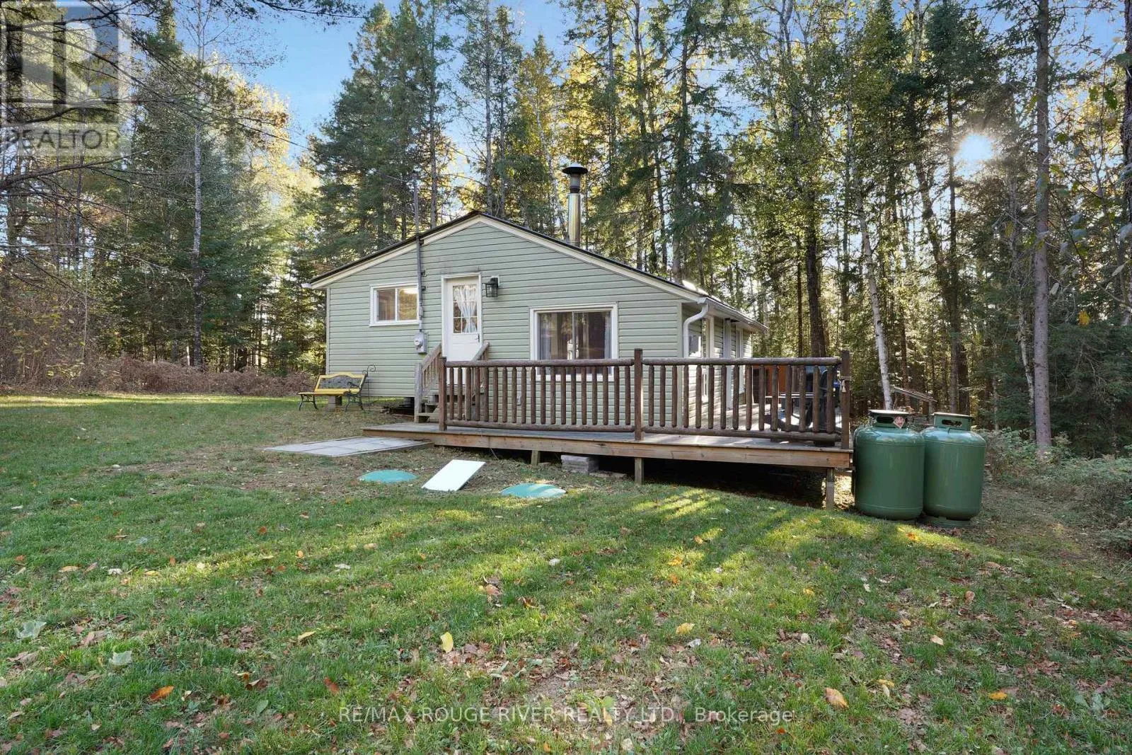 Cross Streets: Detlor Rd & Bradshaw. ** Directions: Take Detlor Rd. turn right on Bradshaw Rd. then left on Ironbridge Rd (don't take Bessemer). Welcome to 23 Egan Lane, a cozy 3 season furnished cottage nestled in the heart of Bancroft's beautiful cottage country. This 3-Bedroom, 1-bathroom retreat sits on a spacious 119.45 x 249.75 ft lot, offering privacy, tranquility, and direct access to the peaceful riverfront. Inside, the cottage features a brand new kitchen (2024), propane fireplace, and laminate flooring throughout. All major updates were completed in 2024, including new well, septic, plumbing, electrical, and hot water heater, ensuring comfort and reliability for years to come. The cottage comes furnished and includes a fridge, stove, and over-the-range microwave. Windows were replaced in 2011, providing a bright and efficient interior. Step outside to enjoy the large wrap around deck surrounded by nature, or make use of the 12' x 16' shed featuring a single garage door and electrical-perfect for extra storage, hobbies, or your outdoor gear. Located just minutes from Bancroft's shops, restaurants, and lakes, this charming property offers the perfect blend of comfort, privacy, and rustic charm. Whether you're looking for a weekend escape or seasonal getaway, 23 Egan Lane is the ideal place to unwind and enjoy cottage life. (id:27476)