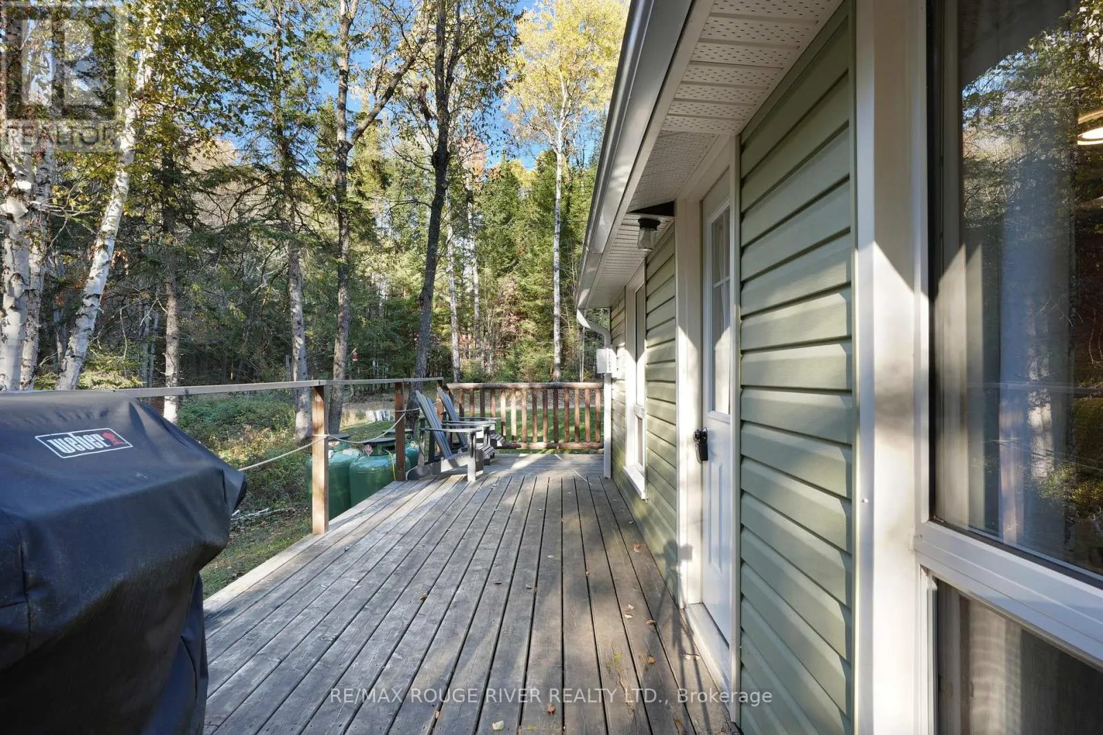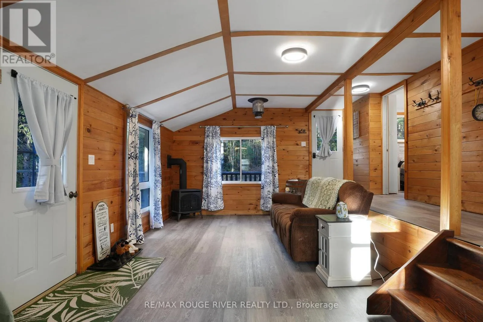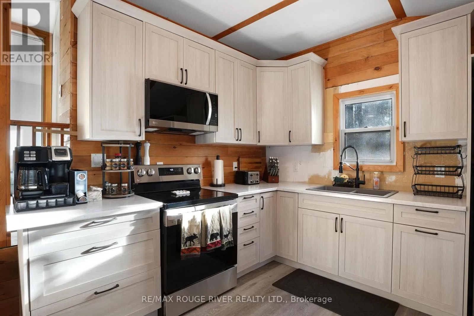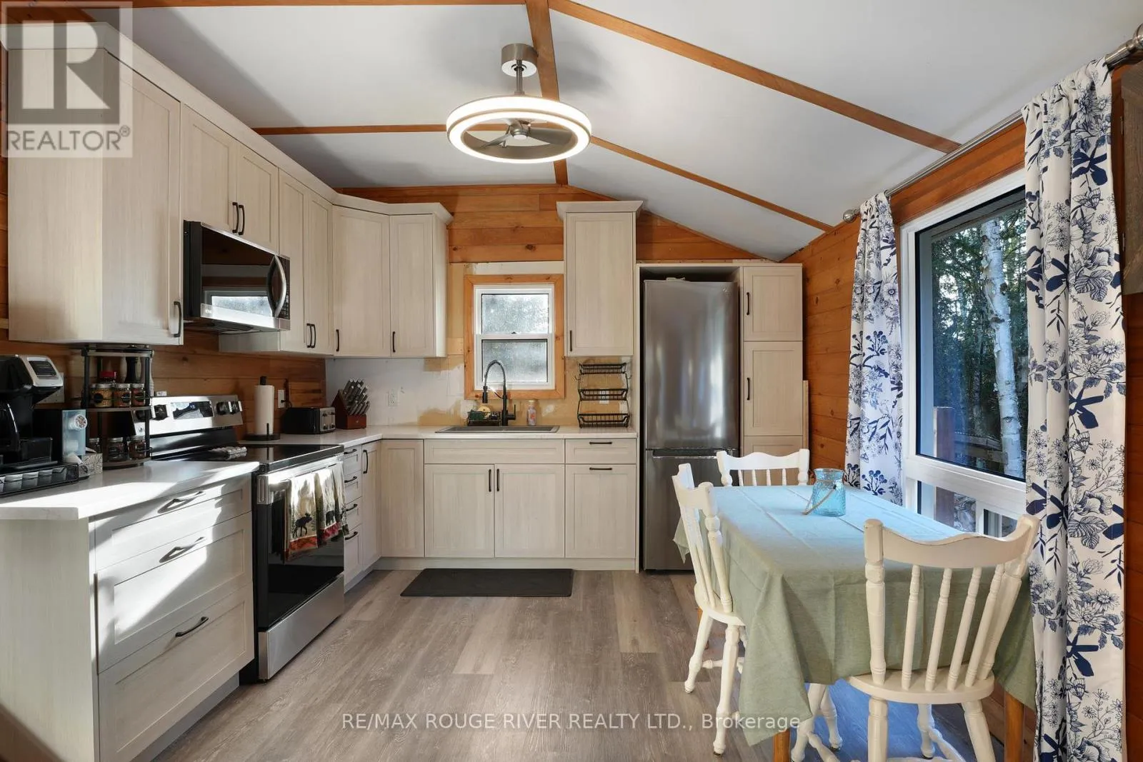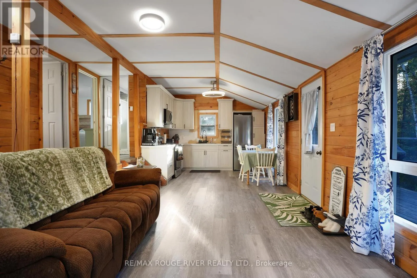 Cross Streets: Detlor Rd & Bradshaw. ** Directions: Take Detlor Rd. turn right on Bradshaw Rd. then left on Ironbridge Rd (don't take Bessemer). Welcome to 23 Egan Lane, a cozy 3 season furnished cottage nestled in the heart of Bancroft's beautiful cottage country. This 3-Bedroom, 1-bathroom retreat sits on a spacious 119.45 x 249.75 ft lot, offering privacy, tranquility, and direct access to the peaceful riverfront. Inside, the cottage features a brand new kitchen (2024), propane fireplace, and laminate flooring throughout. All major updates were completed in 2024, including new well, septic, plumbing, electrical, and hot water heater, ensuring comfort and reliability for years to come. The cottage comes furnished and includes a fridge, stove, and over-the-range microwave. Windows were replaced in 2011, providing a bright and efficient interior. Step outside to enjoy the large wrap around deck surrounded by nature, or make use of the 12' x 16' shed featuring a single garage door and electrical-perfect for extra storage, hobbies, or your outdoor gear. Located just minutes from Bancroft's shops, restaurants, and lakes, this charming property offers the perfect blend of comfort, privacy, and rustic charm. Whether you're looking for a weekend escape or seasonal getaway, 23 Egan Lane is the ideal place to unwind and enjoy cottage life. (id:27476)