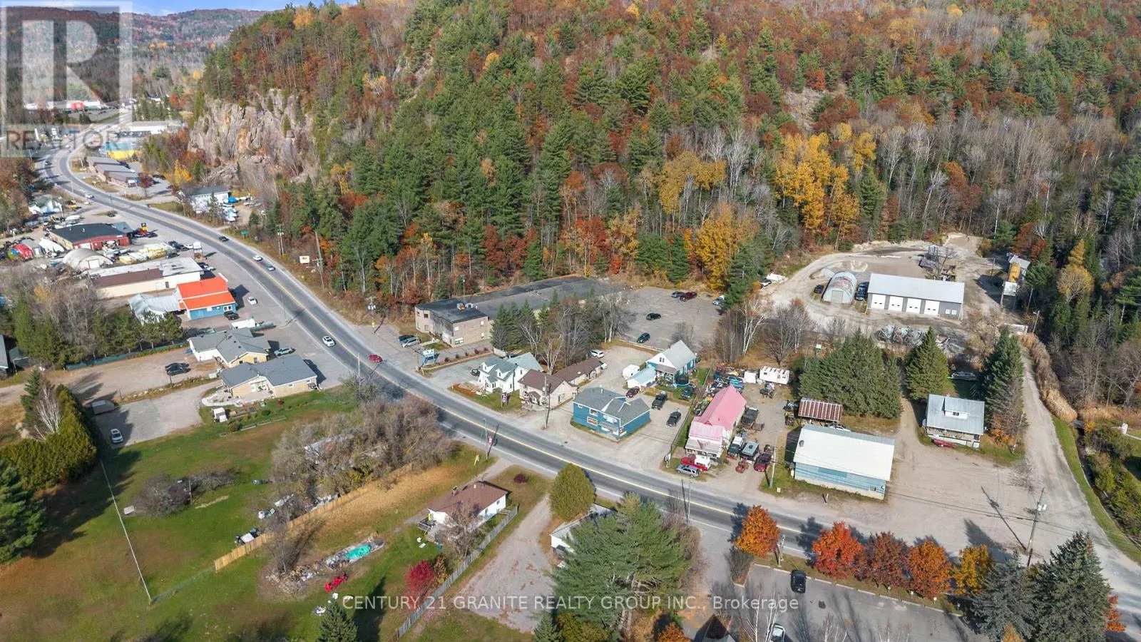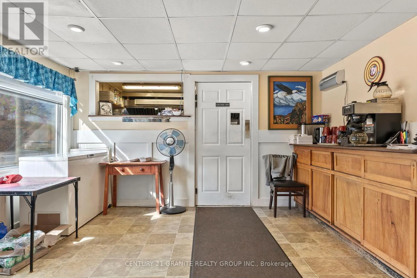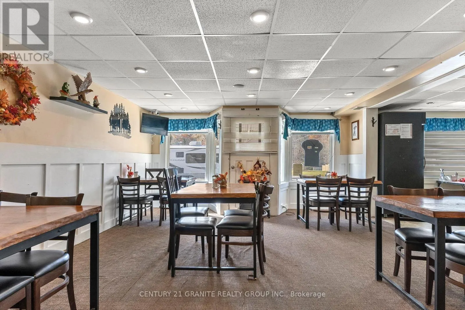Cross Streets: Hastings St N. ** Directions: From Bancroft take Hastings St N towards Birds Creek. See signs beside Loyalist College. Ready to bring your business dreams to life? This turn-key restaurant comes with a bright and spacious 2-bedroom apartment (574 sq ft) above-perfect for living where you work or generating rental income. The main floor offers a fully equipped restaurant setup with Main Street commercial zoning, giving you the freedom to run a cafe, retail shop, takeover the very successful established restaurant or any venture you've been dreaming of. Enjoy the convenience of municipal water and the affordability of a private septic, plus a private parking lot for 8+ vehicles-a rare find in town! The restaurant is equipped with owned commercial appliances, male and female washrooms, foyer, 15x24 ft dining area with an additional 12.5x14ft flex space to accommodate more diners. Located just steps from downtown Bancroft, you'll benefit from high visibility and steady local traffic, surrounded by other established businesses in one of Ontario's fastest-growing small towns. Whether you're an entrepreneur ready to serve the community or an investor looking for a smart mixed-use opportunity. Live upstairs. Work downstairs. Grow your future-all right here in Bancroft. The restaurant is sold fully equipped. (id:27476)