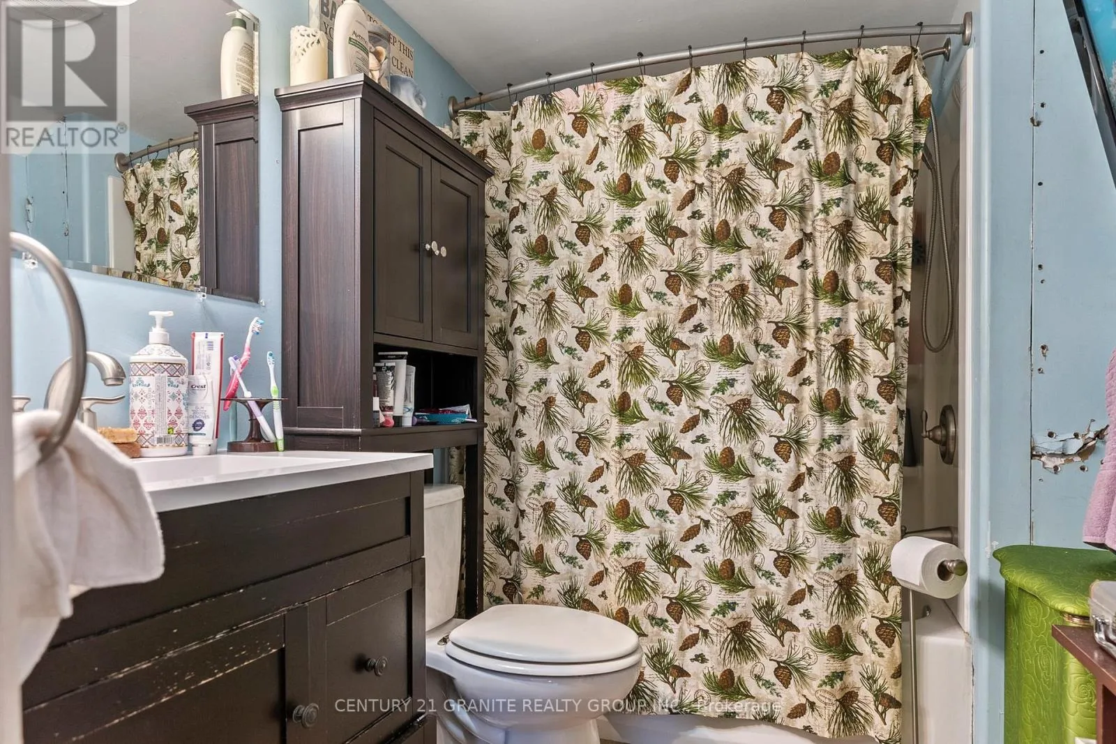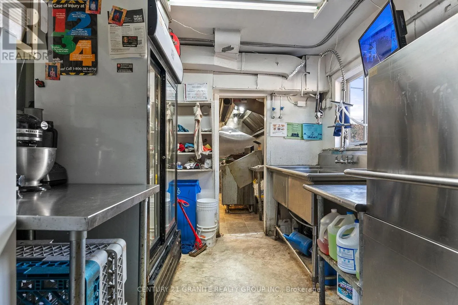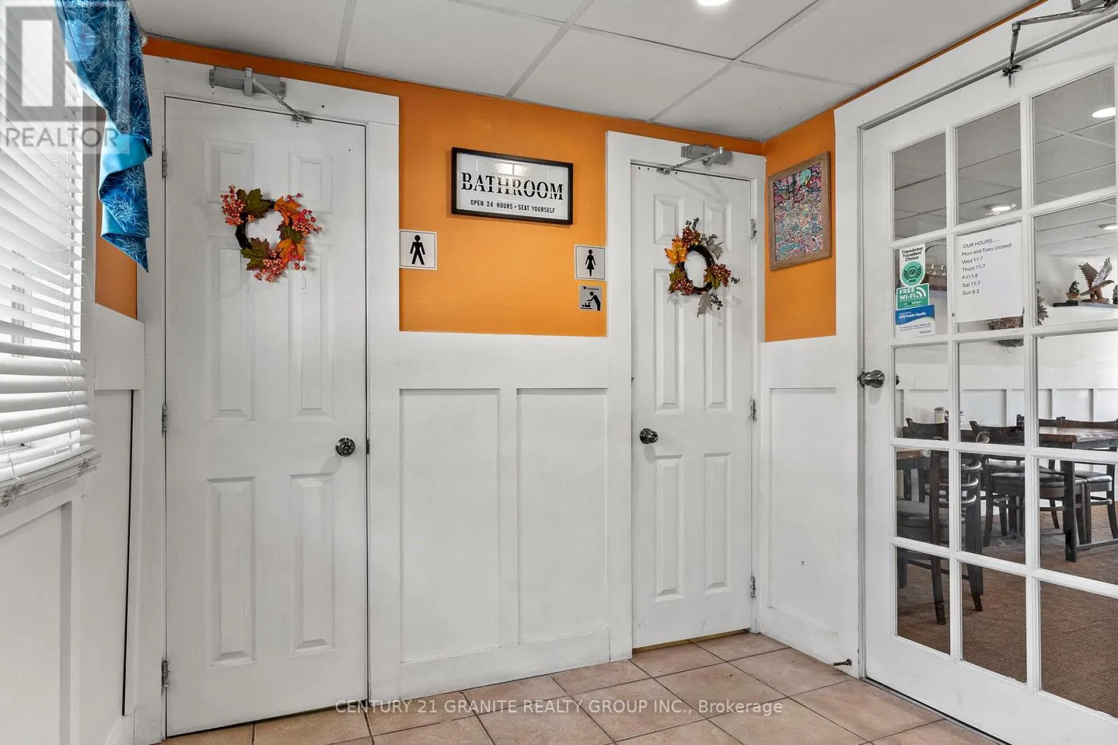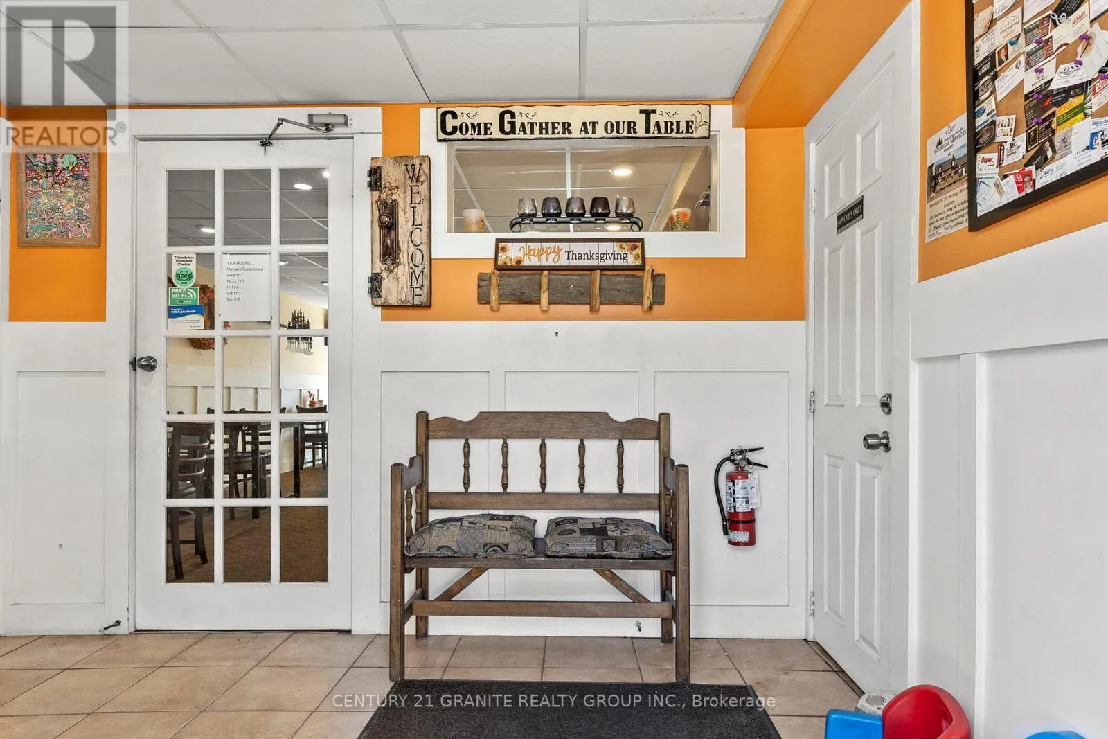 Cross Streets: Hastings St N. ** Directions: From Bancroft take Hastings St N towards Birds Creek. See signs beside Loyalist College. Ready to bring your business dreams to life? This turn-key restaurant comes with a bright and spacious 2-bedroom apartment (574 sq ft) above-perfect for living where you work or generating rental income. The main floor offers a fully equipped restaurant setup with Main Street commercial zoning, giving you the freedom to run a cafe, retail shop, takeover the very successful established restaurant or any venture you've been dreaming of. Enjoy the convenience of municipal water and the affordability of a private septic, plus a private parking lot for 8+ vehicles-a rare find in town! The restaurant is equipped with owned commercial appliances, male and female washrooms, foyer, 15x24 ft dining area with an additional 12.5x14ft flex space to accommodate more diners. Located just steps from downtown Bancroft, you'll benefit from high visibility and steady local traffic, surrounded by other established businesses in one of Ontario's fastest-growing small towns. Whether you're an entrepreneur ready to serve the community or an investor looking for a smart mixed-use opportunity. Live upstairs. Work downstairs. Grow your future-all right here in Bancroft. The restaurant is sold fully equipped. (id:27476)