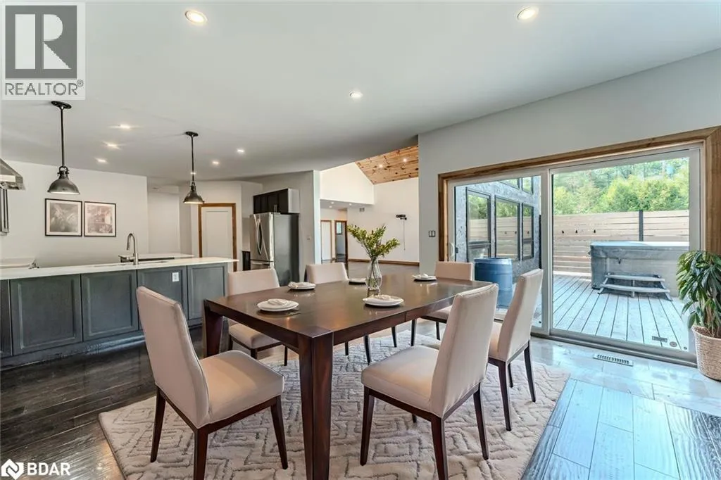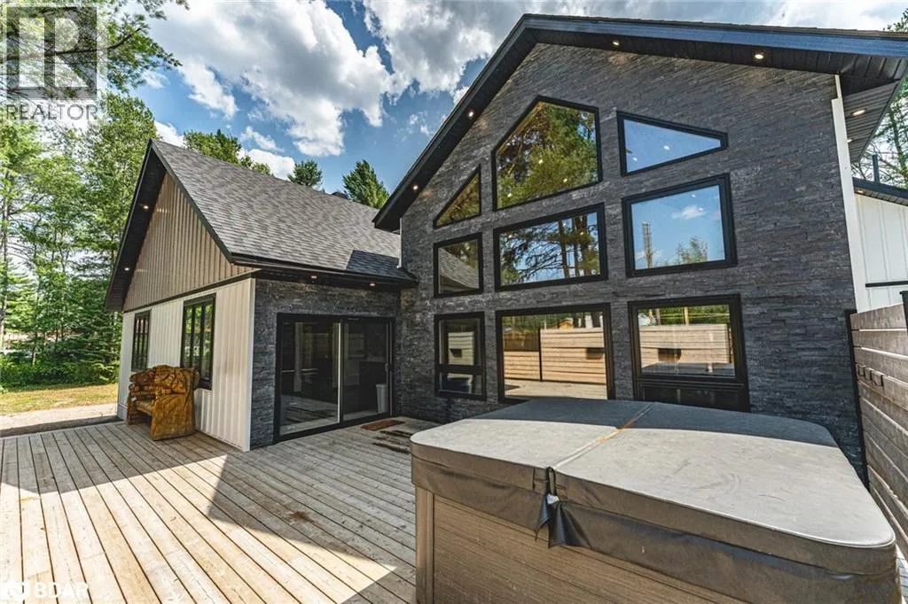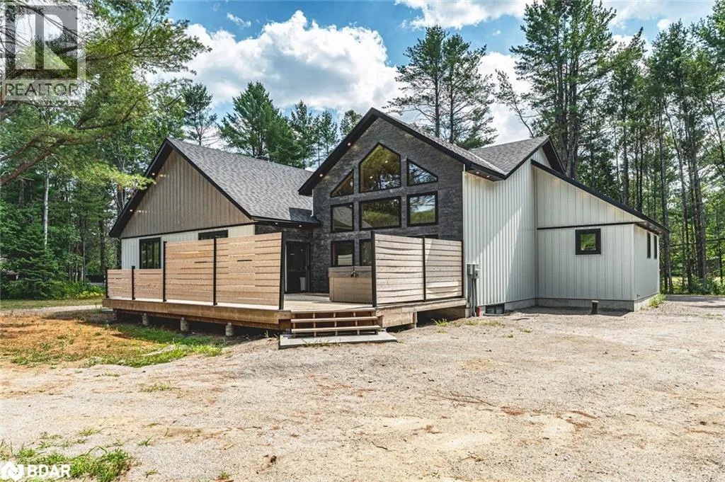 South Baptiste Lake Rd/ON-62 N/Buck Hill Rd SHOWSTOPPING 2022-BUILT BUNGALOW ON A PRIVATE 1-ACRE LOT WITH A GARAGE THAT IMPRESSES! Set on a private one-acre property surrounded by nature, this remarkable bungalow, constructed in 2022, delivers modern design and quality craftsmanship in a peaceful setting. The striking exterior features stone and siding, peaked rooflines, black-framed windows, soffit lighting, and a large covered front porch finished with a stamped concrete pattern. A true highlight for hobbyists and enthusiasts, the triple-car garage spans over 1,500 sq ft and is heated, insulated, and drywalled, with 12-ft ceilings, LED strip lighting, three 220V welder plugs, 10-ft x 10-ft modern doors, and LiftMaster Wi-Fi openers. Outdoor living continues with a 600 sq ft deck designed for entertaining, complete with a seven-person hot tub, privacy panels, partial fencing, a shed, and a chicken coop. The spacious interior features 9-foot ceilings, hardwood flooring throughout, pot lights, and vaulted ceilings in the great room, which is filled with natural light by floor-to-ceiling windows. The kitchen showcases quartz countertops, an island, a tile backsplash, and newer stainless steel appliances. The primary bedroom offers a private ensuite with a soaker tub, walk-in shower, and dual-sink vanity, while a second full bath and powder room with laundry add functionality. The unfinished basement includes a separate entrance from the garage and a partially completed 3-piece bath, providing an opportunity for future living space. With its close proximity to restaurants, grocery stores, schools, medical services, and parks, and just under ten minutes from downtown Bancroft, this beautiful #HomeToStay combines privacy, modern features, and everyday convenience in one impressive package. (id:27476)