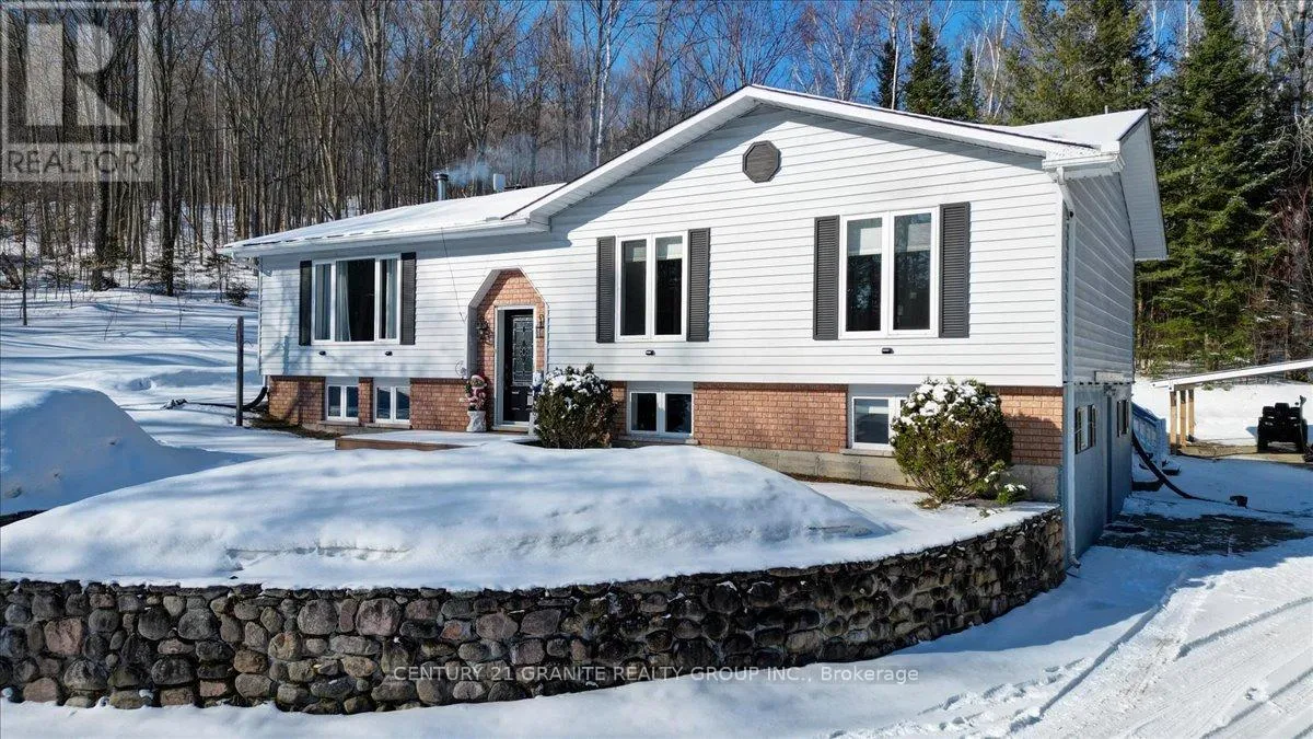 Cross Streets: Maxwell Settlement & Clark Lake Rd. ** Directions: From Bancroft, take Hwy 62 N, right on Maxwell Settlement Rd., then left on Clark Lake Road to ER#237. Set just 5 minutes from town and all amenities, this beautifully maintained raised bungalow offers the perfect balance of country living and everyday convenience. Nestled in a private setting, the home has been thoughtfully updated and shows pride of ownership throughout. The bright and welcoming main level features hardwood flooring that complements the living and dining areas, creating a warm and inviting space for family and entertaining. Downstairs, the fully finished walkout basement offers excellent flexibility with a complete in-law suite-ideal for extended family or potential rental income. Cozy up in the family room with a propane fireplace, while the rec room features an airtight wood stove for those colder nights. Outside, the property is well-equipped for both lifestyle and storage. The insulated and heated garage is perfect for a workshop or keeping your vehicle warm during winter. Two large storage sheds and two carports off the garage provide ample space to store all your tools, equipment, and recreational toys, protected from the elements. A fantastic opportunity to enjoy peaceful country living without sacrificing proximity to town-this home is move-in ready and packed with value. (id:27476)