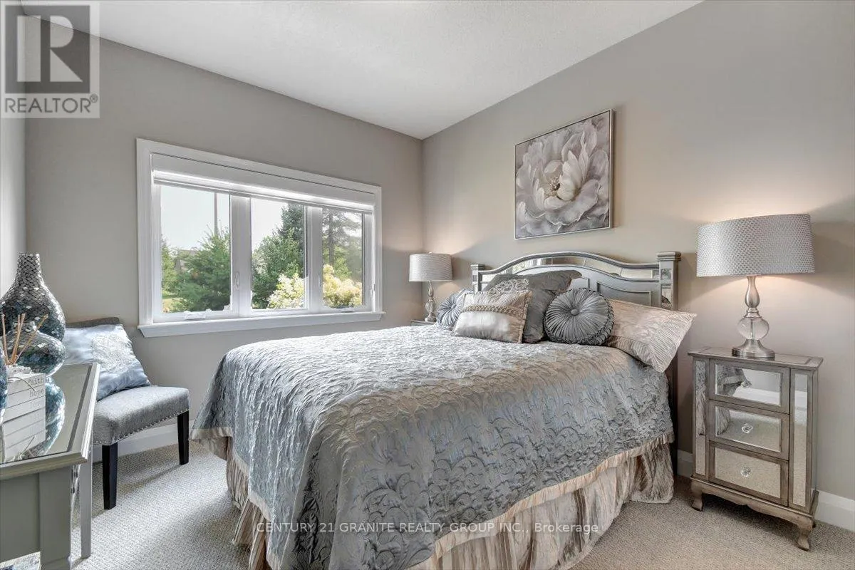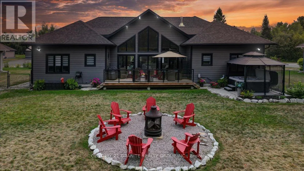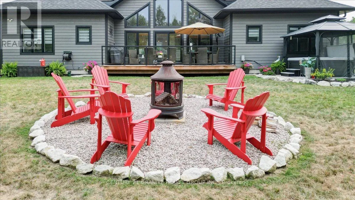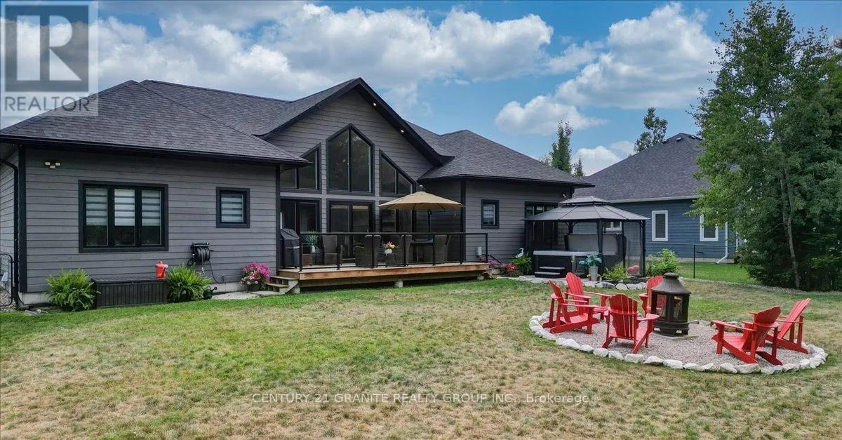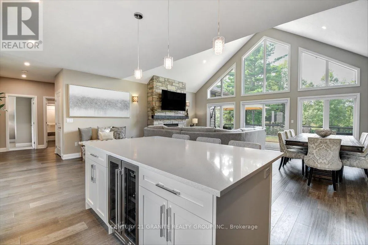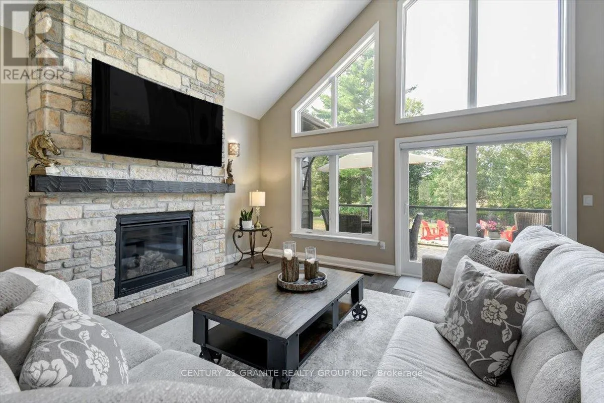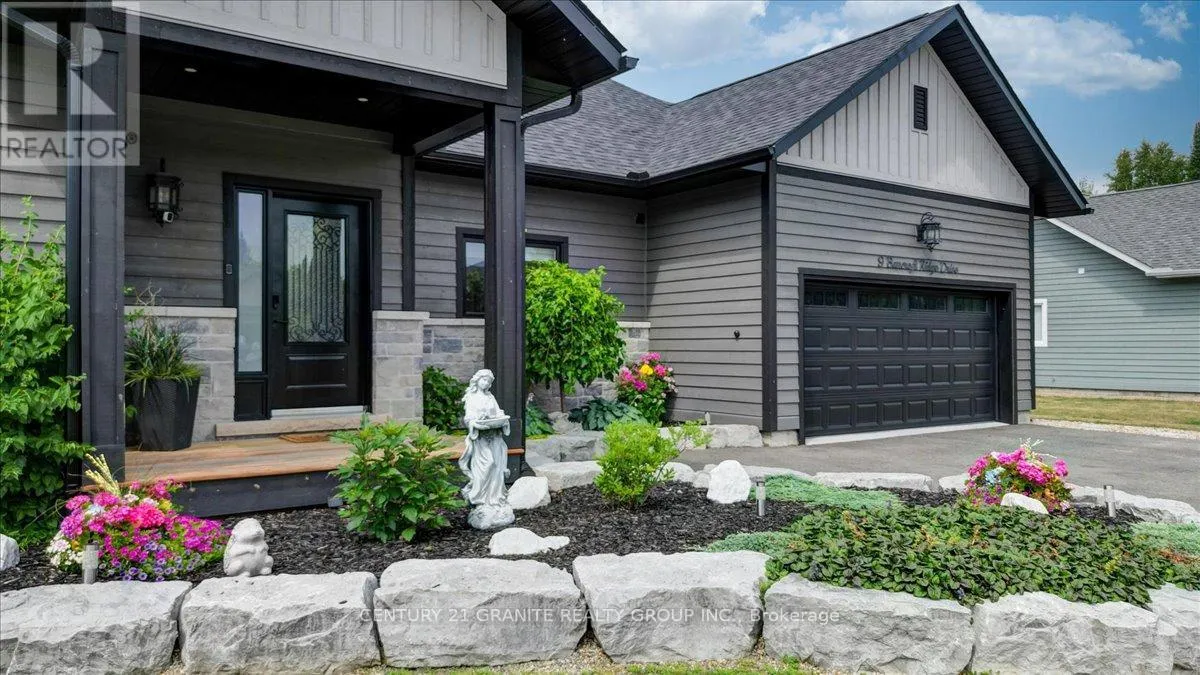 Cross Streets: Nicklaus Dr/Bancroft Ridge Dr. ** Directions: Chemaushgon Rd to Nicklaus Dr, turn right and follow to Bancroft Ridge Dr. Turn right. Property on left. Custom Bungalow in Golf Course Community | 2 Primary Suites | Under 5 Years Old Modern Living Meets Peaceful Golf Course Lifestyle. Less than five years old, this stunning 2,000 sq. ft. custom-built bungalow offers the perfect balance of style, comfort, and thoughtful design, set in a quiet and well-maintained golf course community. Step inside to a bright open-concept layout connecting the kitchen, dining, and living spaces-perfect for entertaining or everyday living. The soaring cathedral ceiling creates an impressive sense of space while the dry stacked stone fireplace adds warmth and character to the heart of the home. This beautifully designed home features two spacious primary suites, each with its own ensuite and walk-in closet, plus a third bedroom offering flexibility for guests or family. With three full bathrooms, the layout is ideal for families, visitors, or multigenerational living. Enjoy peaceful outdoor living in the beautifully landscaped yard, and take advantage of the spacious two-car garage offering convenience and storage. A rare opportunity to own a modern home in a quiet golf course community-where comfort, privacy, and lifestyle come together. (id:27476)