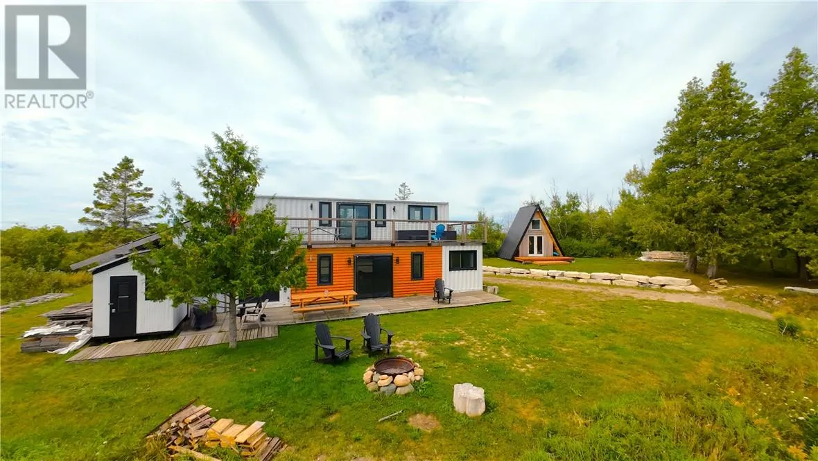 **Waterfront Off-Grid Retreat on Barrie Island** A rare opportunity to own a fully functional off-grid waterfront cottage on beautiful Barrie Island, accessible by year-round road. Built in 2021 and fully insulated, the cottage features solar power, back-up generator, on demand hot water and propane heat for year round comfort. Enjoy a sandy beach area with gradual entry, about 70 feet of private dock space and stunning elevated views over Salmon Bay. Extra's include an A-Frame bunkie, 4 person Sauna and approved septic system (2022). Offered nearly turnkey with most furnishings included, this property is ready for a new family to enjoy, an investor to appreciate potential rental income or a combination of both. Perfect for boating, fishing, swimming or relaxing by the water -- this is affordable Cottage Lifestyle at its finest. Opportunities like this on Manitoulin & Barrie Island are rare so book your private showing today! Please see the video link below and check it out. https://youtu.be/RoLtfj3IJS4?si=qYfe_2pHC1Xtn3PG (id:27476)