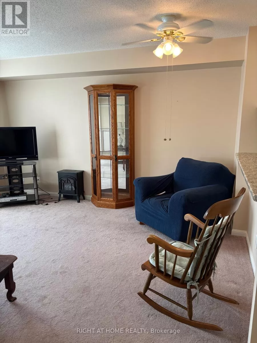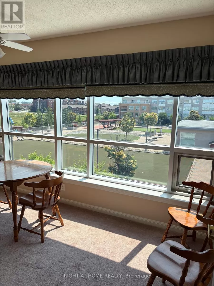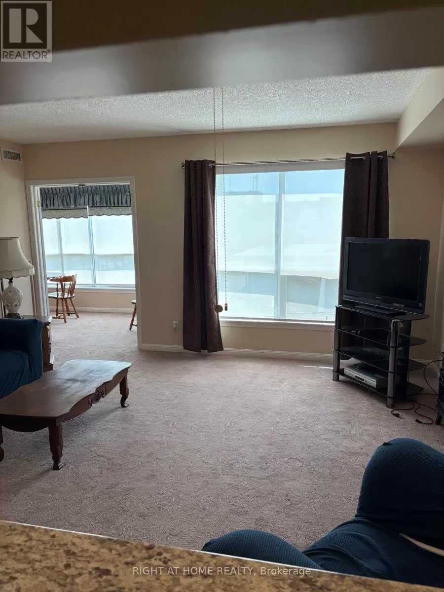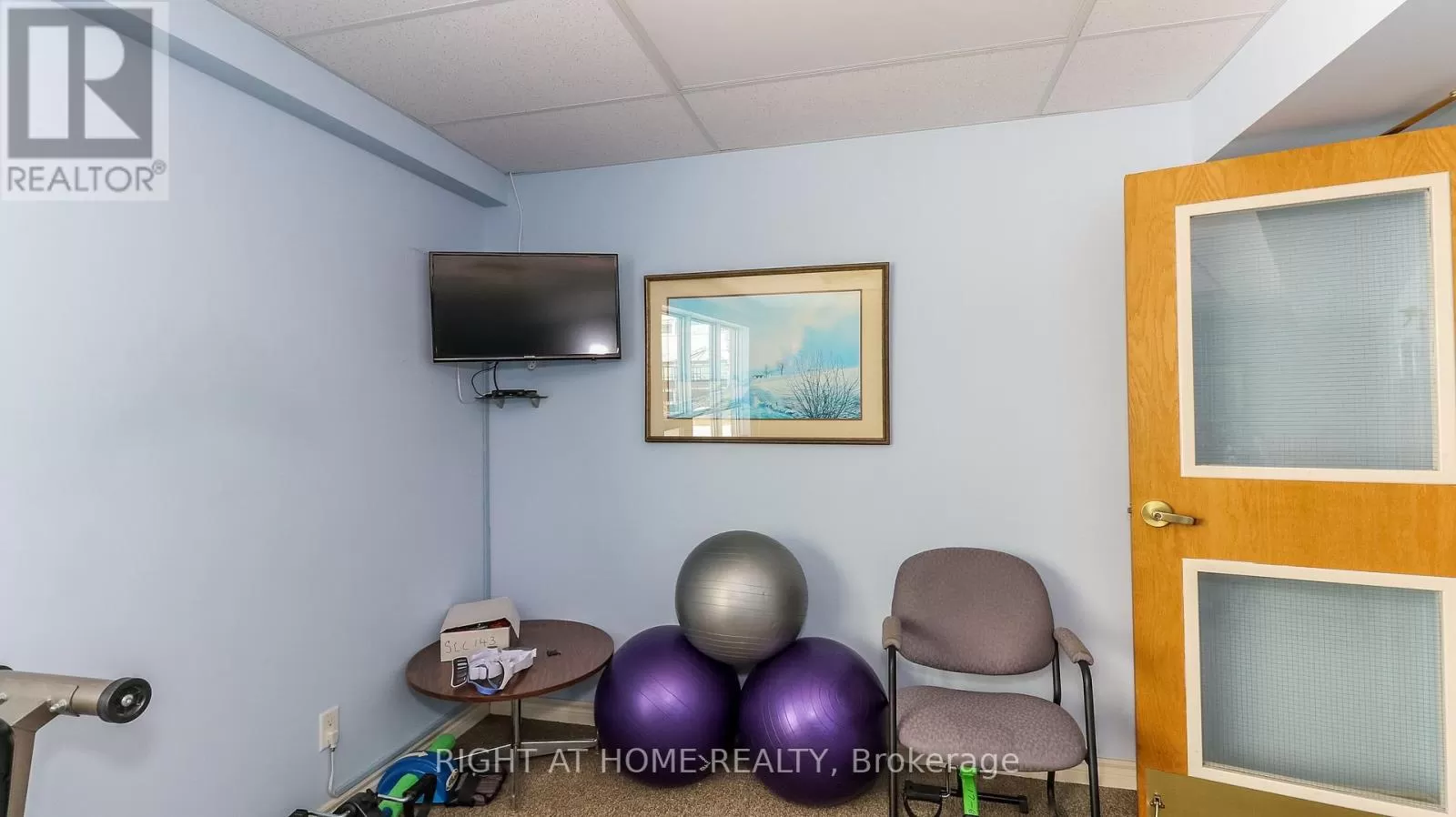 Madeline & Dean The Terraces of Heritage Square is a Adult over 60+ building. These buildings have lots to offer, Party rooms, library, computer room and a second level roof top gardens. Ground floor lockers and parking. |These buildings were built with wider hallways with hand rails and all wheel chair accessible to assist in those later years of life. It is independent living with all the amenities you will need. Walking distance to the library, restaurants and shopping. Barrie transit stops right out front of the building for easy transportation. This Simcoe Suite is 891sq ft has southern exposure from the large solarium overlooking the Roof Top Gardens. Sunshade Blinds in the Solarium and Living Room. Good size kitchen with a back splash. The bedroom is open to the Solarium with a semi ensuite bath and the tub has a cut out for easier access. Open House tour every Tuesday at 2pm Please meet in lobby of 94 Dean Ave **EXTRAS** Shelving in Solarium (id:27476)