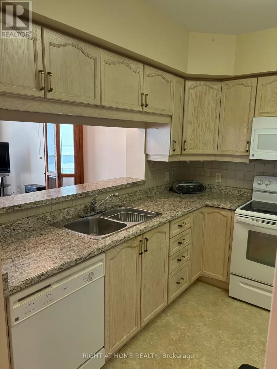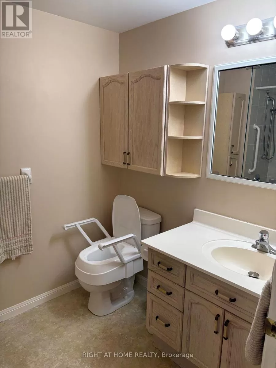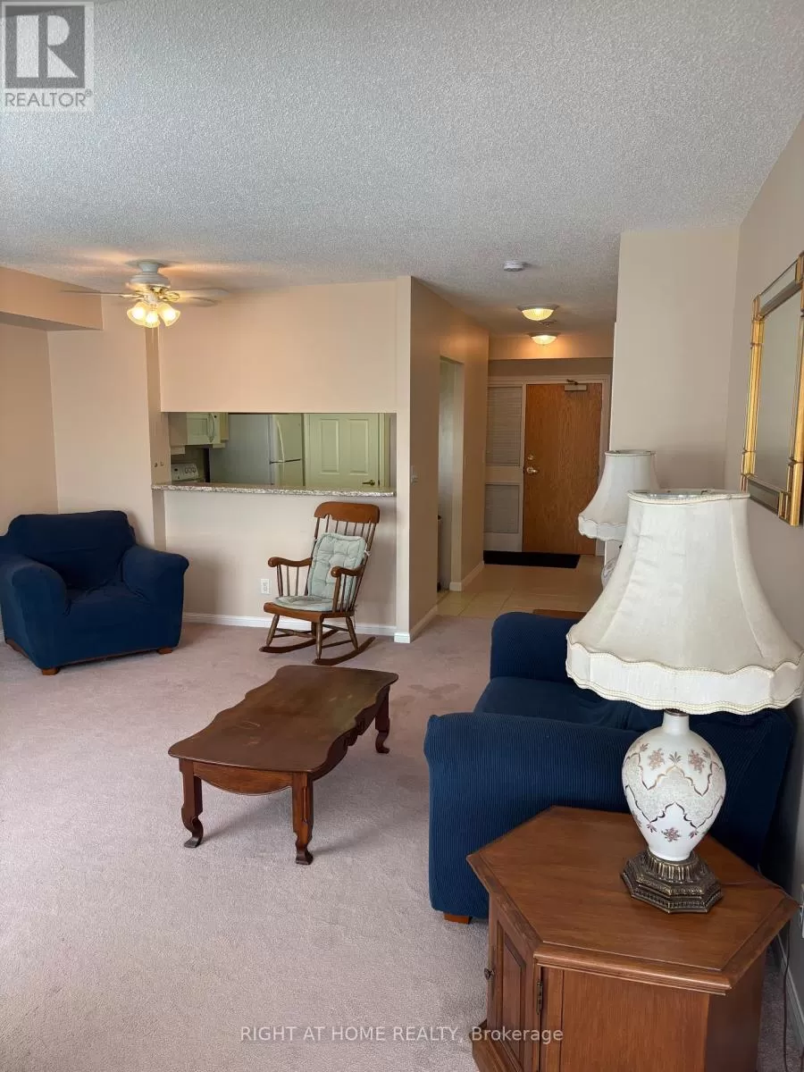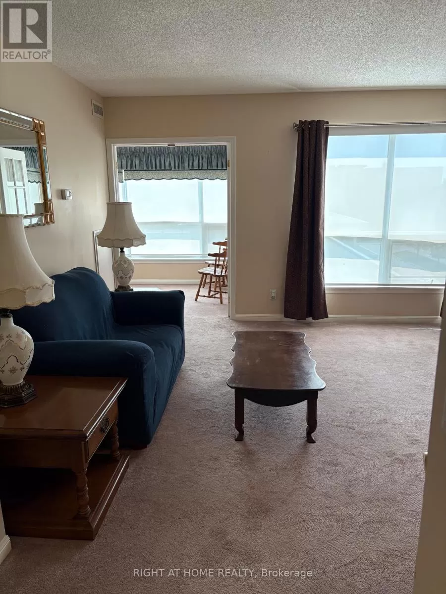 Madeline & Dean The Terraces of Heritage Square is a Adult over 60+ building. These buildings have lots to offer, Party rooms, library, computer room and a second level roof top gardens. Ground floor lockers and parking. |These buildings were built with wider hallways with hand rails and all wheel chair accessible to assist in those later years of life. It is independent living with all the amenities you will need. Walking distance to the library, restaurants and shopping. Barrie transit stops right out front of the building for easy transportation. This Simcoe Suite is 891sq ft has southern exposure from the large solarium overlooking the Roof Top Gardens. Sunshade Blinds in the Solarium and Living Room. Good size kitchen with a back splash. The bedroom is open to the Solarium with a semi ensuite bath and the tub has a cut out for easier access. Open House tour every Tuesday at 2pm Please meet in lobby of 94 Dean Ave **EXTRAS** Shelving in Solarium (id:27476)