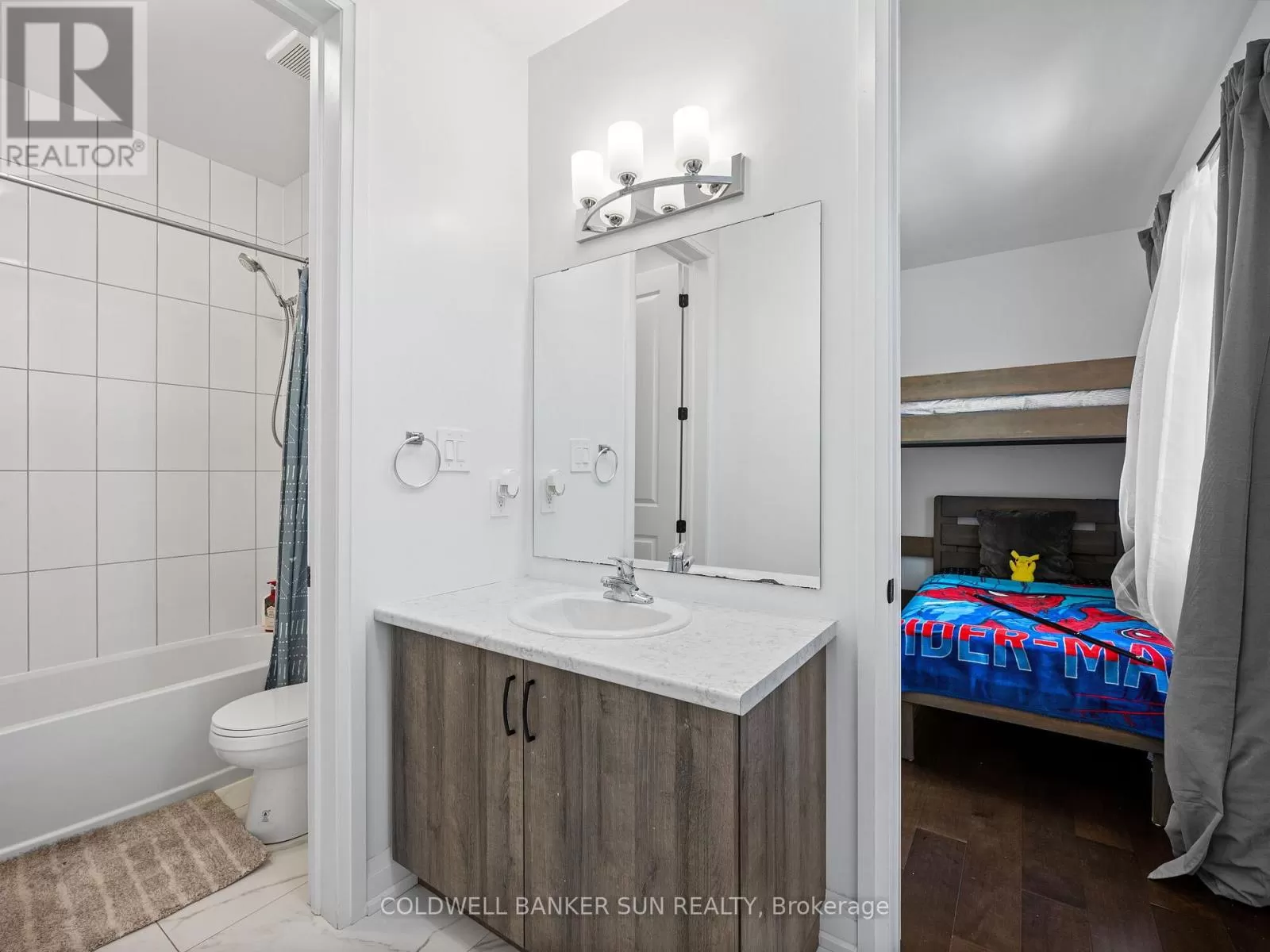 Cross Streets: Essa/Mapleview. ** Directions: Essa to Mabern Street, Right onto Franklin Trail. Welcome home to 172 Franklin Trail! Perfectly situated in one of Barrie's Newest Neighborhoods Bear Creek Estates, this home is a absolute show stopper! This home is approximately just under 3 years new, With 4 full bedrooms & 3 1/2 Baths this home has tons of space for you and your loved ones, to live and entertain! Entering the home to a grand, open foyer ceiling, The main floor offers an open concept layout with a bright eat-in kitchen, with lots of cabinetry, a pantry, stainless steel appliances, breakfast bar, & it is over looking the living area. The living area has a relaxing and spacious walk-out balcony & tons of natural sunlight, it also features a napoleon fireplace. Heading to the second floor with 3 full-sized spacious bedrooms, ensuite washrooms attached to each room, and 2nd level laundry. The master bedroom outlooks the front yard and has tons of natural sunlight, a spacious walk in closet, and spa-like 5 piece ensuite bath. Making your way down to the basement, which has been recently finished, containing an open recreation area & potential kitchen area, you have one full additional bedroom & one full washroom. Walk/Out separate entrance to your yard directly though the basement. This home also features 6 car parking, 4 on driveway and 2 in garage. A must see home! (id:27476)