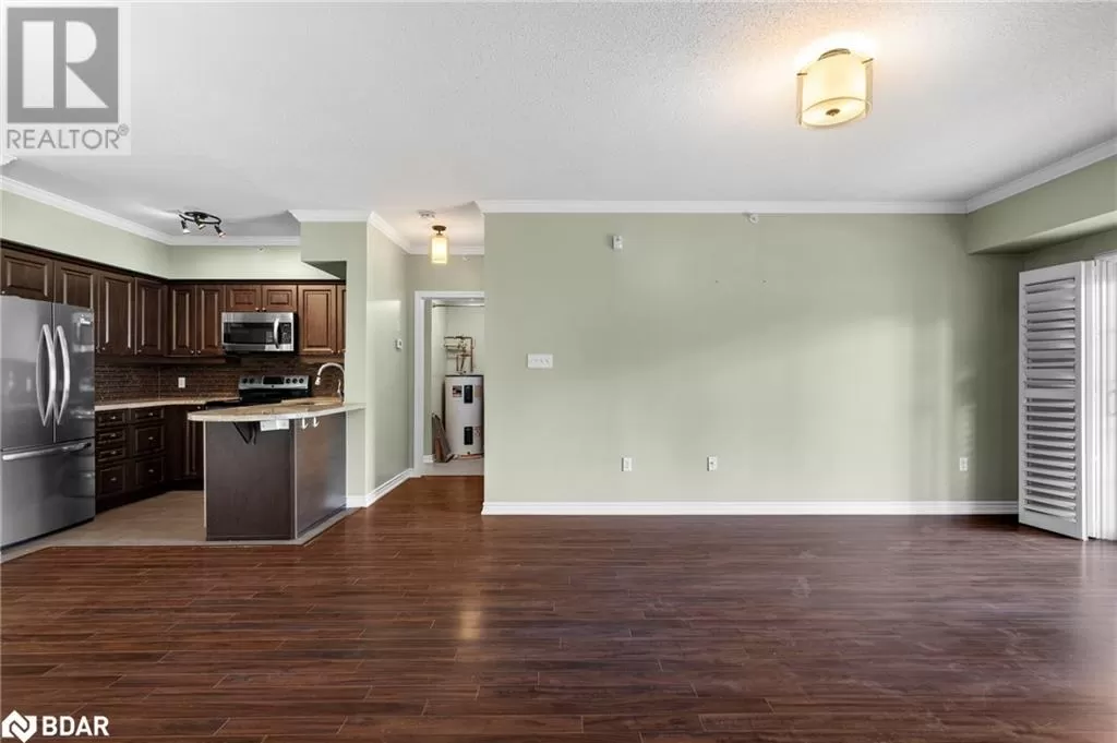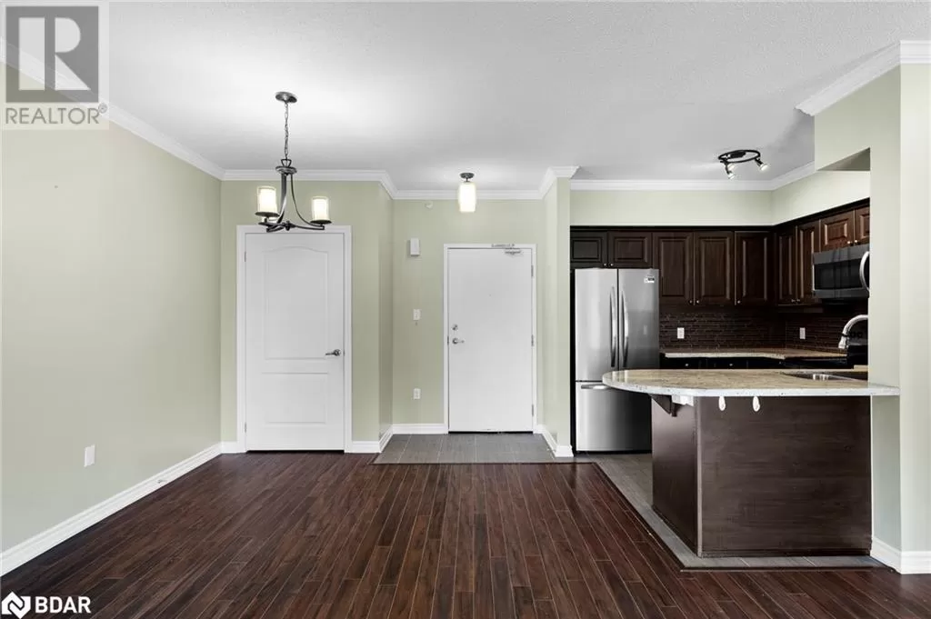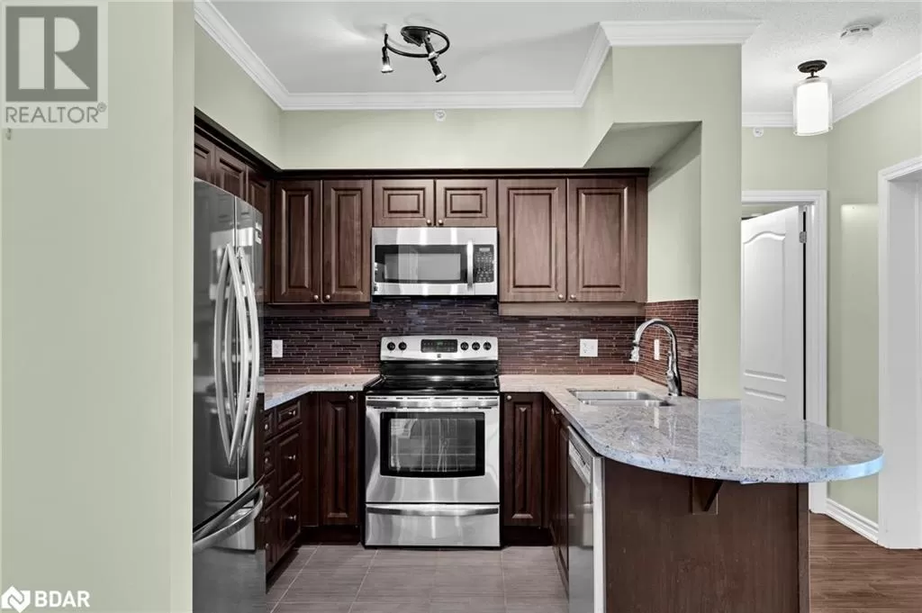 HWY 400 - ESSA ROAD - FERNDALE DRIVE S Welcome to Unit #106 â 39 Ferndale Drive South, an immaculate and stylish 2-bedroom, 2-bathroom condo nestled in the highly desirable Manhattan Village community in Barrie. Perfectly blending comfort, functionality, and location, this unit offers an easy lifestyle in a well-maintained and peaceful building, ideal for professionals, down-sizers, or first-time buyers. Step inside to a spacious foyer that sets the tone for the thoughtful layout throughout. The foyer flows seamlessly into the modern kitchen, which features stainless steel appliances, a convenient breakfast bar, and ample cabinetryâperfect for casual dining or entertaining. The kitchen opens to a bright and expansive living room, offering plenty of space to relax or host, with walk-out access to a private balcony overlooking the park, where you can enjoy your morning coffee or unwind at the end of the day. The primary suite is a true retreat, boasting a generous walk-in closet that connects directly to a private 3-piece ensuite, offering privacy and comfort. The second bedroom is equally spacious and located conveniently near the shared 4-piece bathroom, making it ideal for guests, family, or a home office setup. Additional features include in-suite laundry for your convenience and modern finishes throughout that reflect the care and pride of ownership in this well-maintained unit. Situated in a prime location close to schools, shopping, public transit, and Highway 400 access, this condo provides everything you need for easy, convenient living while surrounded by the natural beauty and peaceful ambiance of Manhattan Village. (id:27476)